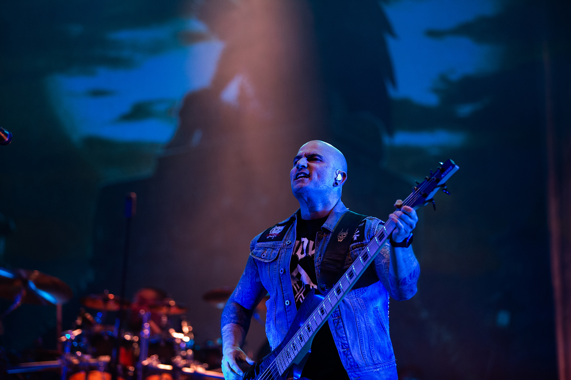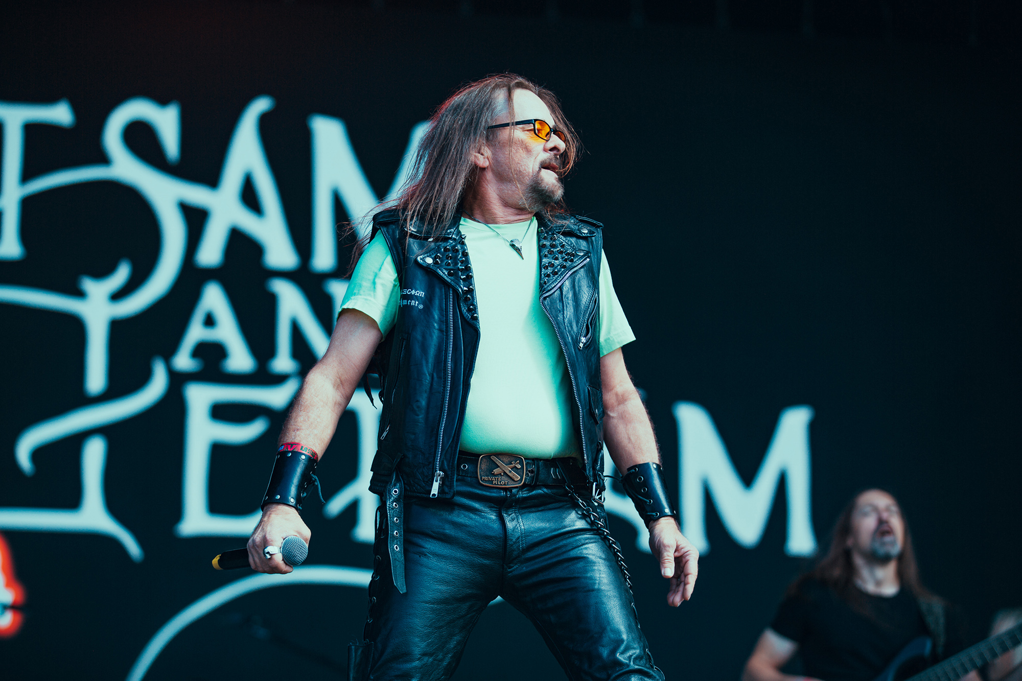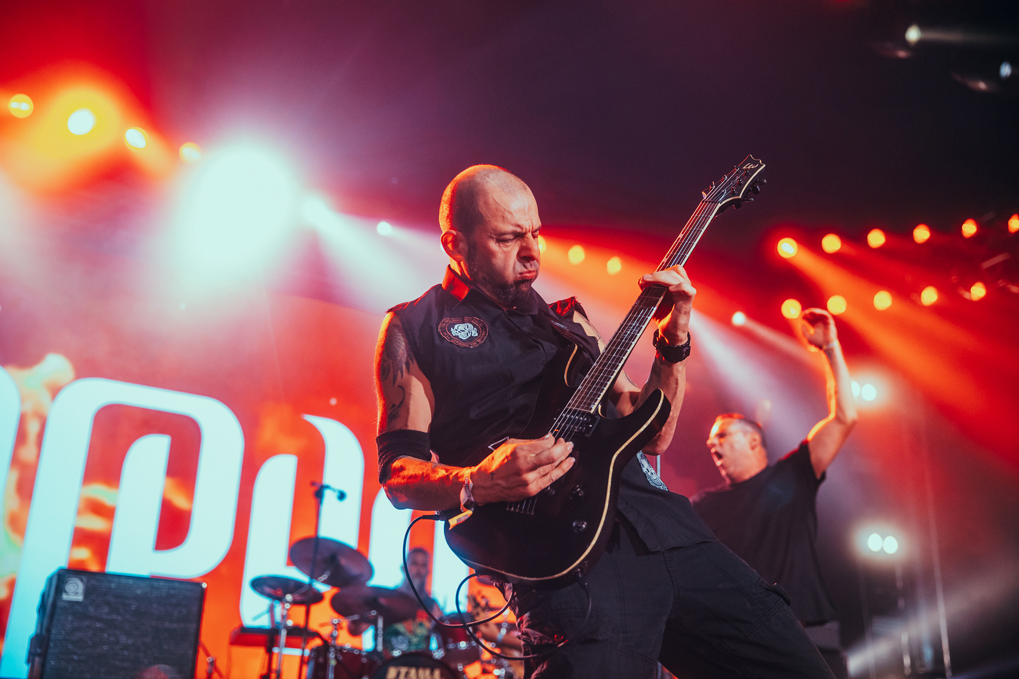 The spectacle hits you first: inflatable mascots towering over the Ronnie James Dio Stage, jets of flame punctuating every breakdown, and a production that wouldn’t look out of place in an arena. But it’s the parade of guests that really elevates proceedings. SLEEP TOKEN’s III appears for a thunderous Throes Of Perdition, fellow headliner Robb Flynn lends his growl to BLACK SABBATH’s Symptom Of The Universe whilst Ihsahn‘s mistimed entrance on In Waves becomes an endearing highlight rather than a mishap.