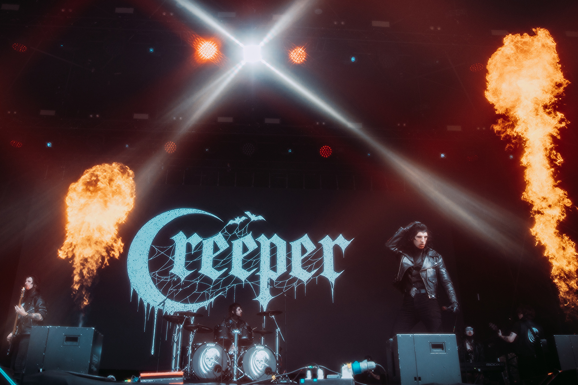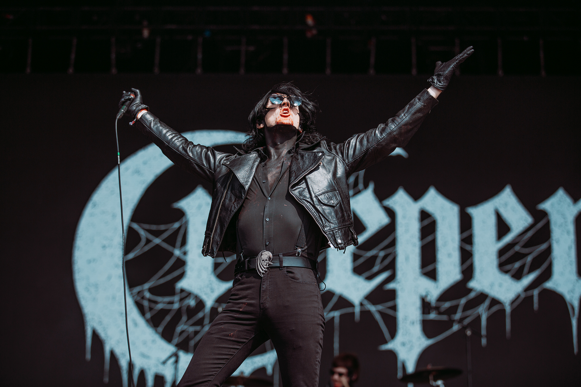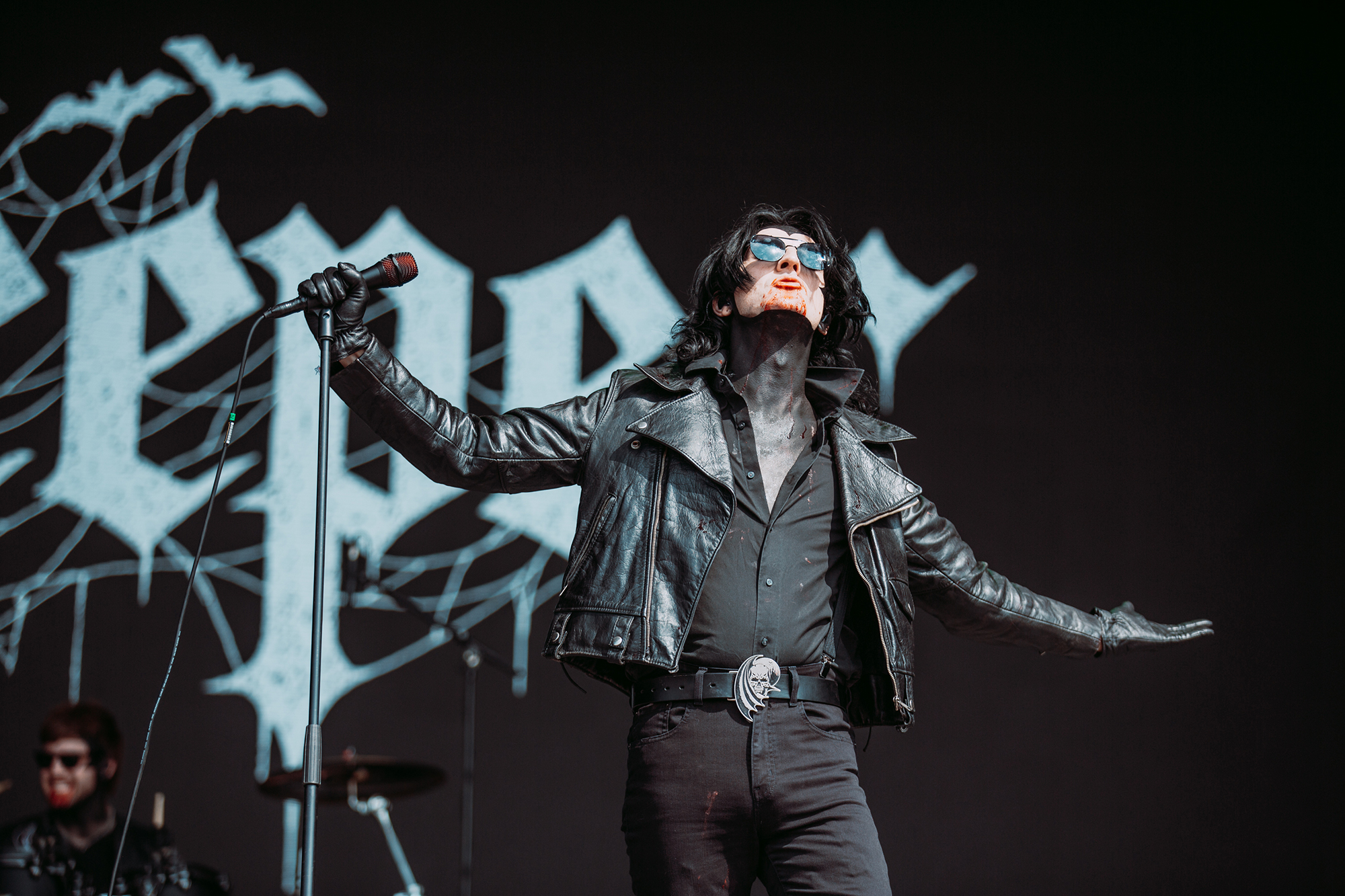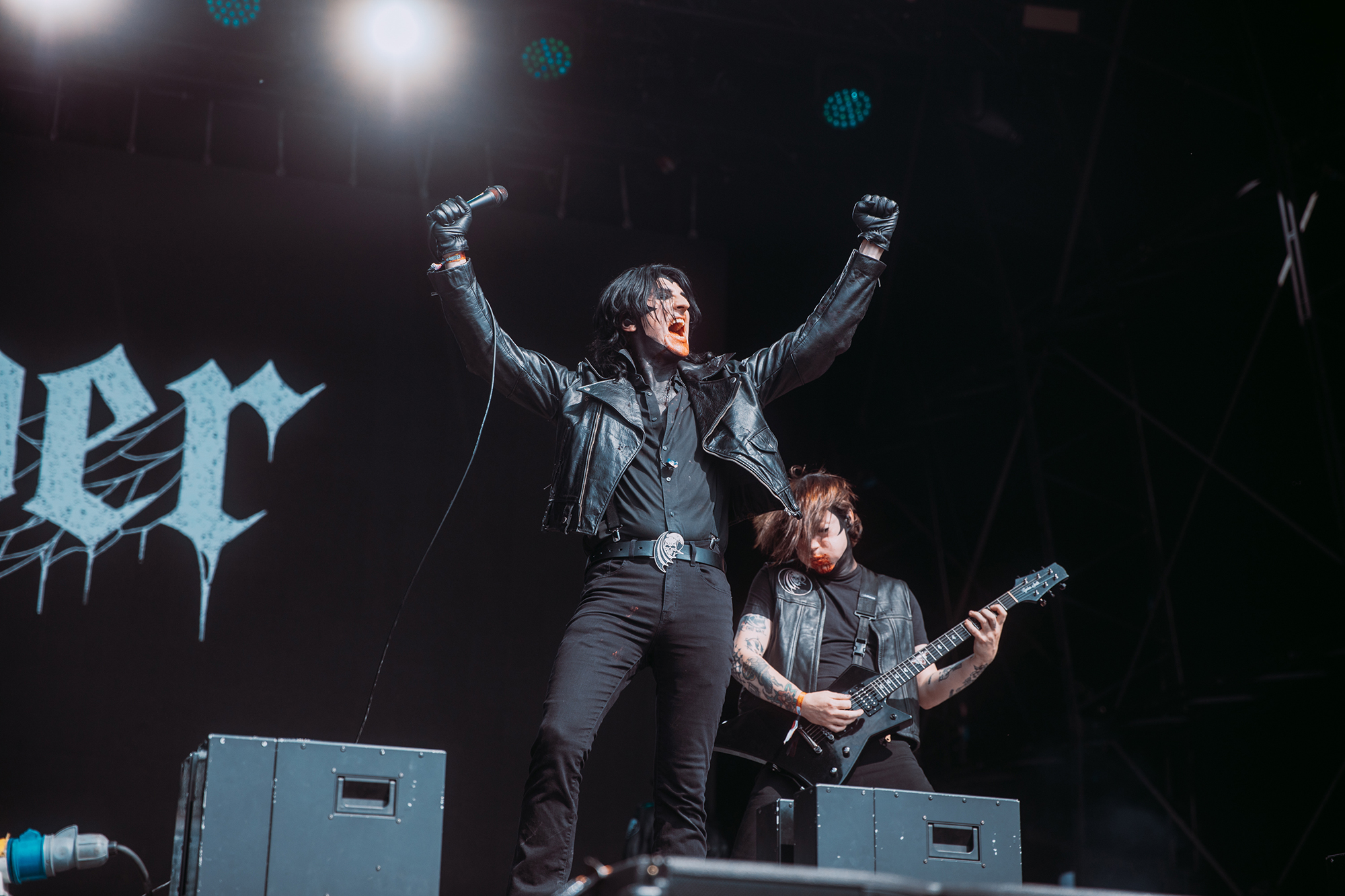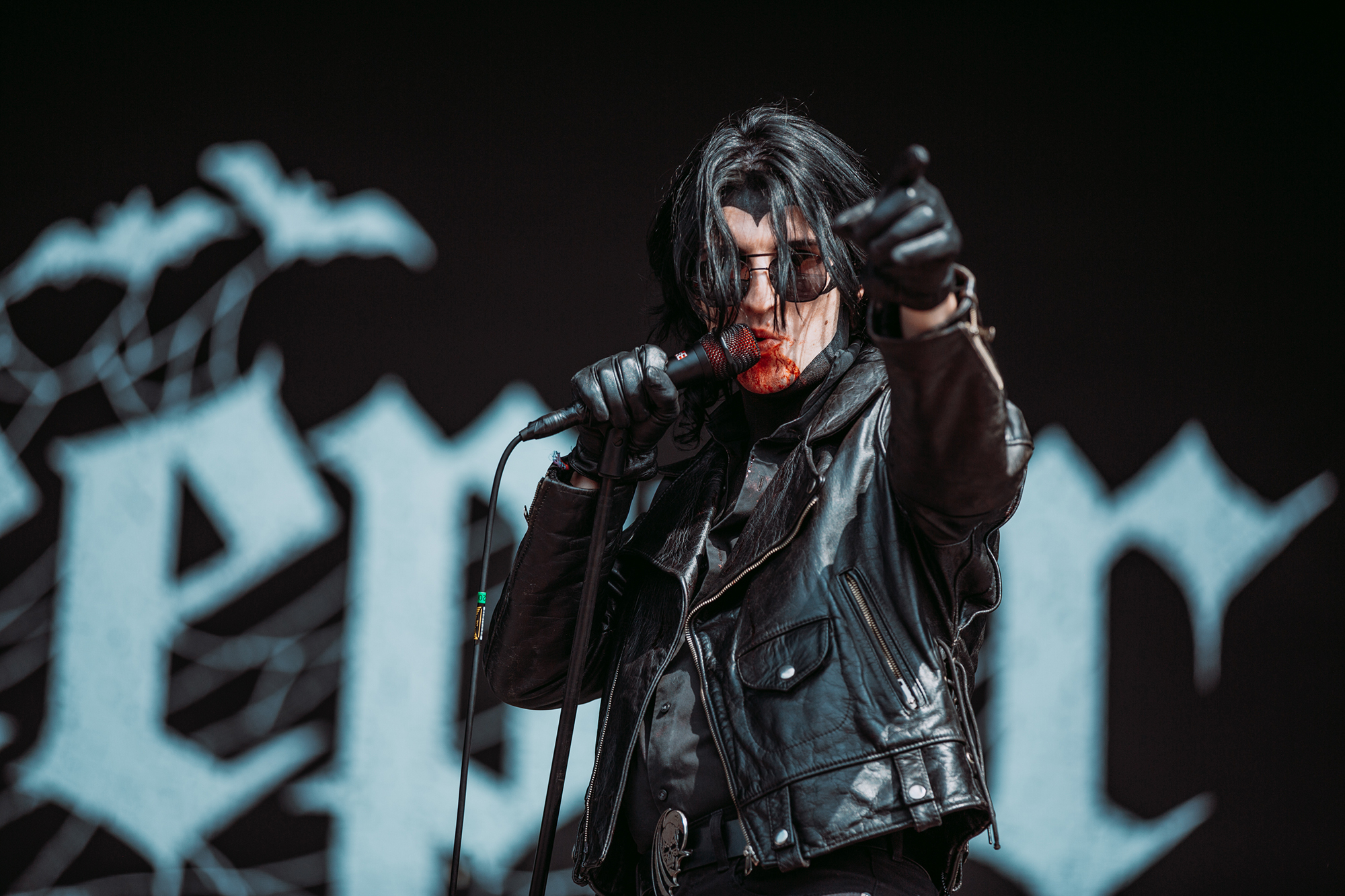 On paper, CREEPER’s rock opera theatrics should be perfectly suited to Bloodstock Festival, but something’s sorely missing from their mid-afternoon debut. Arriving on stage draped in leather and dripping blood, Southampton’s resident vampires waste no time in sinking their teeth in, giving new single Black Magick (It’s A Ritual) it’s live debut: think BELINDA CARLISLE in bed with BILLY IDOL and MEAT LOAF. Having co-headlined Wembley Arena last year, you’d argue CREEPER should be playing later on, yet they treat it like they are with plenty of pyro, pomp, and power solos. But whatever they do, their theatrical magic feels lost on the Bloodstock crowd, save for those down the front singing their hearts out. It does feel like they’ve missed a trick, as they leave out plenty of big hitters like Hiding With Boys, Annabelle, and Misery to play more from their Sanguivore-era, but at the same time, they sound at their blooming best, with frontman Will Ghould and guitarist Ian Miles doing their very best to steal the show from each other. Still, there’s some disconnect, so maybe second time’s a charm?