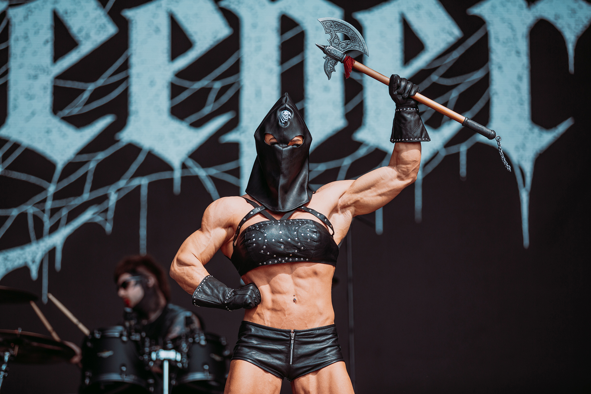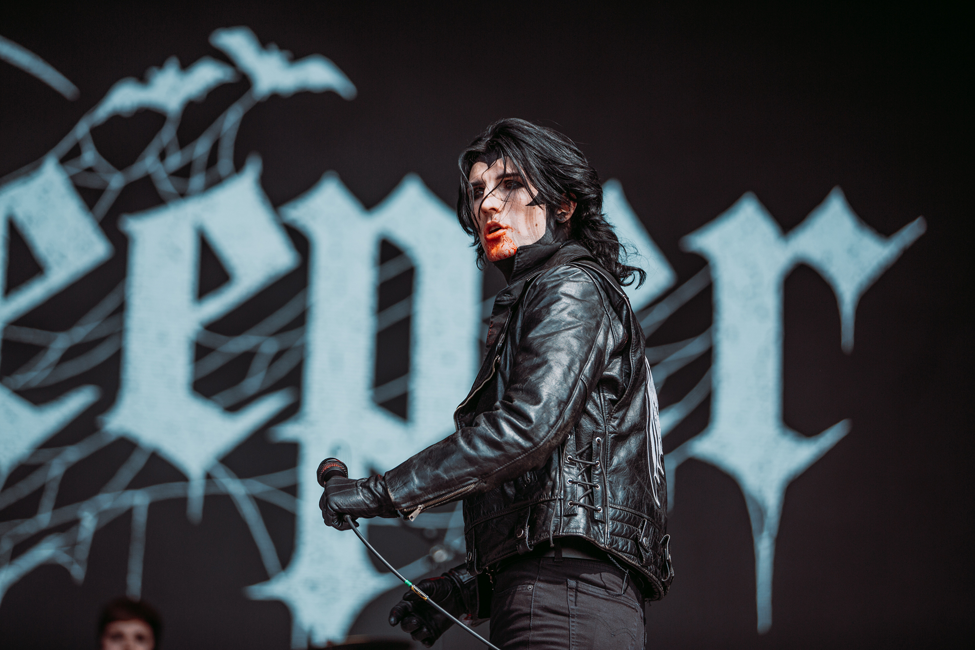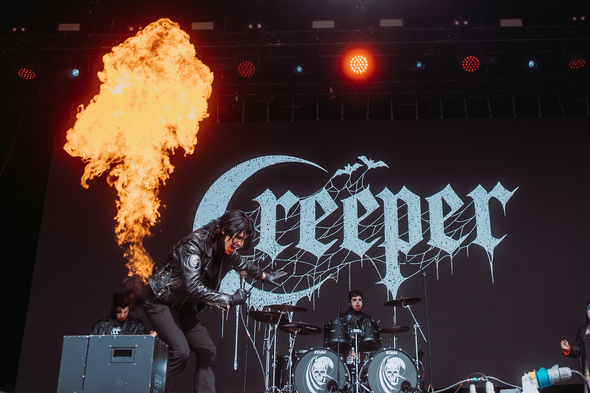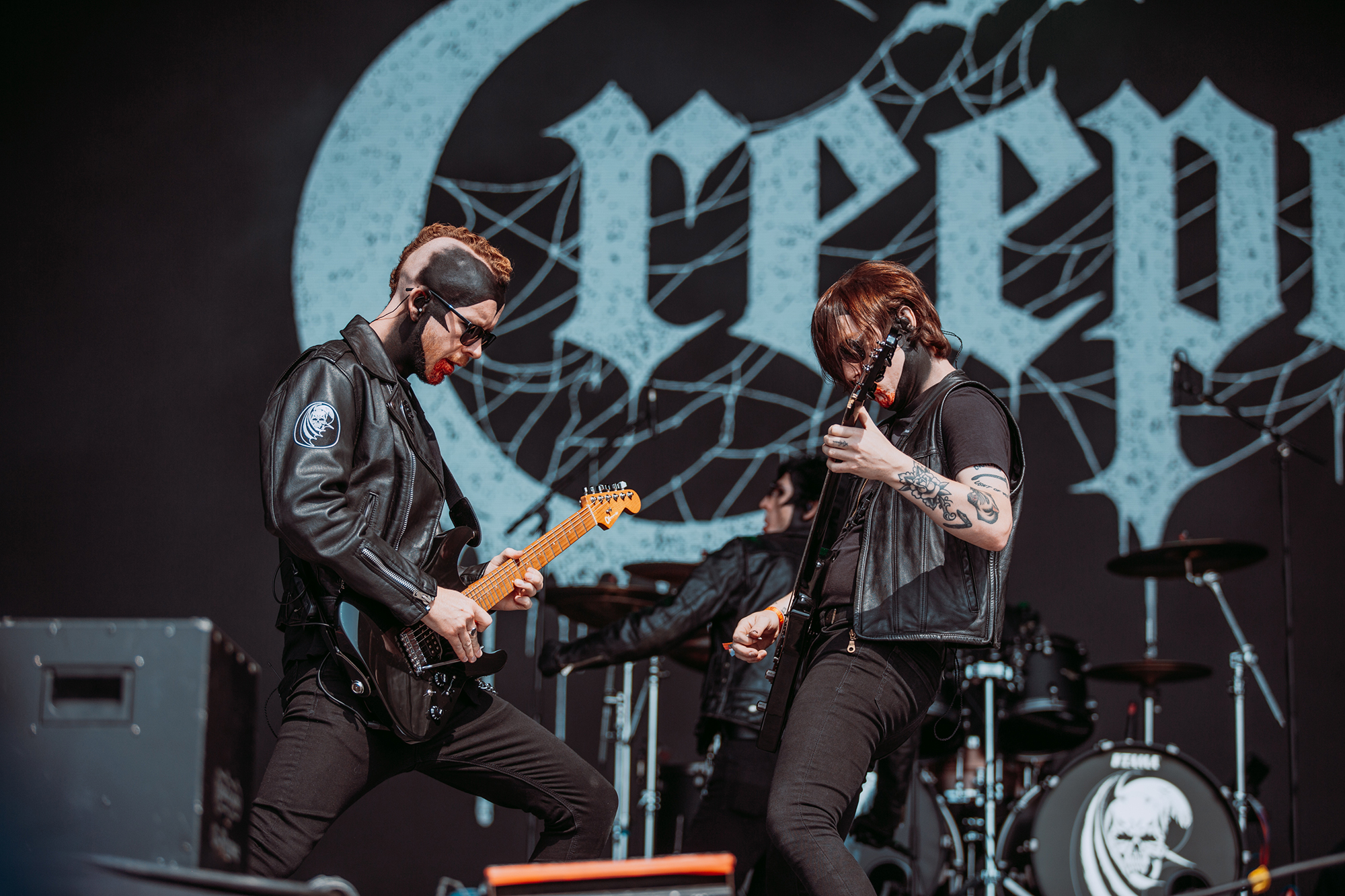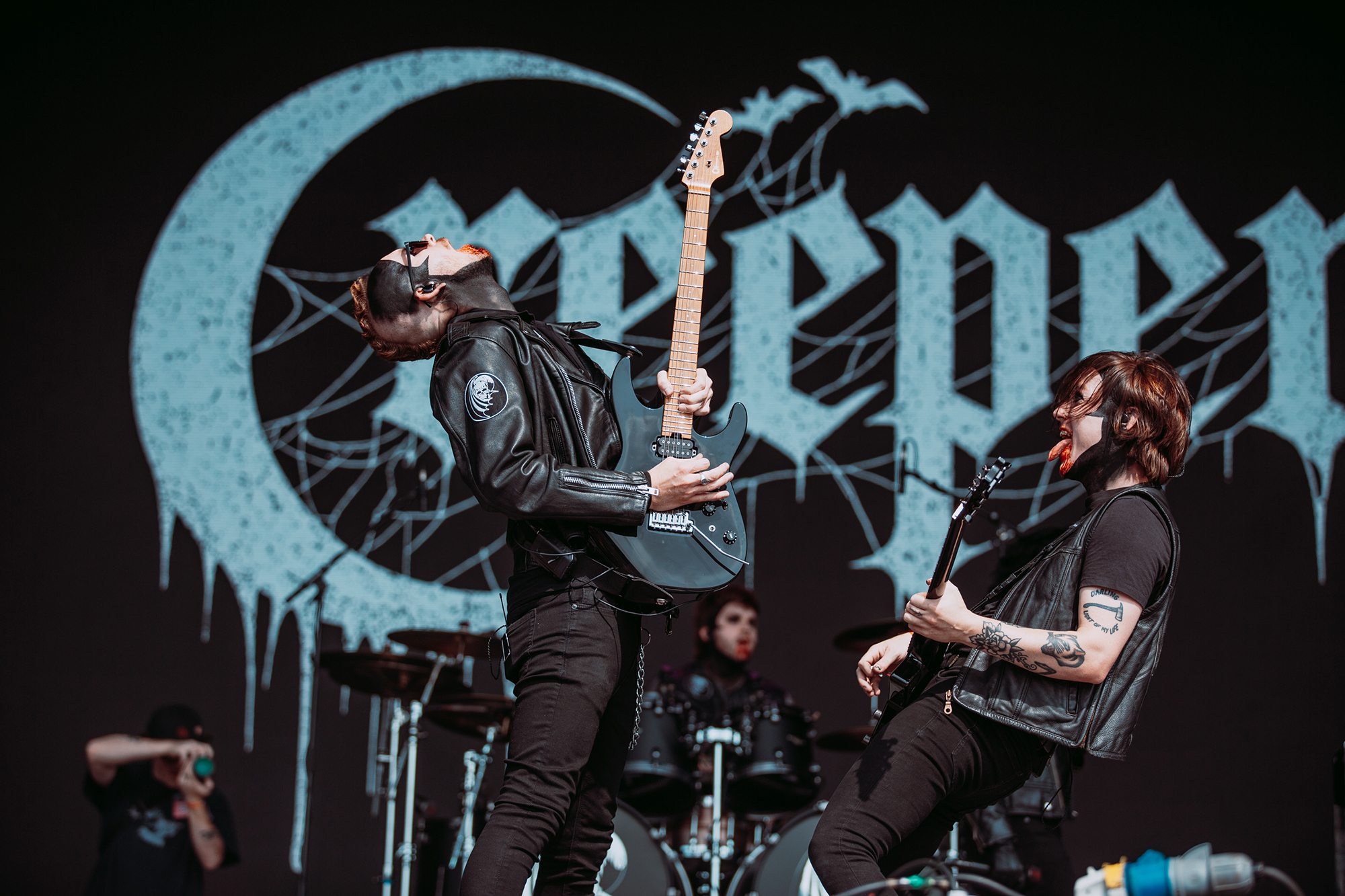 On paper, CREEPER’s rock opera theatrics should be perfectly suited to Bloodstock Festival, but something’s sorely missing from their mid-afternoon debut. Arriving on stage draped in leather and dripping blood, Southampton’s resident vampires waste no time in sinking their teeth in, giving new single Black Magick (It’s A Ritual) it’s live debut: think BELINDA CARLISLE in bed with BILLY IDOL and MEAT LOAF. Having co-headlined Wembley Arena last year, you’d argue CREEPER should be playing later on, yet they treat it like they are with plenty of pyro, pomp, and power solos. But whatever they do, their theatrical magic feels lost on the Bloodstock crowd, save for those down the front singing their hearts out. It does feel like they’ve missed a trick, as they leave out plenty of big hitters like Hiding With Boys, Annabelle, and Misery to play more from their Sanguivore-era, but at the same time, they sound at their blooming best, with frontman Will Ghould and guitarist Ian Miles doing their very best to steal the show from each other. Still, there’s some disconnect, so maybe second time’s a charm?