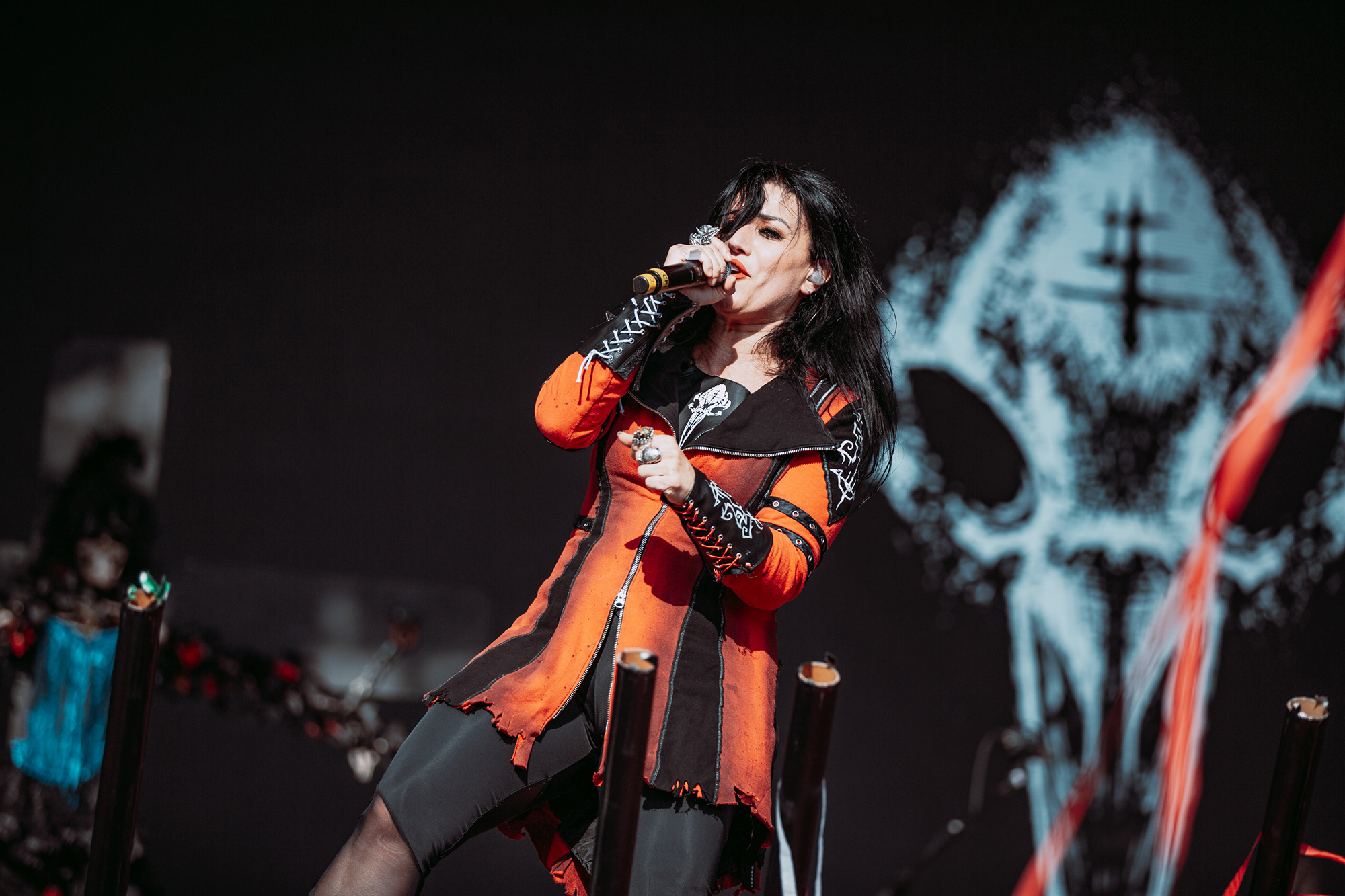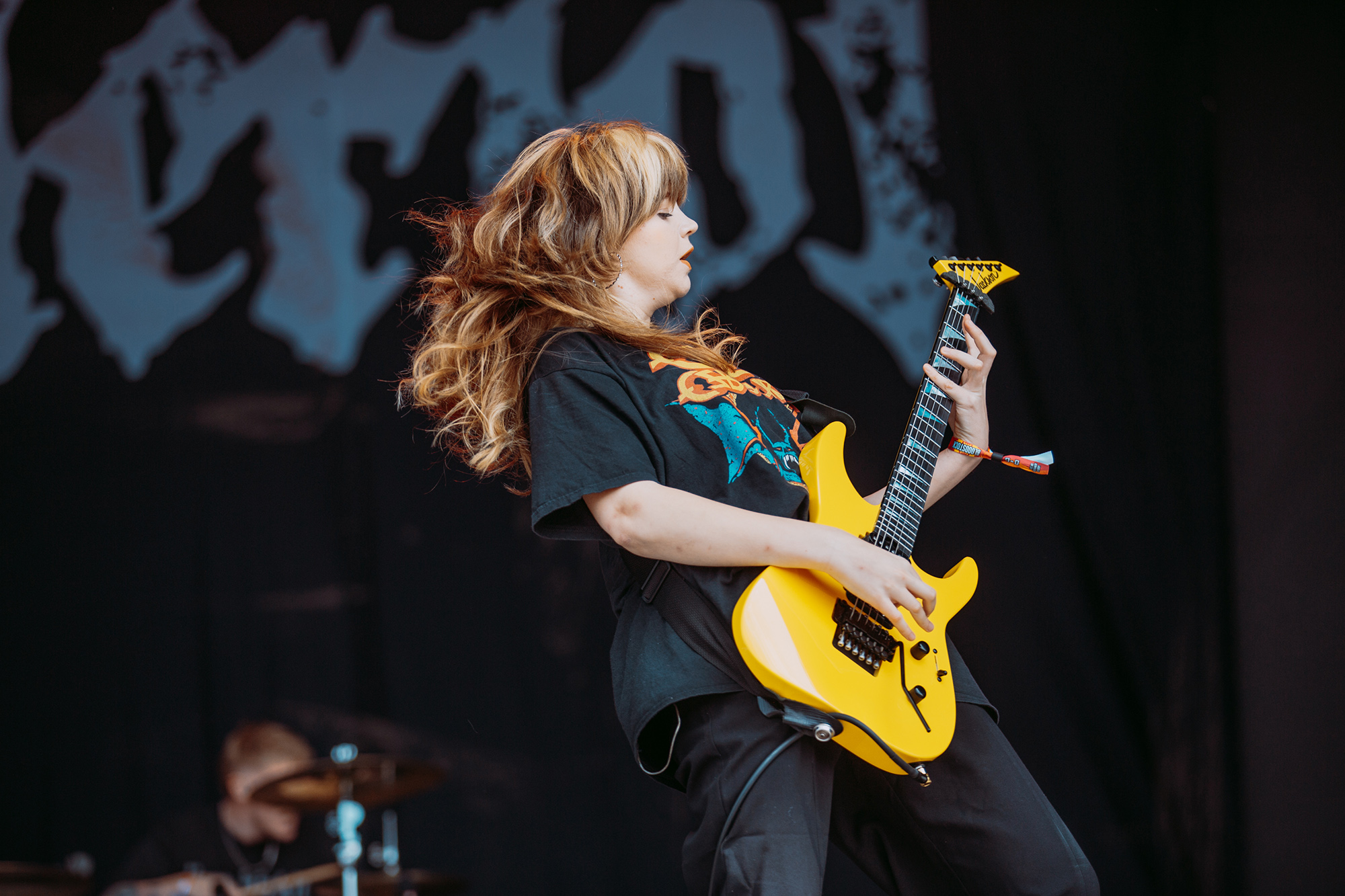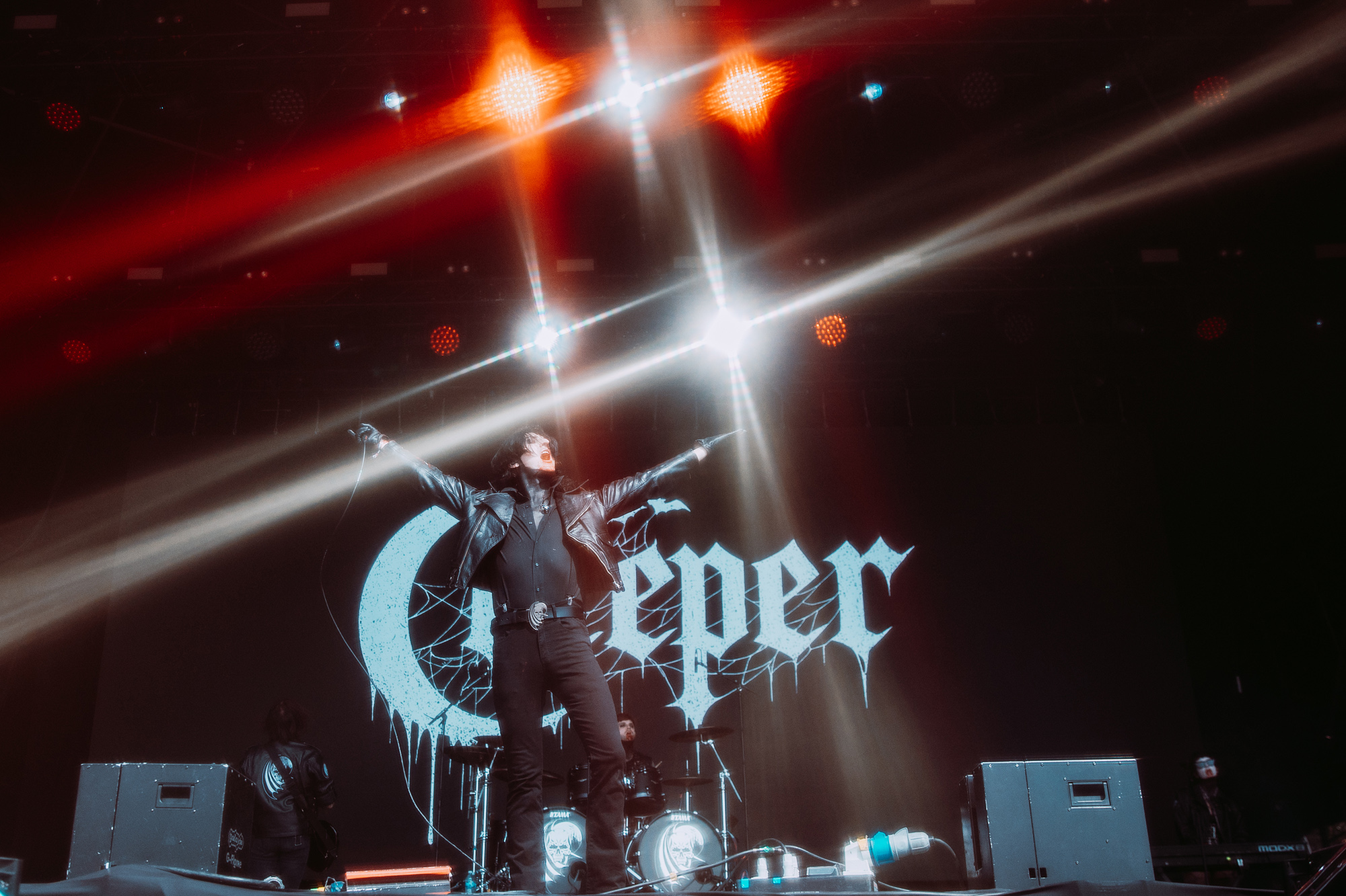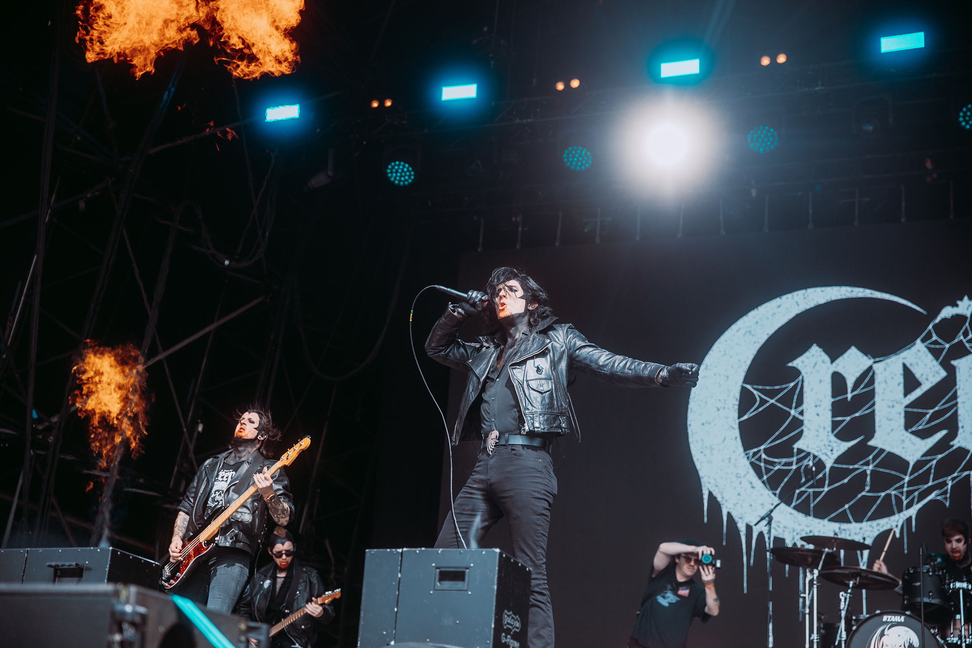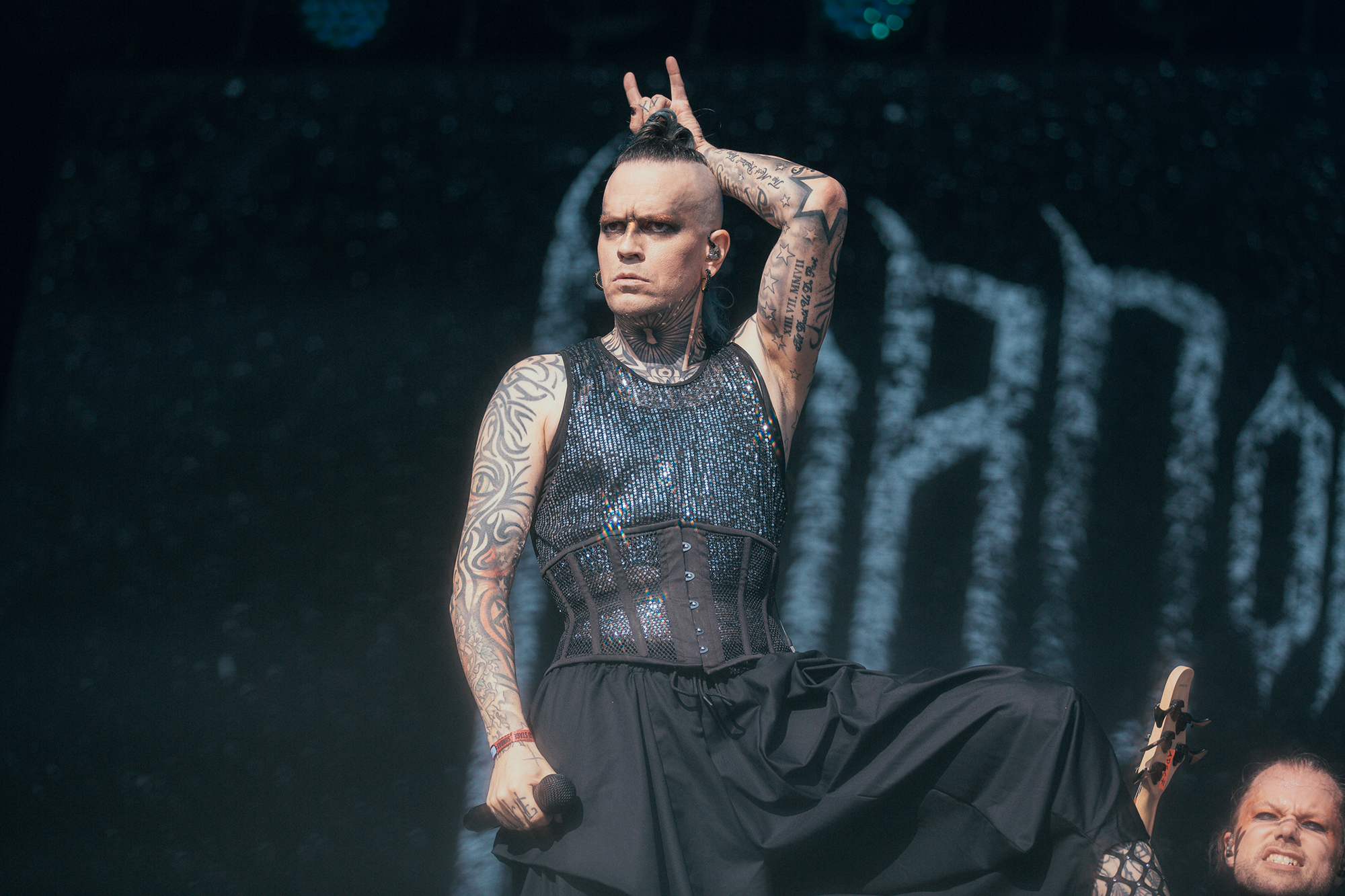 On paper, CREEPER’s rock opera theatrics should be perfectly suited to Bloodstock Festival, but something’s sorely missing from their mid-afternoon debut. Arriving on stage draped in leather and dripping blood, Southampton’s resident vampires waste no time in sinking their teeth in, giving new single Black Magick (It’s A Ritual) it’s live debut: think BELINDA CARLISLE in bed with BILLY IDOL and MEAT LOAF. Having co-headlined Wembley Arena last year, you’d argue CREEPER should be playing later on, yet they treat it like they are with plenty of pyro, pomp, and power solos. But whatever they do, their theatrical magic feels lost on the Bloodstock crowd, save for those down the front singing their hearts out. It does feel like they’ve missed a trick, as they leave out plenty of big hitters like Hiding With Boys, Annabelle, and Misery to play more from their Sanguivore-era, but at the same time, they sound at their blooming best, with frontman Will Ghould and guitarist Ian Miles doing their very best to steal the show from each other. Still, there’s some disconnect, so maybe second time’s a charm?