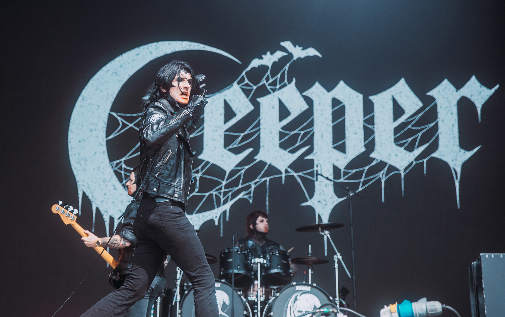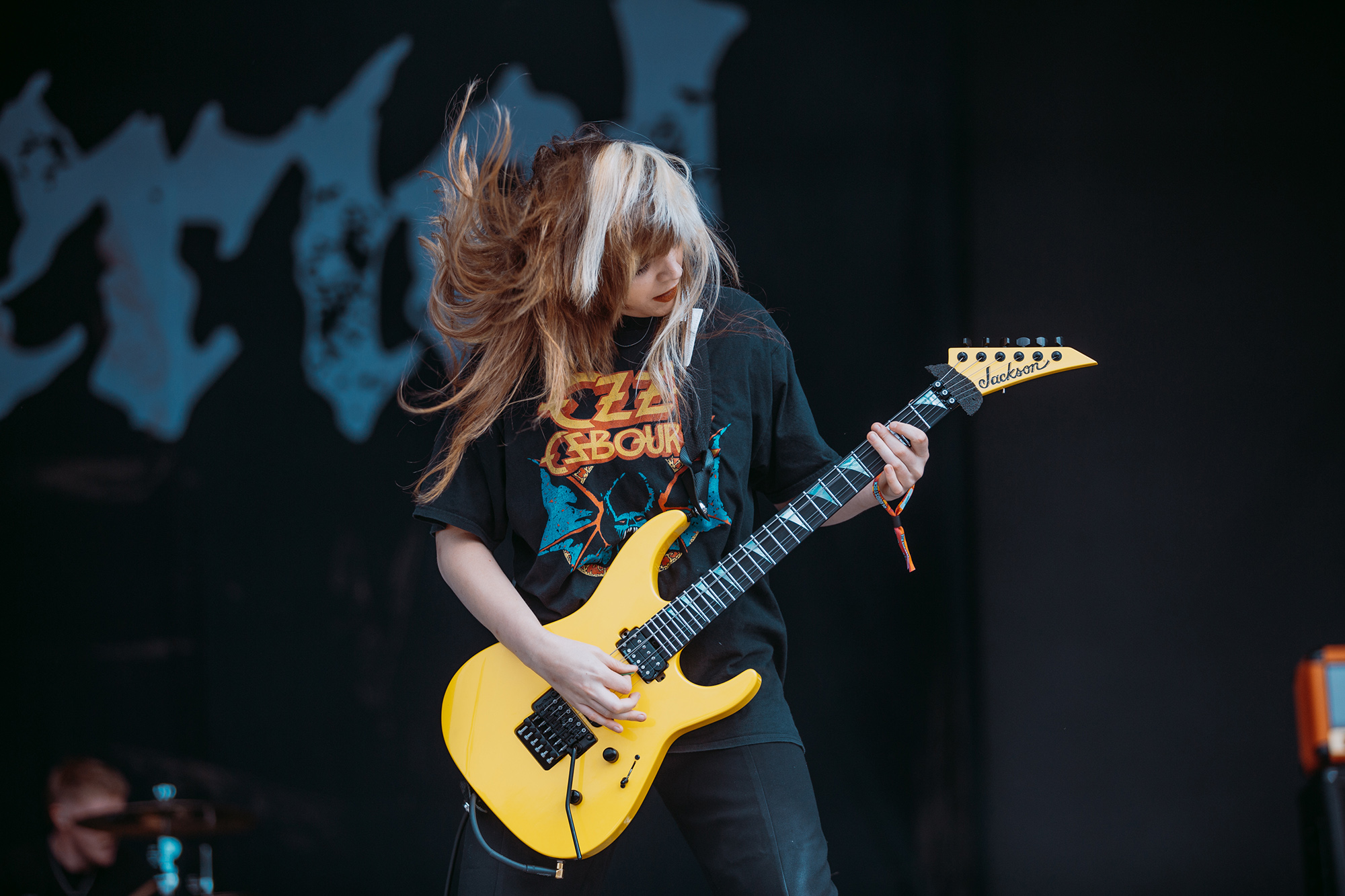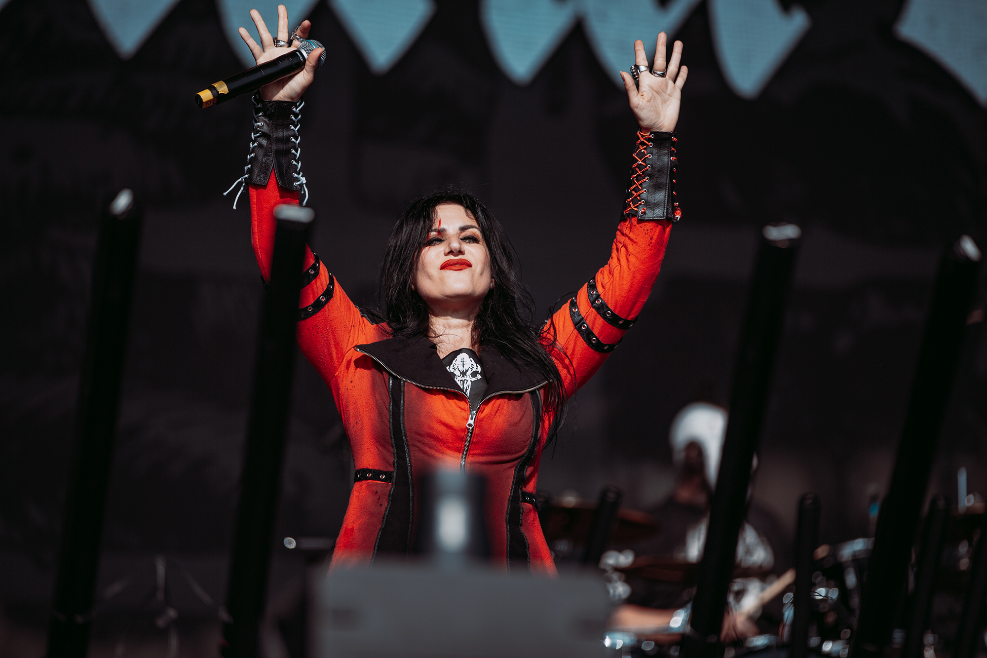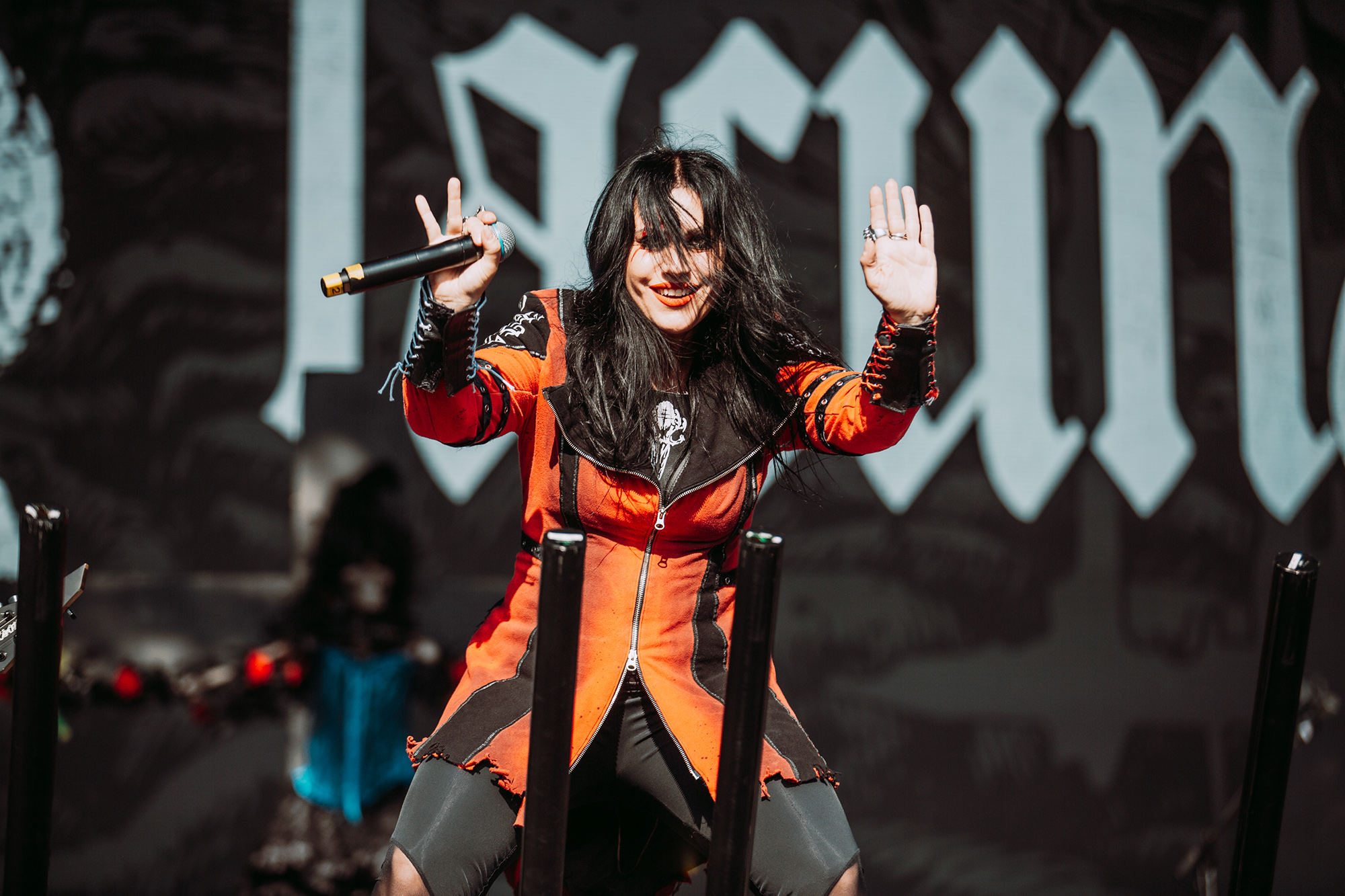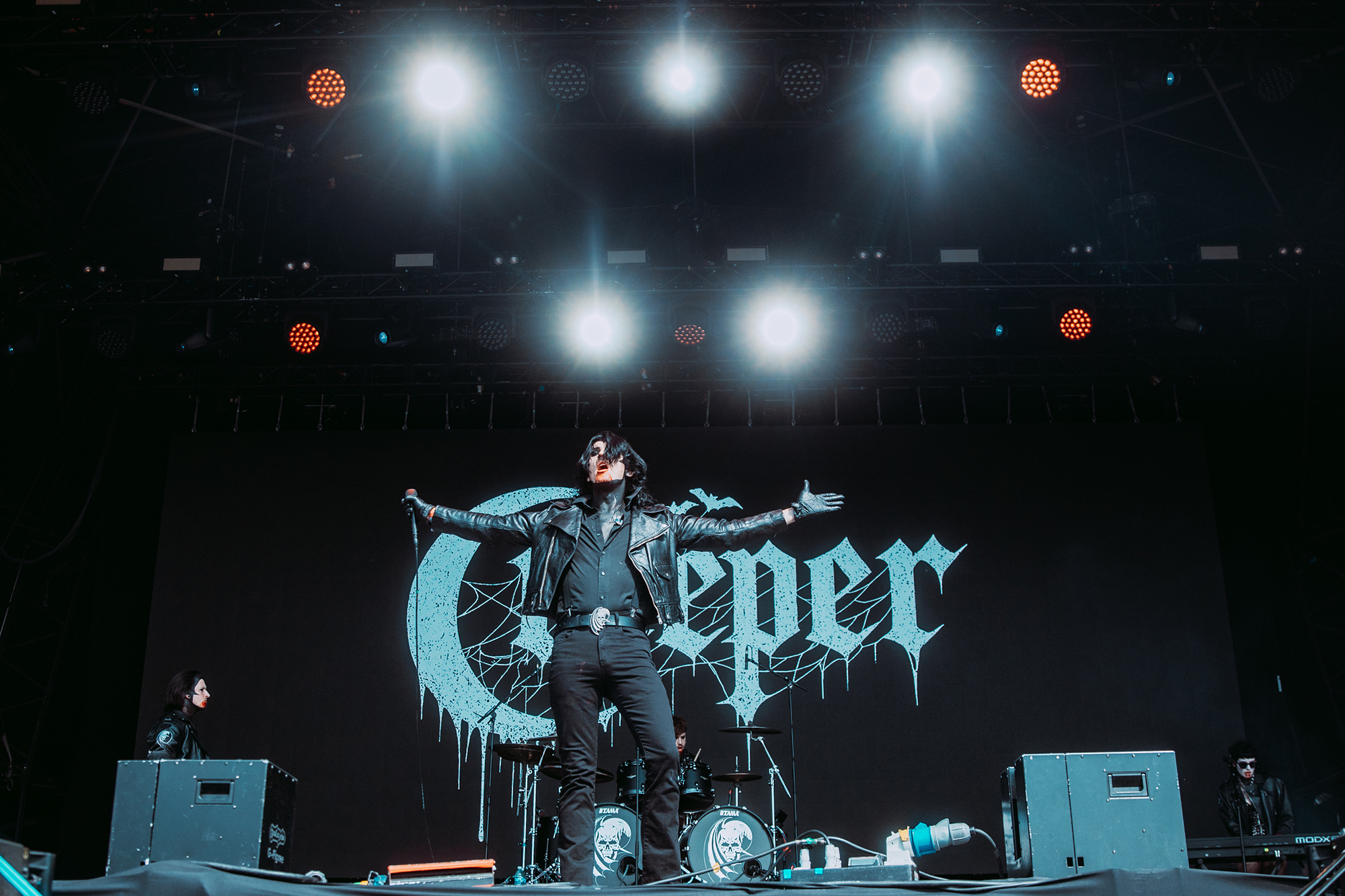 On paper, CREEPER’s rock opera theatrics should be perfectly suited to Bloodstock Festival, but something’s sorely missing from their mid-afternoon debut. Arriving on stage draped in leather and dripping blood, Southampton’s resident vampires waste no time in sinking their teeth in, giving new single Black Magick (It’s A Ritual) it’s live debut: think BELINDA CARLISLE in bed with BILLY IDOL and MEAT LOAF. Having co-headlined Wembley Arena last year, you’d argue CREEPER should be playing later on, yet they treat it like they are with plenty of pyro, pomp, and power solos. But whatever they do, their theatrical magic feels lost on the Bloodstock crowd, save for those down the front singing their hearts out. It does feel like they’ve missed a trick, as they leave out plenty of big hitters like Hiding With Boys, Annabelle, and Misery to play more from their Sanguivore-era, but at the same time, they sound at their blooming best, with frontman Will Ghould and guitarist Ian Miles doing their very best to steal the show from each other. Still, there’s some disconnect, so maybe second time’s a charm?