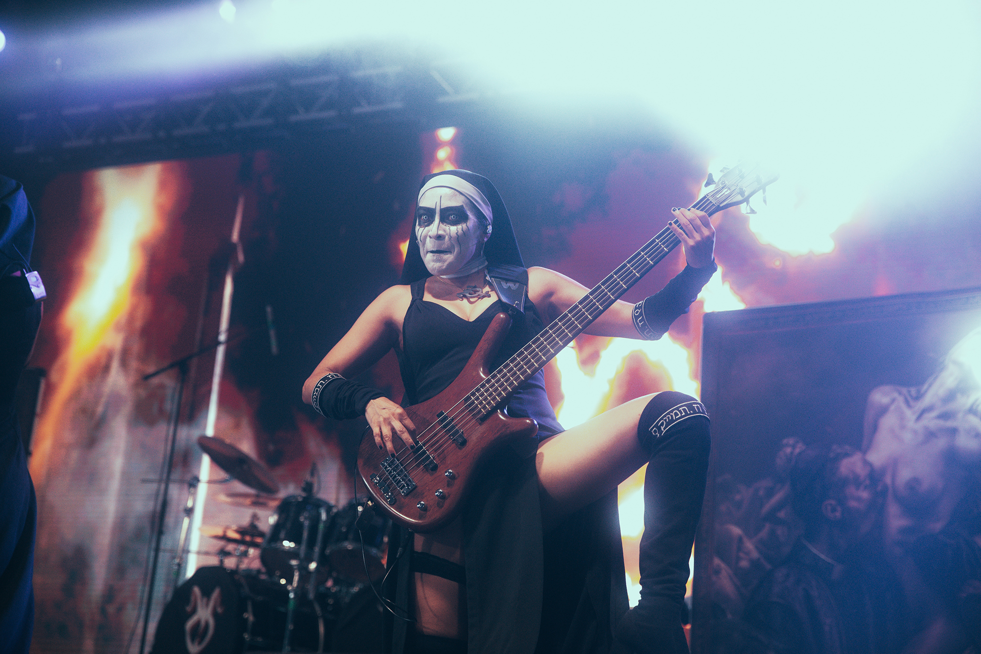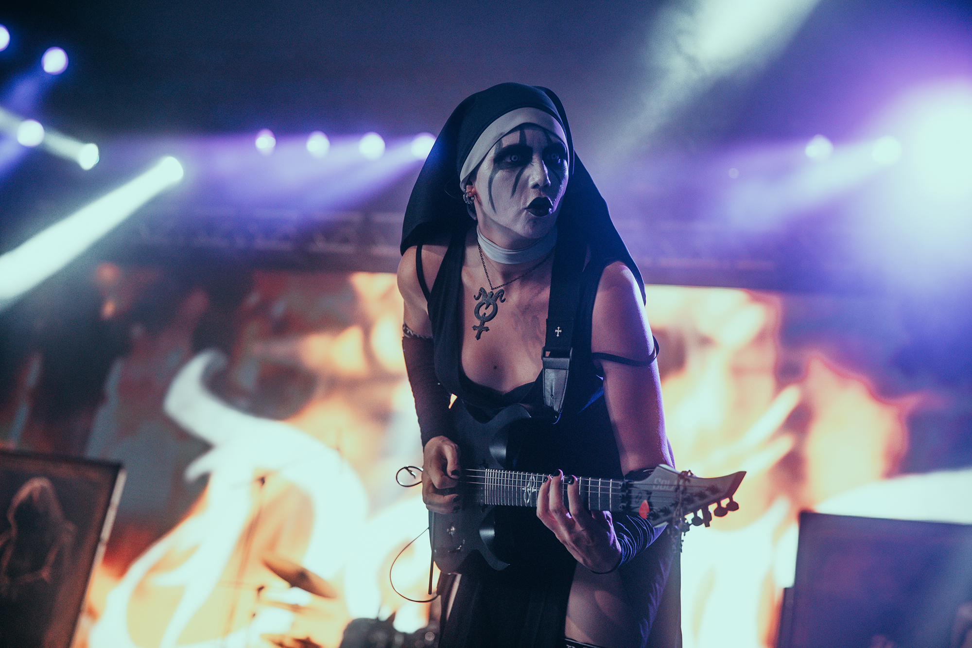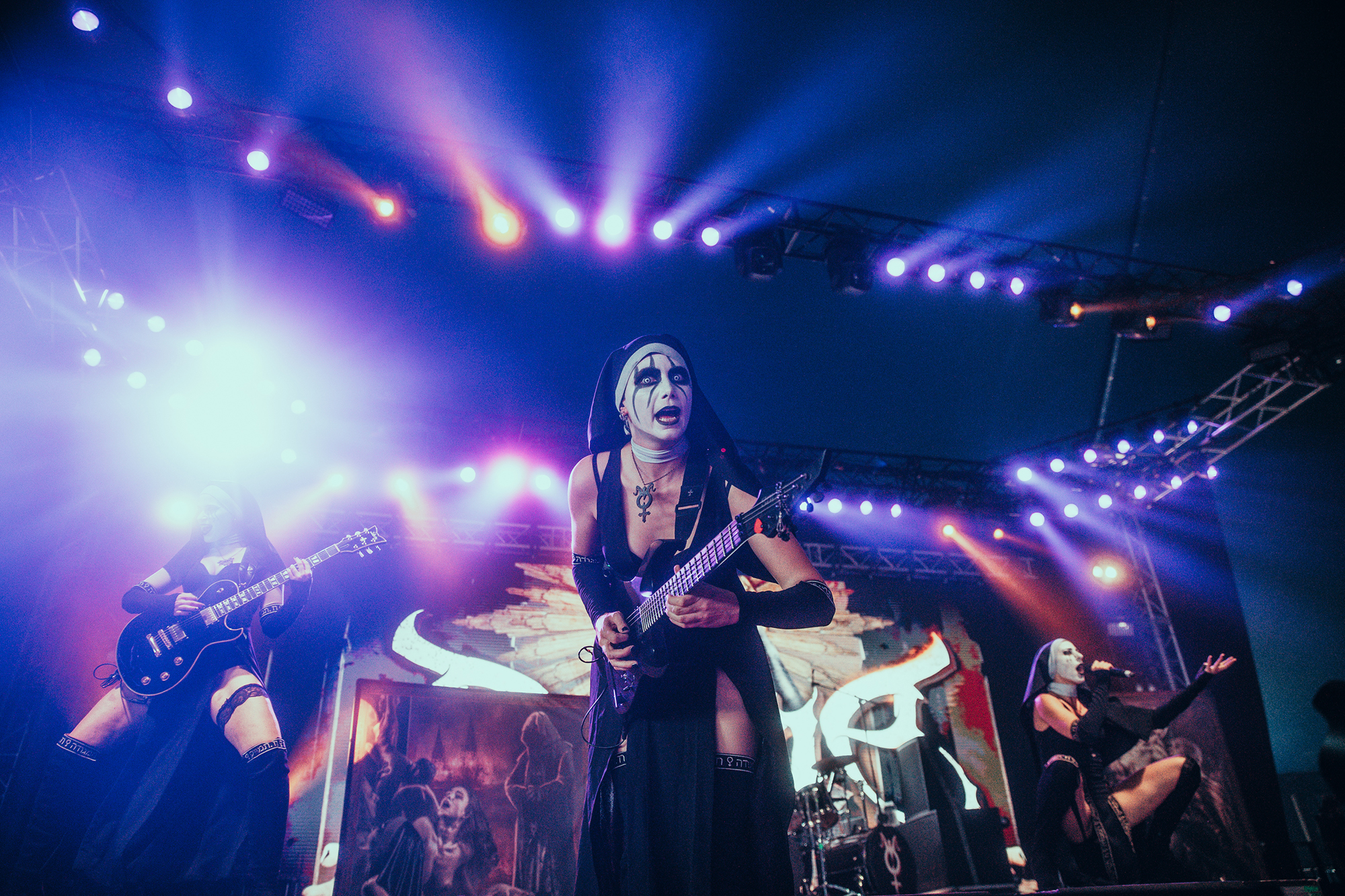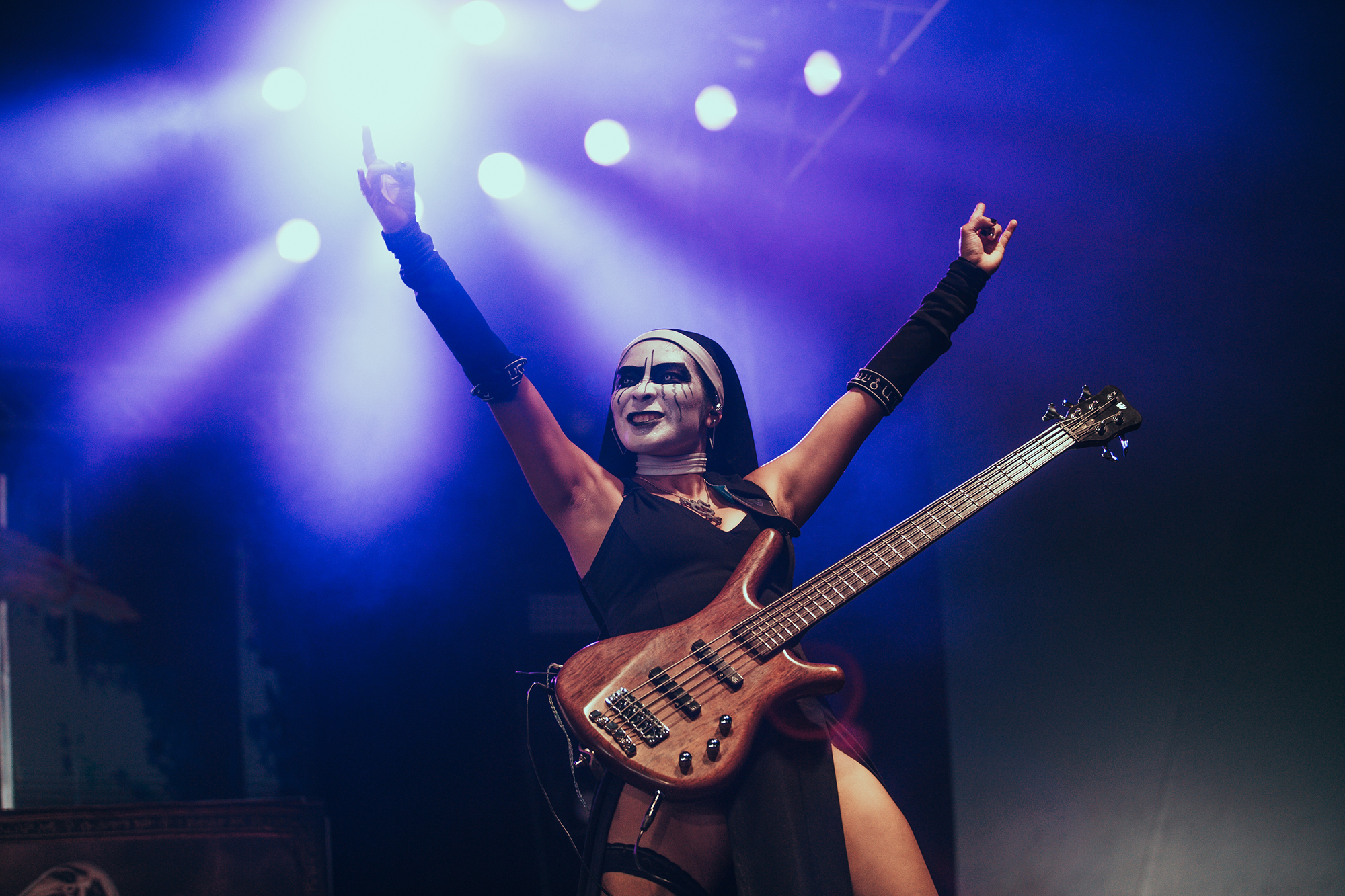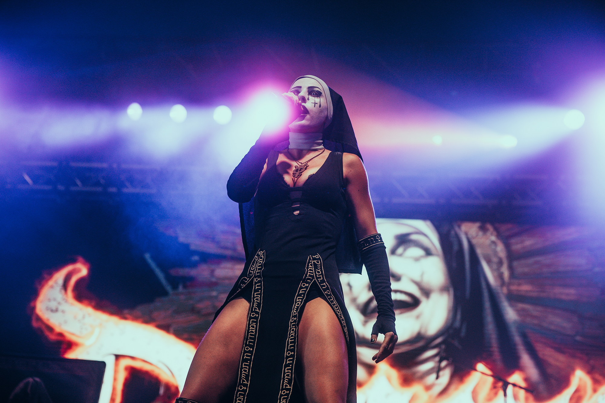 Somebody should’ve told DOGMA it’s dinosaur day at Bloodstock. Not that these heavy metal nuns would’ve taken much notice, and nor should they. Most acts like this are straight-up gimmicks that don’t deserve a tent so packed you’ve got to breathe in just to squeeze into it, this convent proves they’re the real deal. Combining 80s glam theatrics with power metal pomp, the likes of Made Her Mine and Carnal Liberation see DOGMA simultaneously showcase their serious musical chops and slightly less serious stage presence. Despite the tent starting to thin out a bit after a few songs, their cover of MADONNA’s innuendo-filled Like A Prayer converts the non-believers to their cause, and the sing-along strong Father I Have Sinned leaves all in attendance fed and then some.