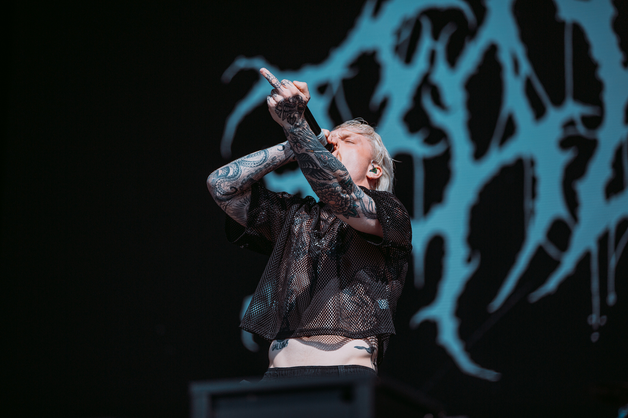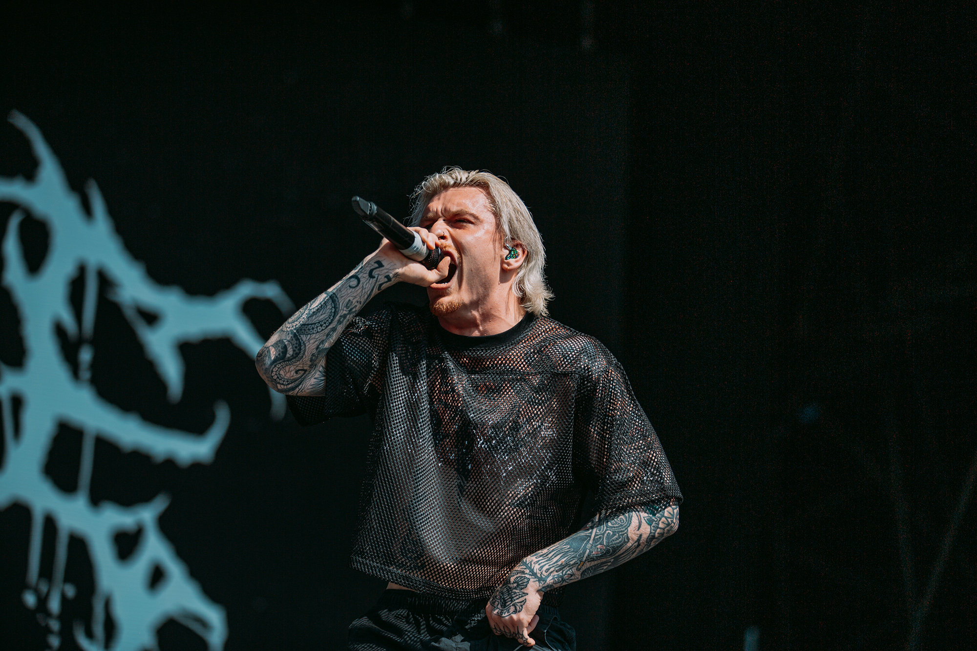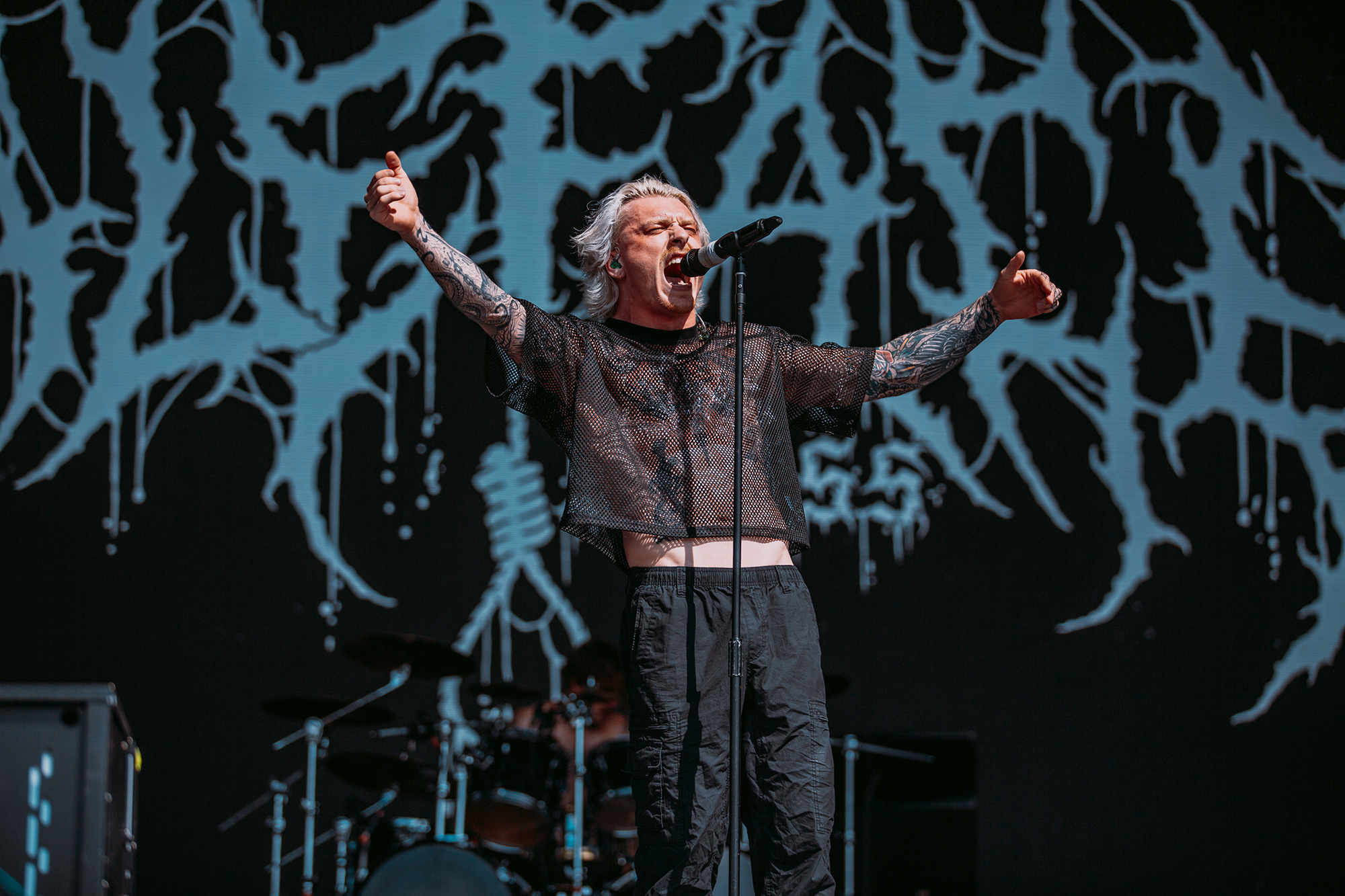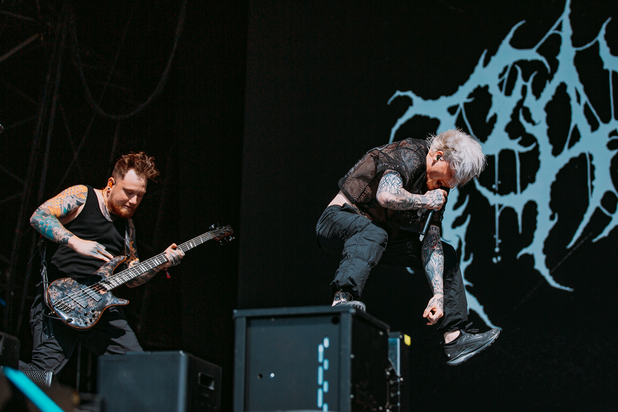Switzerland’s deathcore champs PALCEFACE SWISS‘ stock has fast-risen in the past few years, with 2022’s Fear & Dagger and this year’s Cursed catapulting them into the same conversation as LORNA SHORE and next year’s headliners SLAUGHTER TO PREVAIL. And today’s set sees them earn their stripes and then some. As the angst-ridden opening duo of Hatred and …and with hope you’ll be damned creating dust clouds from circle pits and crowd surfers, PALEFACE SWISS come face-to-face with the main stage’s biggest crowd of the day. It’s their first UK festival show, and frontman Marc ‘Zelli’ Zellweger isn’t letting anyone off lightly. He might joke about the rare sighting of the sun leaving him looking like Mr Krabs once their finished, but he’s ribbing no one when he channels pre-That’s The Spirit-era Oli Sykes in baiting the crowd to go faster and harder with every song. The likes of Nail To The Tooth and Please End Me launch you headfirst into the dirt, whilst the call-and-response choruses of I Am A Cursed One and Best Before: Death feel like arena-ready anthems. As Love Burns sees them level the Ronnie James Dio Stage once more, one thing is clear: if PALEFACE SWISS aren’t headlining the Ronnie James Dio Stage in the next five years, something’s gone very wrong.