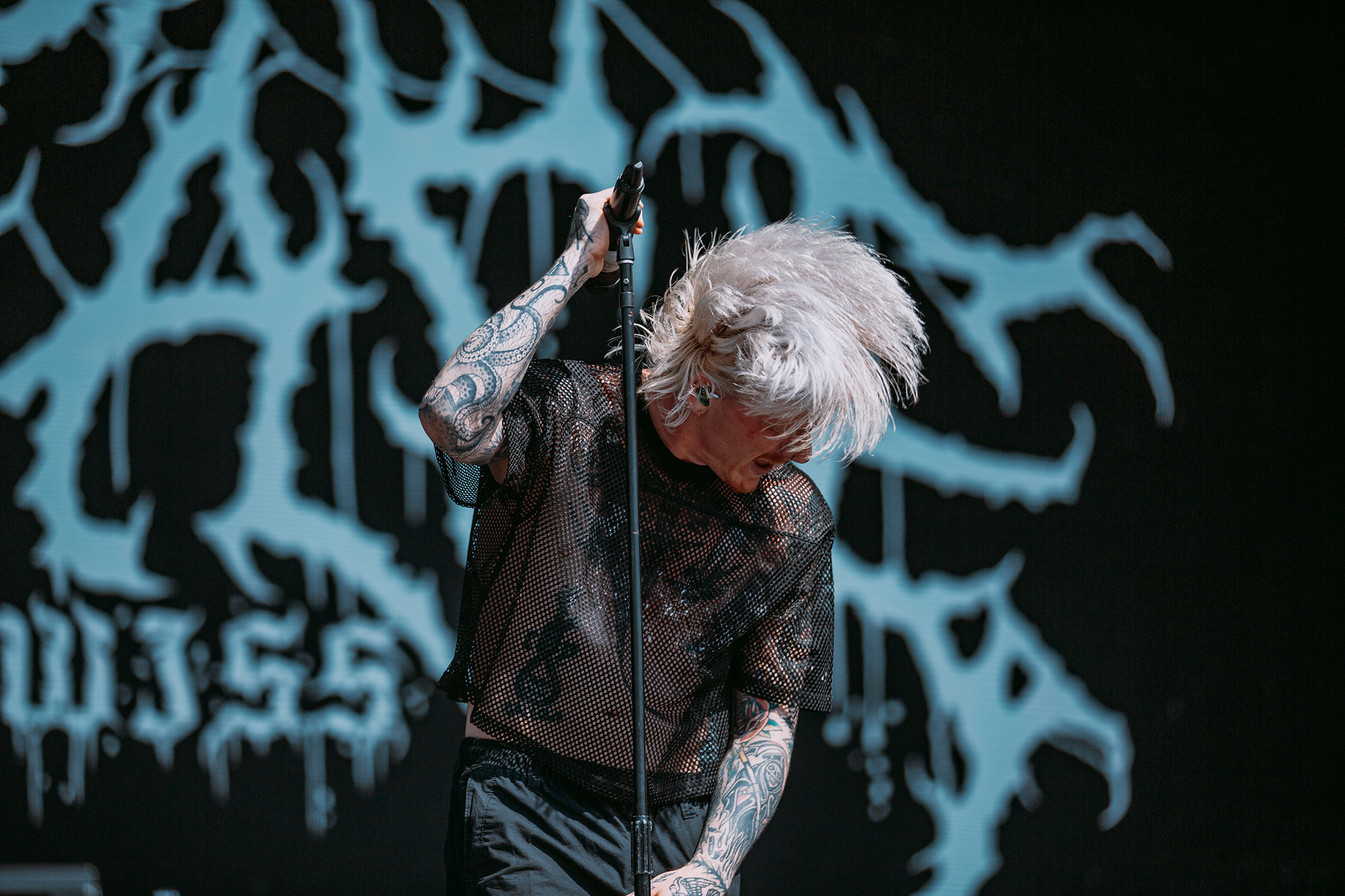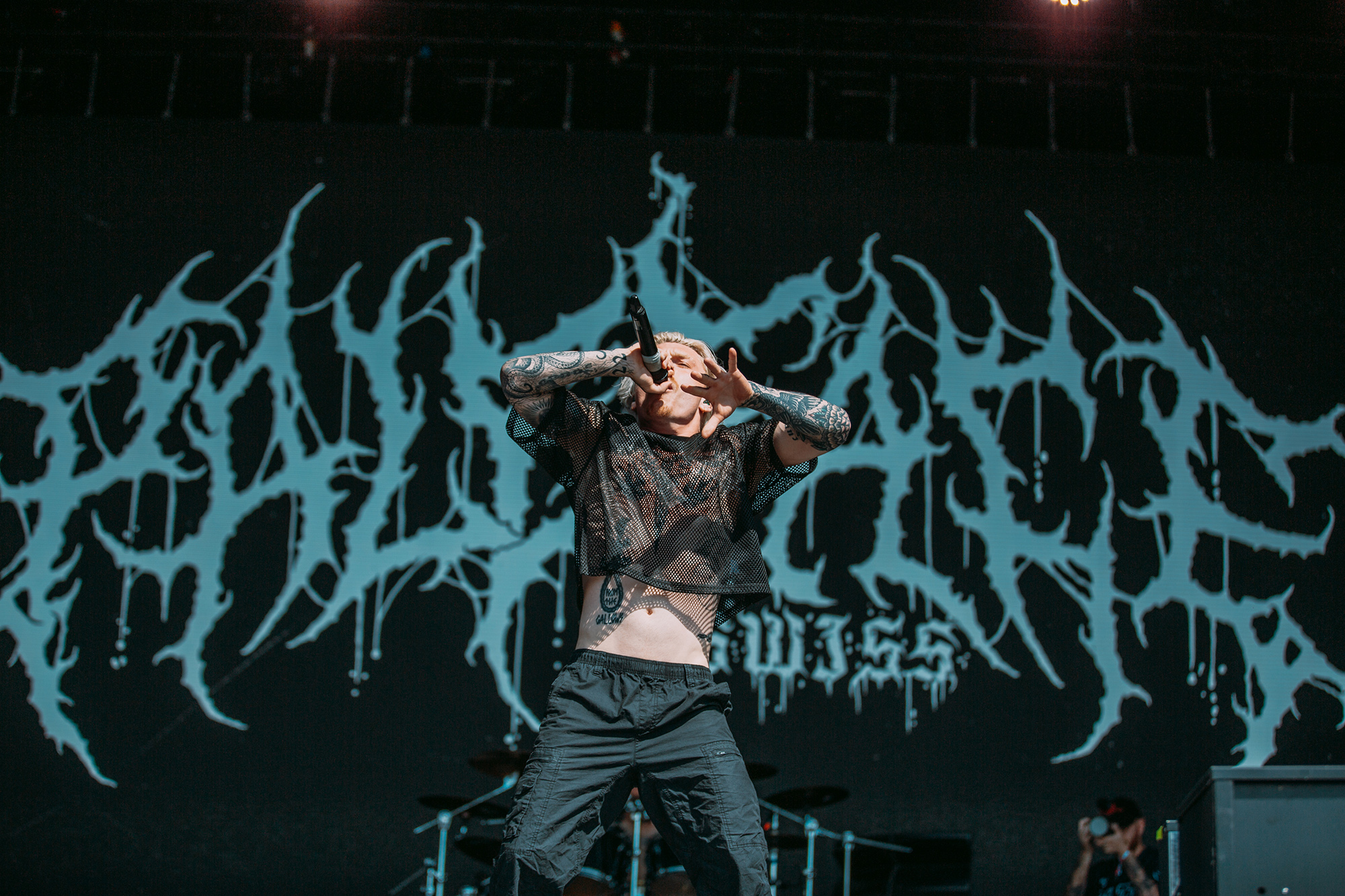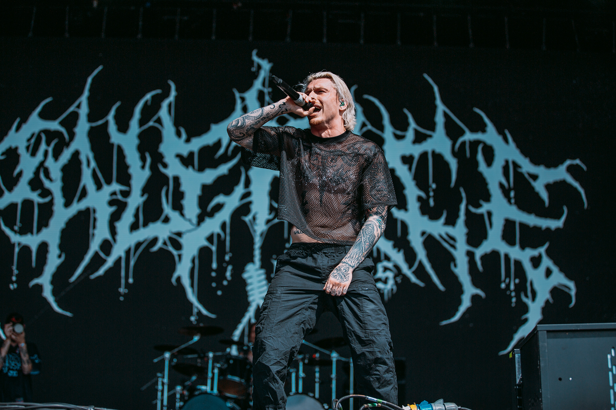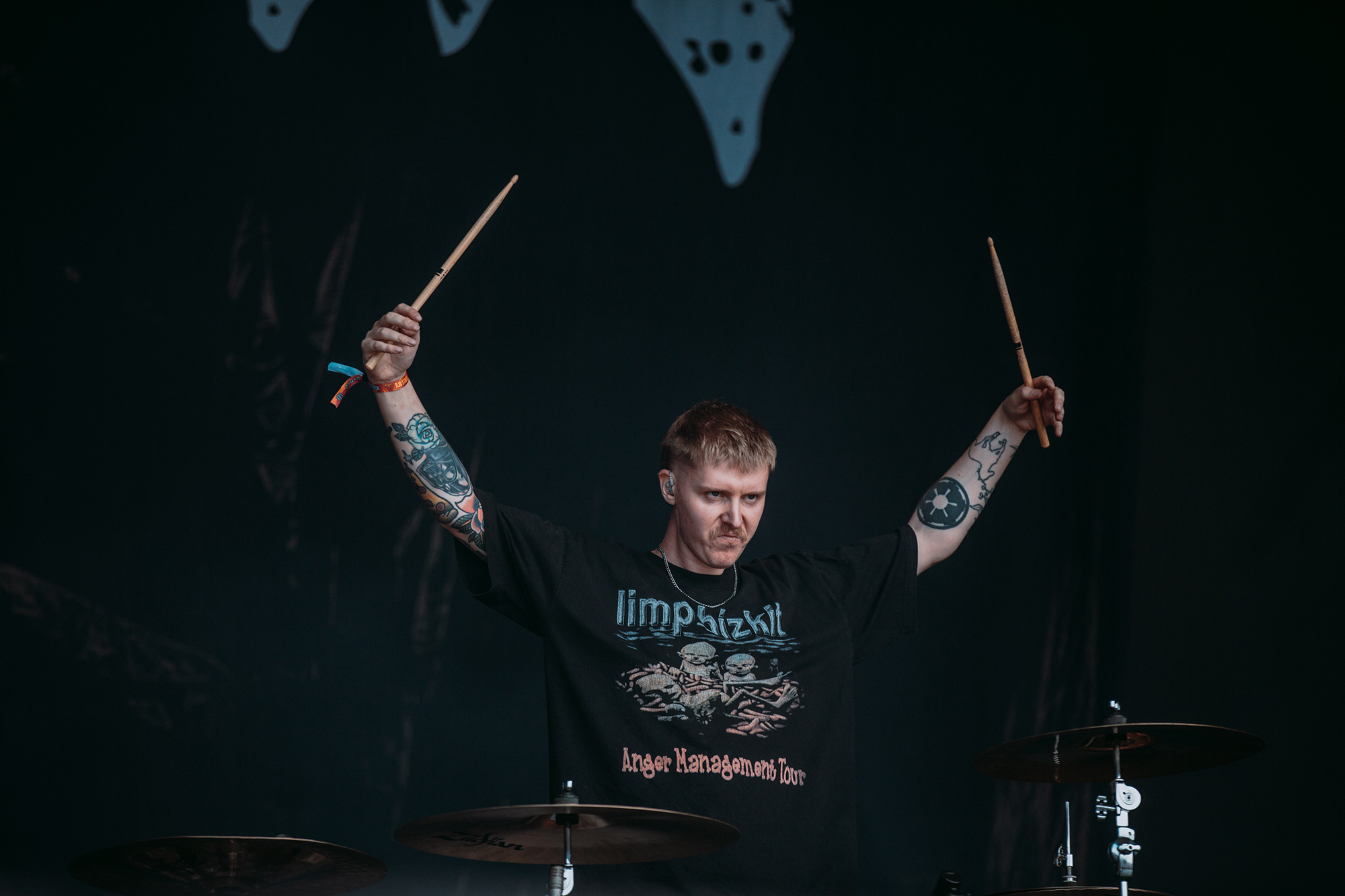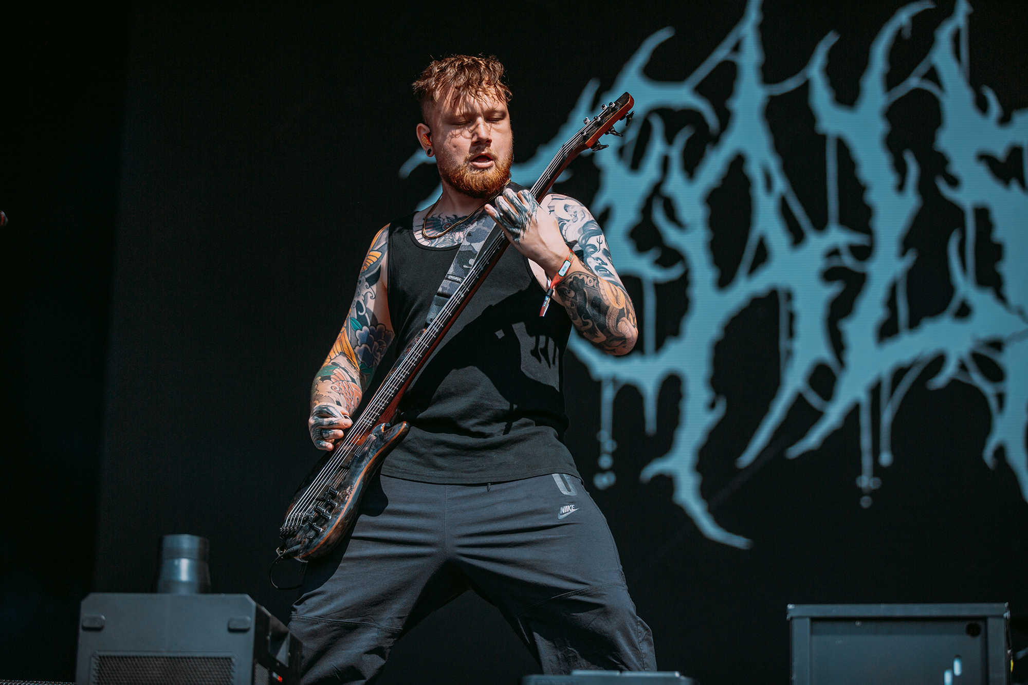 Switzerland’s deathcore champs PALCEFACE SWISS‘ stock has fast-risen in the past few years, with 2022’s Fear & Dagger and this year’s Cursed catapulting them into the same conversation as LORNA SHORE and next year’s headliners SLAUGHTER TO PREVAIL. And today’s set sees them earn their stripes and then some. As the angst-ridden opening duo of Hatred and …and with hope you’ll be damned creating dust clouds from circle pits and crowd surfers, PALEFACE SWISS come face-to-face with the main stage’s biggest crowd of the day. It’s their first UK festival show, and frontman Marc ‘Zelli’ Zellweger isn’t letting anyone off lightly. He might joke about the rare sighting of the sun leaving him looking like Mr Krabs once their finished, but he’s ribbing no one when he channels pre-That’s The Spirit-era Oli Sykes in baiting the crowd to go faster and harder with every song. The likes of Nail To The Tooth and Please End Me launch you headfirst into the dirt, whilst the call-and-response choruses of I Am A Cursed One and Best Before: Death feel like arena-ready anthems. As Love Burns sees them level the Ronnie James Dio Stage once more, one thing is clear: if PALEFACE SWISS aren’t headlining the Ronnie James Dio Stage in the next five years, something’s gone very wrong.