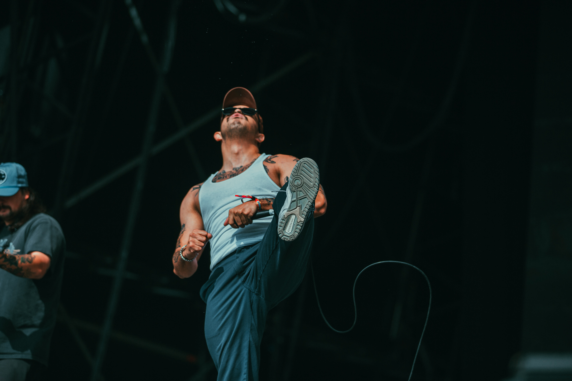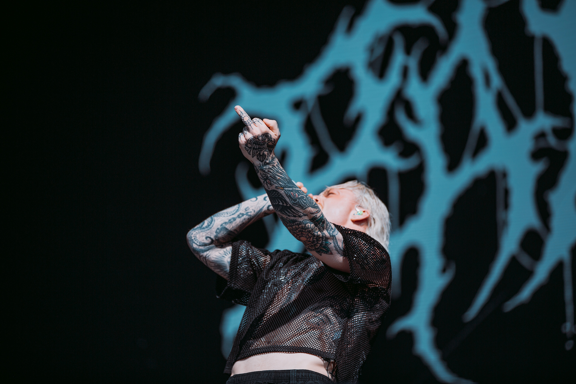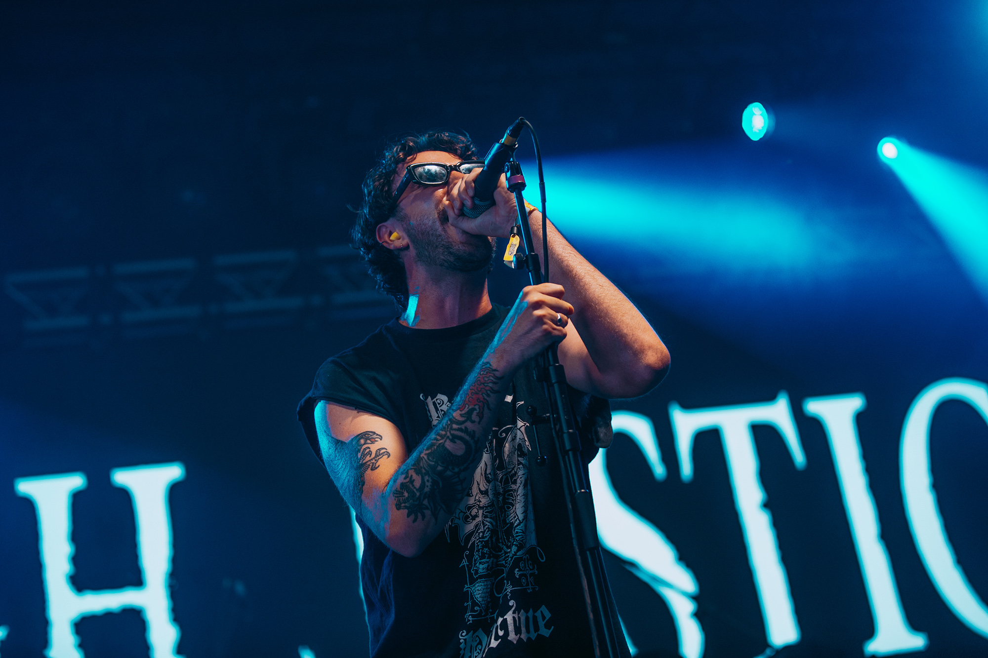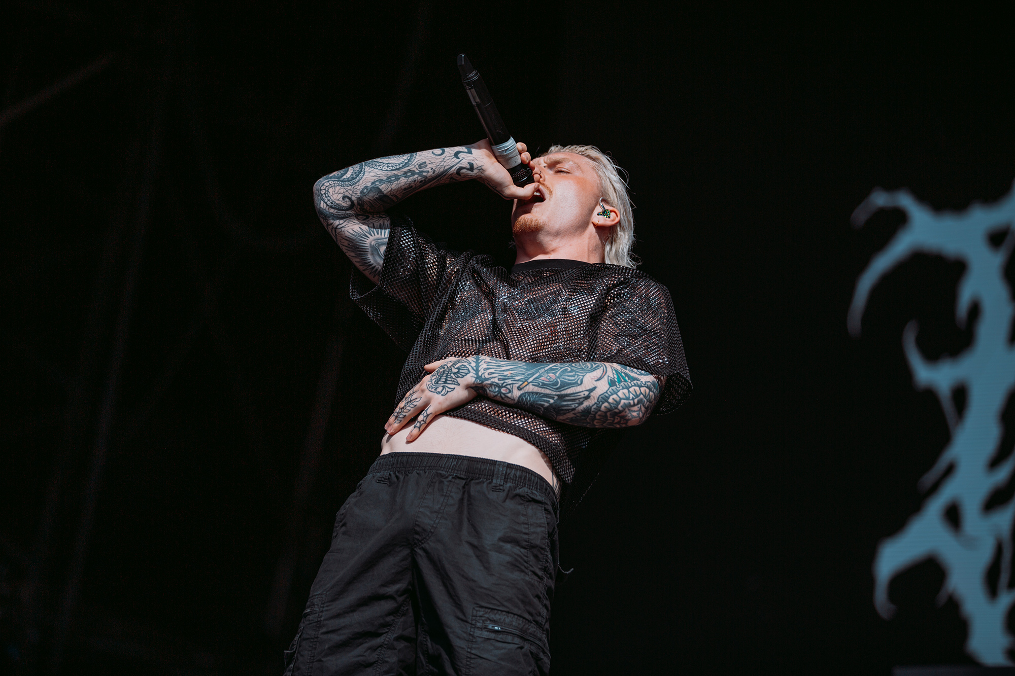 Switzerland’s deathcore champs PALCEFACE SWISS‘ stock has fast-risen in the past few years, with 2022’s Fear & Dagger and this year’s Cursed catapulting them into the same conversation as LORNA SHORE and next year’s headliners SLAUGHTER TO PREVAIL. And today’s set sees them earn their stripes and then some. As the angst-ridden opening duo of Hatred and …and with hope you’ll be damned creating dust clouds from circle pits and crowd surfers, PALEFACE SWISS come face-to-face with the main stage’s biggest crowd of the day. It’s their first UK festival show, and frontman Marc ‘Zelli’ Zellweger isn’t letting anyone off lightly. He might joke about the rare sighting of the sun leaving him looking like Mr Krabs once their finished, but he’s ribbing no one when he channels pre-That’s The Spirit-era Oli Sykes in baiting the crowd to go faster and harder with every song. The likes of Nail To The Tooth and Please End Me launch you headfirst into the dirt, whilst the call-and-response choruses of I Am A Cursed One and Best Before: Death feel like arena-ready anthems. As Love Burns sees them level the Ronnie James Dio Stage once more, one thing is clear: if PALEFACE SWISS aren’t headlining the Ronnie James Dio Stage in the next five years, something’s gone very wrong.