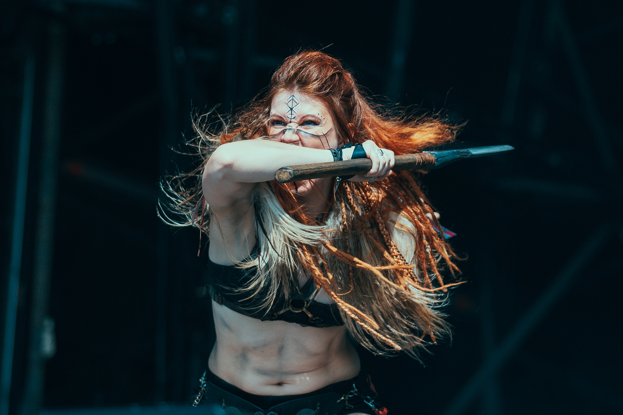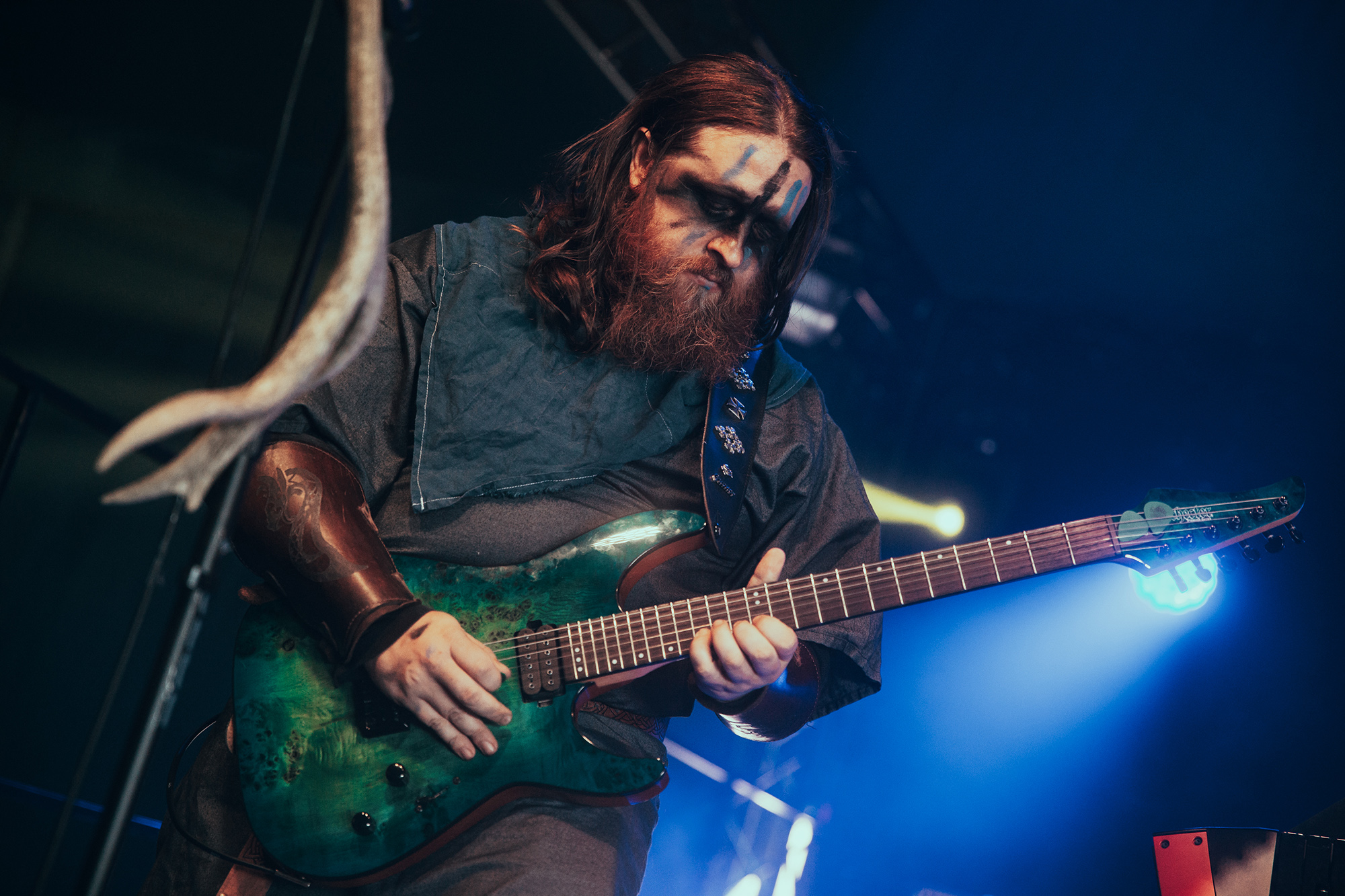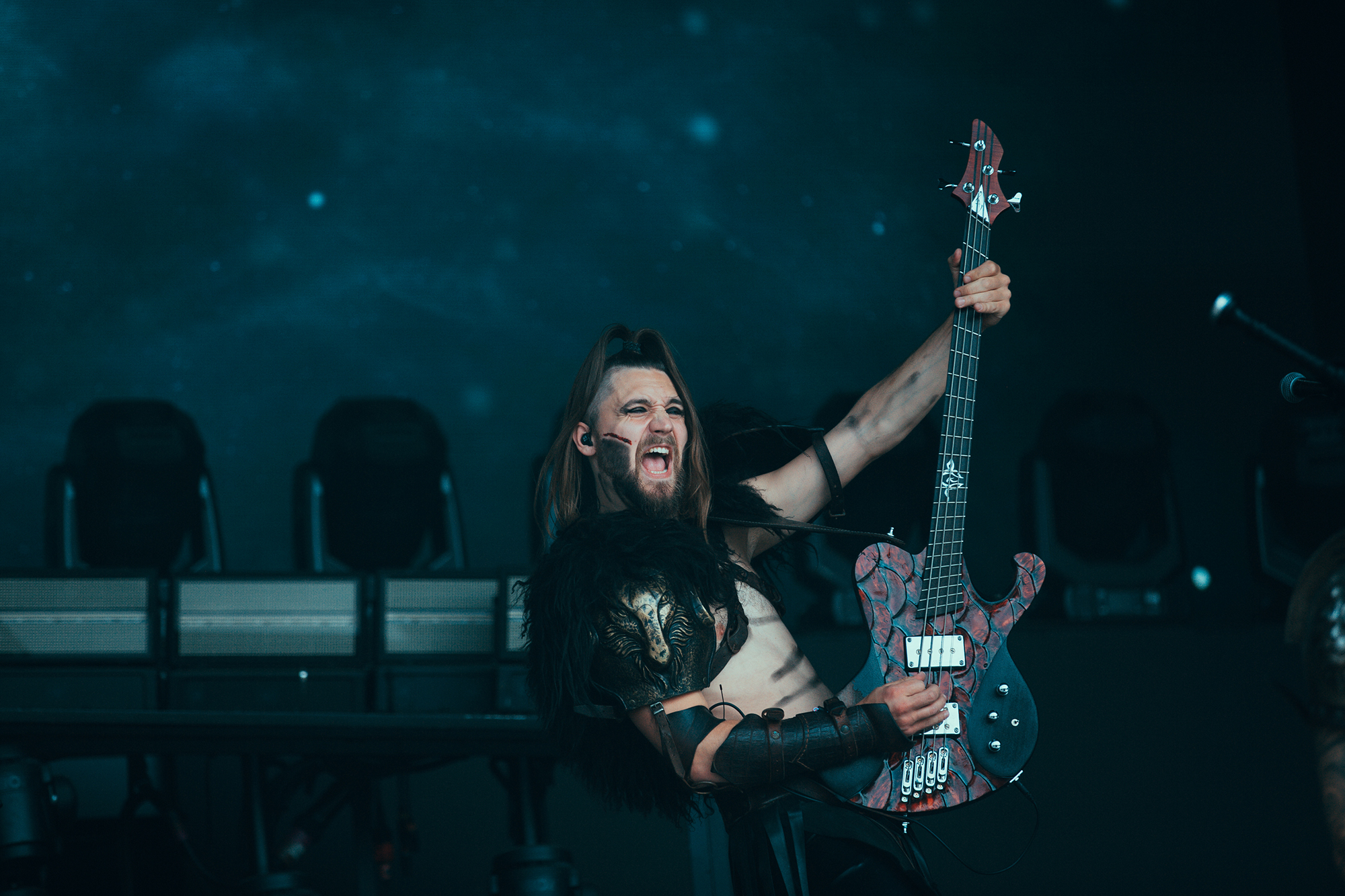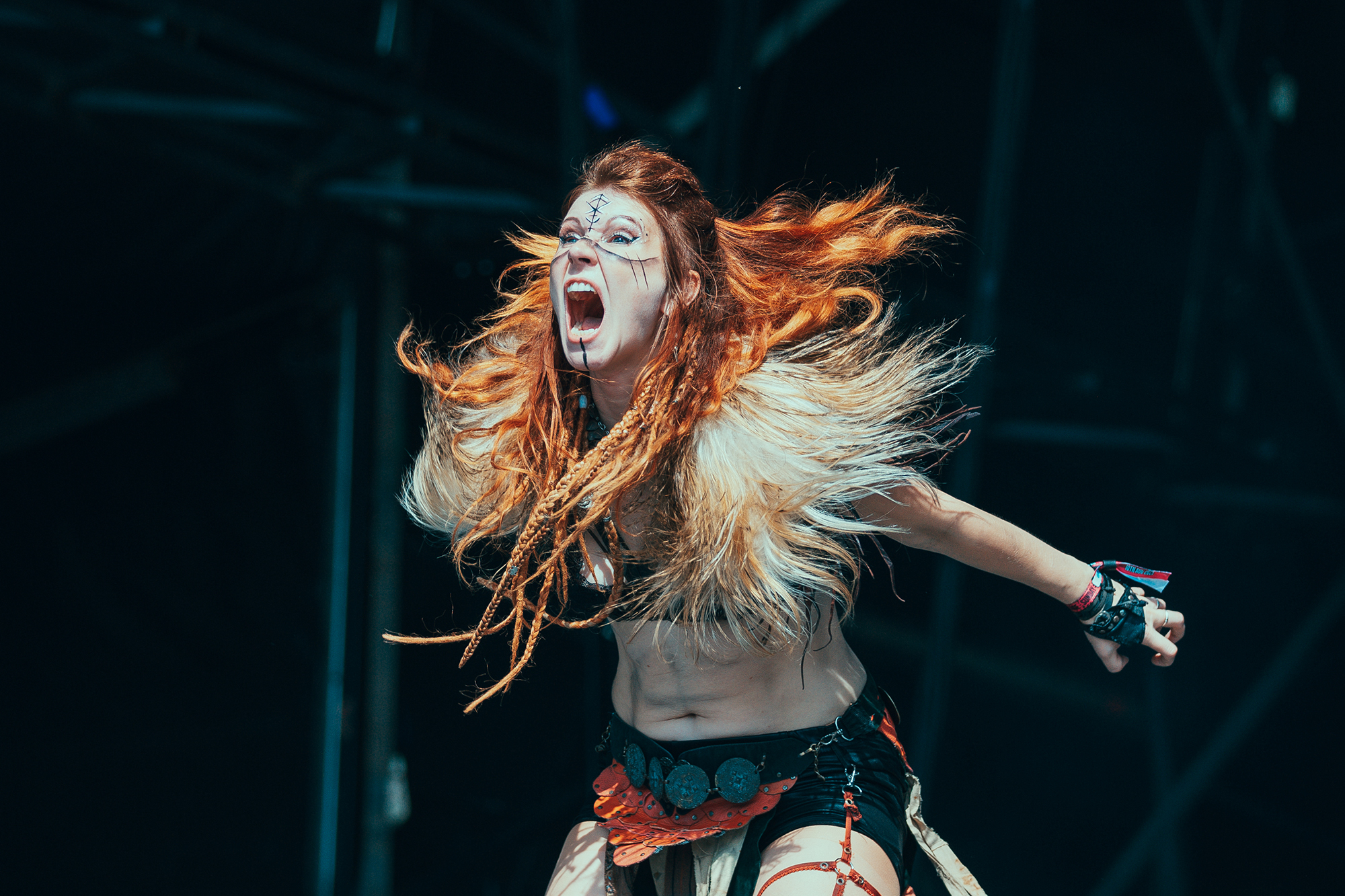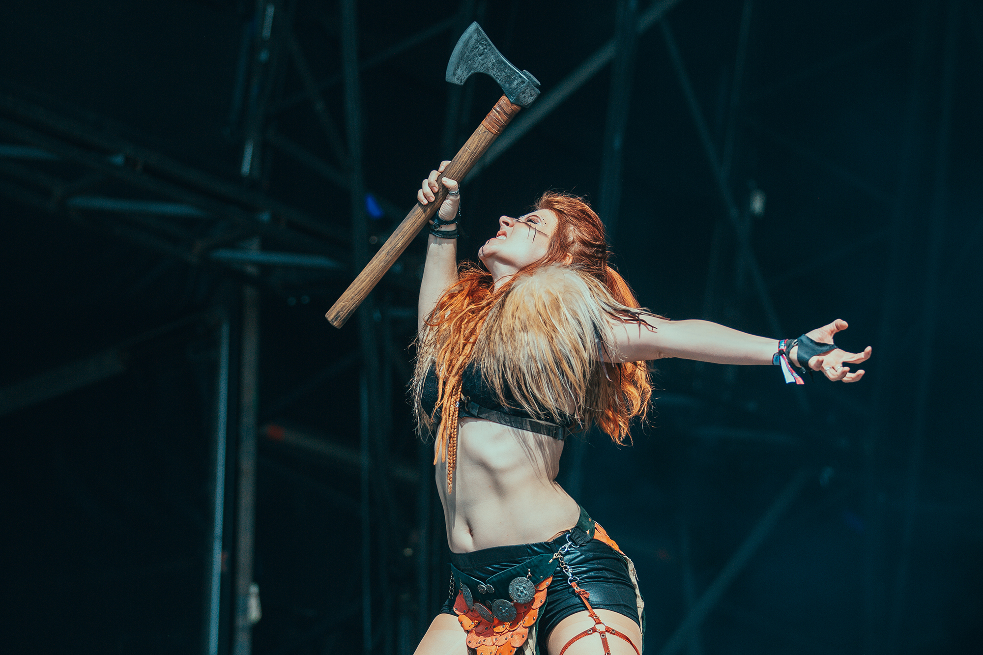 Over on the New Blood Stage next, there’s a rare sighting of a folk metal band. The sub-genre is underrepresented this year, but our hopes are raised when roadies stick antlers to the mic stands, and then fully met when THUNARWOLF walk out. Their set is twenty-minutes of galloping rhythms and manly jigging, and they’re loads of fun. There are four guys in the pit dressed as bananas, a face-painted barbarian playing a mandolin, and it’s very easy to get caught up in all the “woah-oh-ohs” in the choruses. The Friday line up is stacked, but THUNARWOLF are one of the quiet triumphs of the early afternoon.