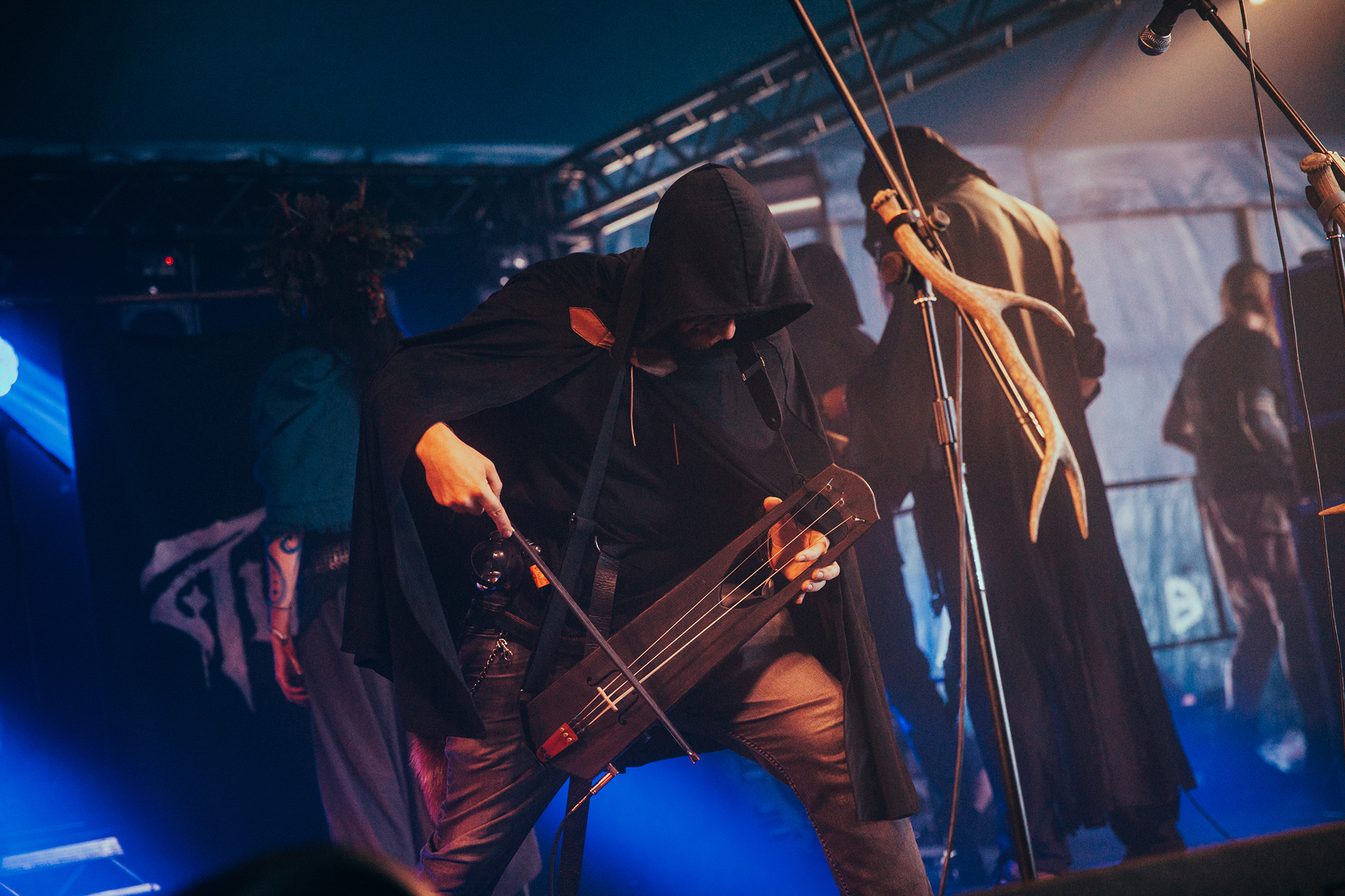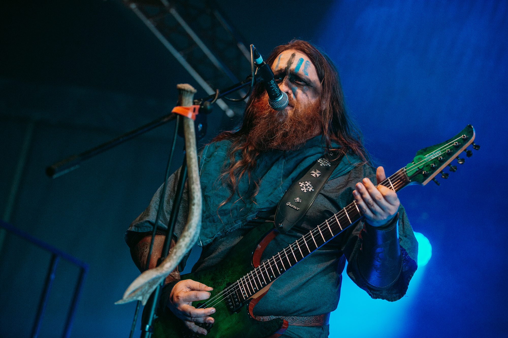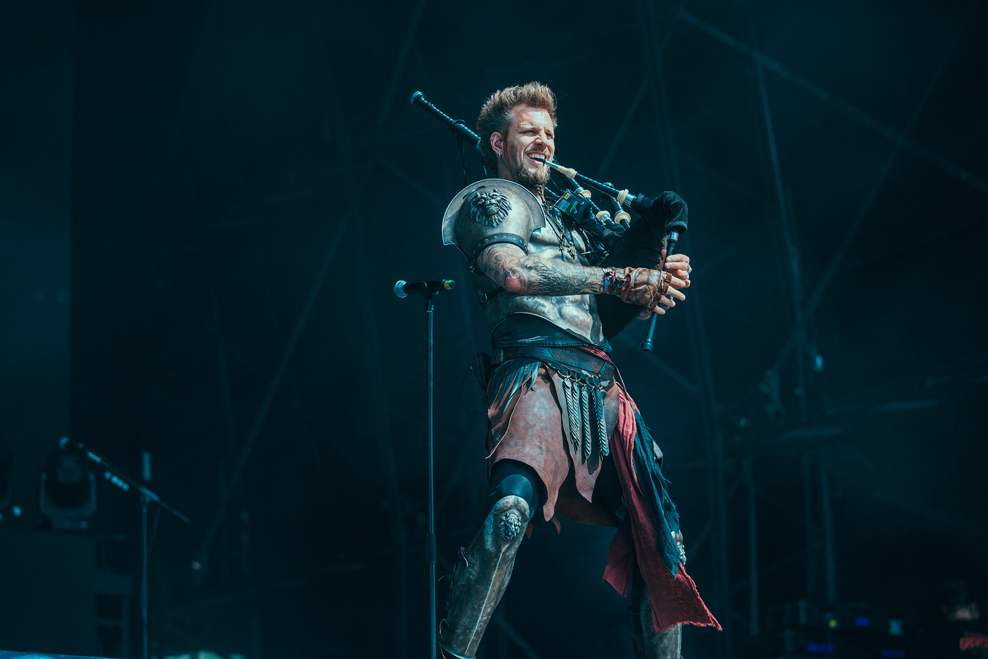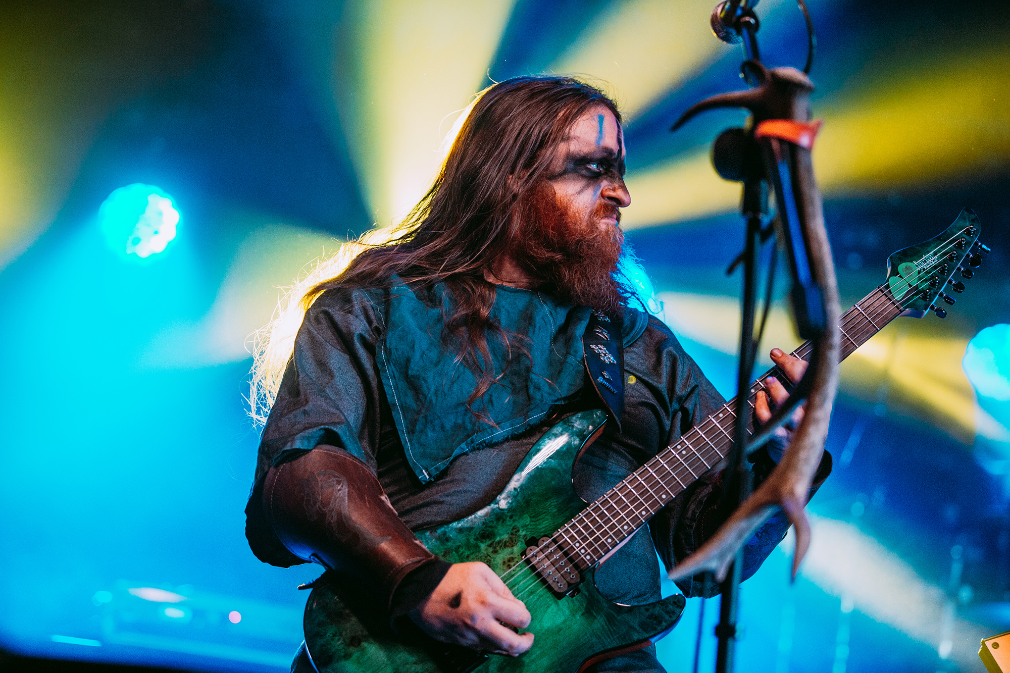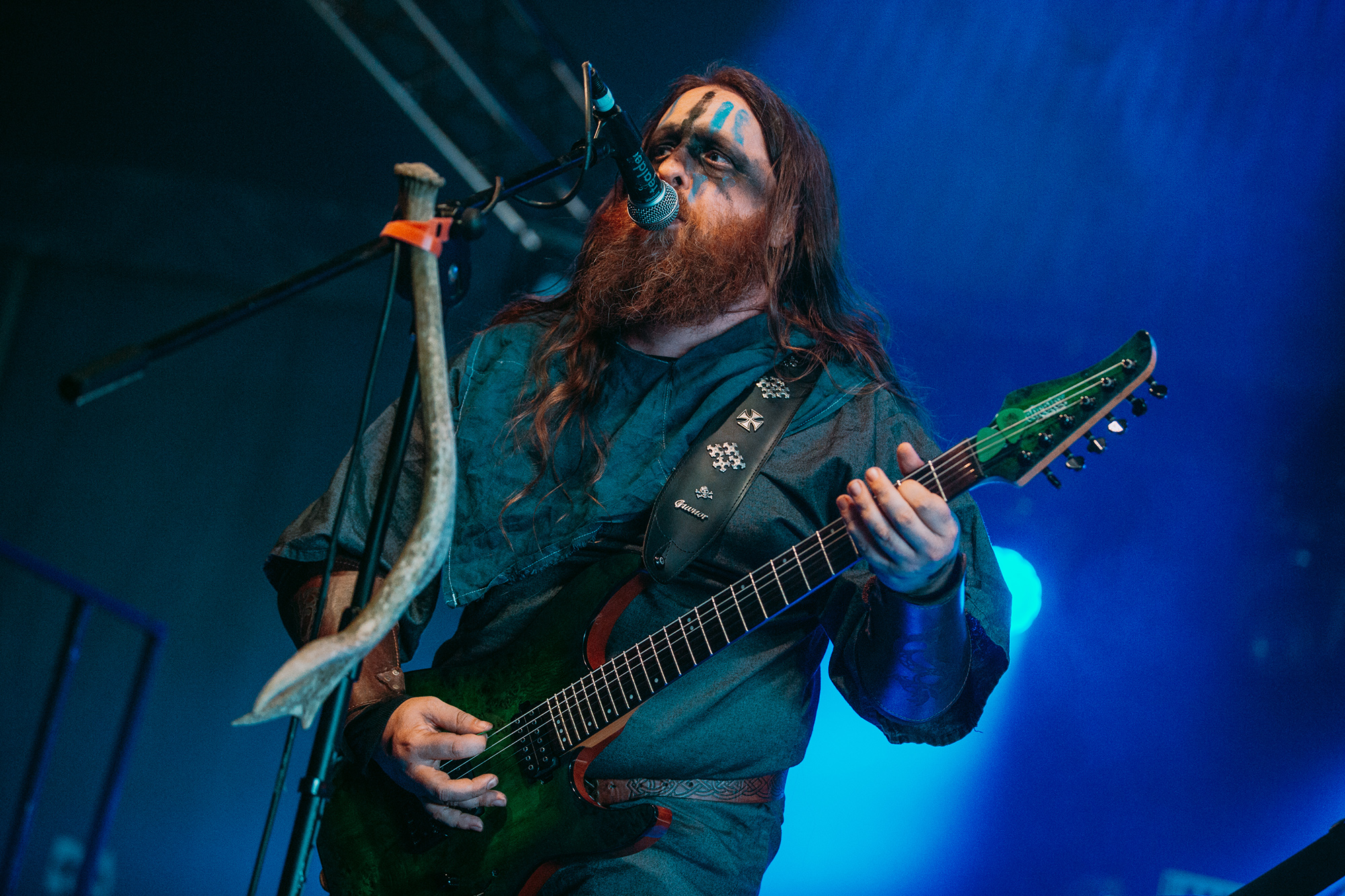 Over on the New Blood Stage next, there’s a rare sighting of a folk metal band. The sub-genre is underrepresented this year, but our hopes are raised when roadies stick antlers to the mic stands, and then fully met when THUNARWOLF walk out. Their set is twenty-minutes of galloping rhythms and manly jigging, and they’re loads of fun. There are four guys in the pit dressed as bananas, a face-painted barbarian playing a mandolin, and it’s very easy to get caught up in all the “woah-oh-ohs” in the choruses. The Friday line up is stacked, but THUNARWOLF are one of the quiet triumphs of the early afternoon.