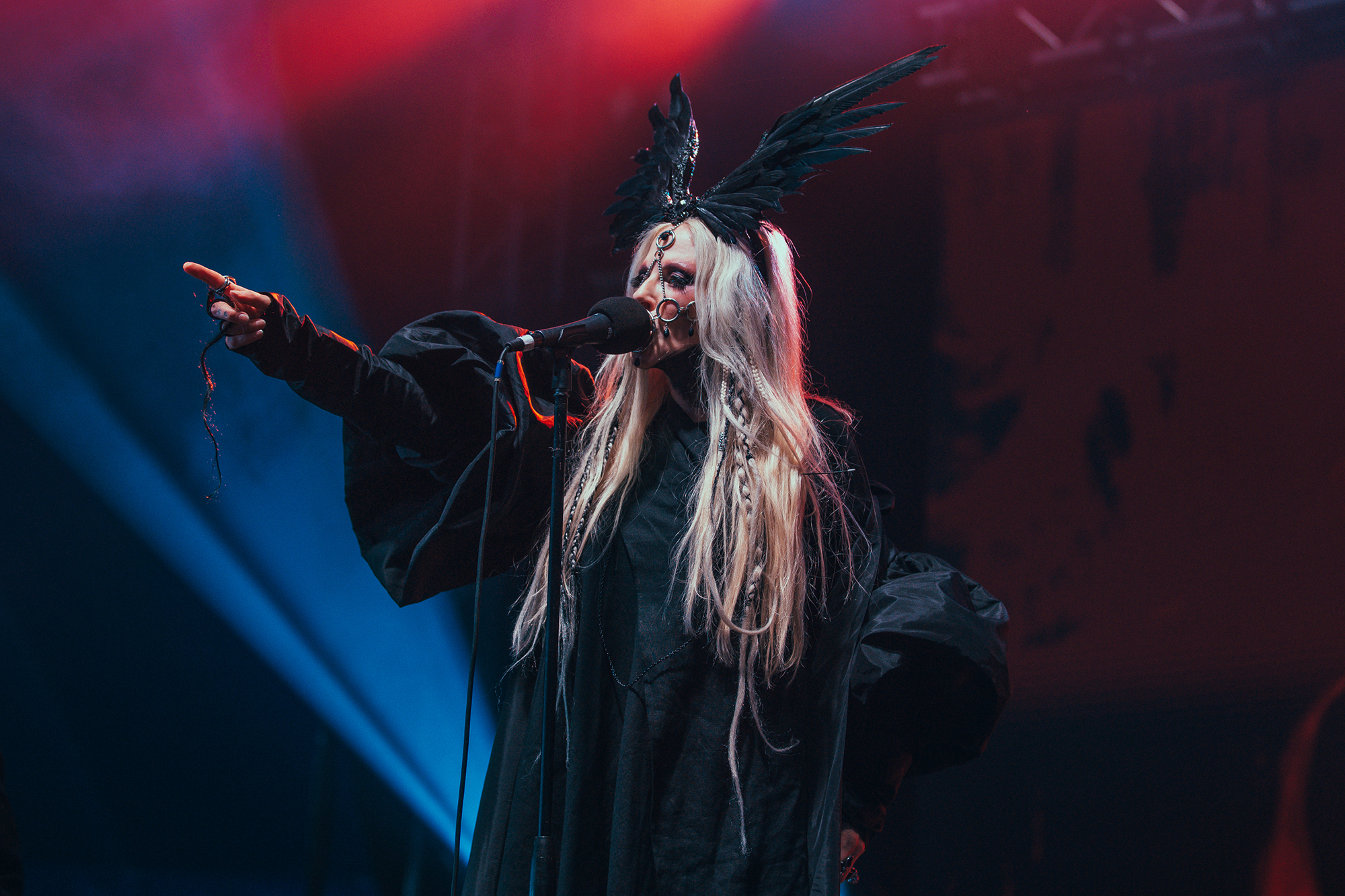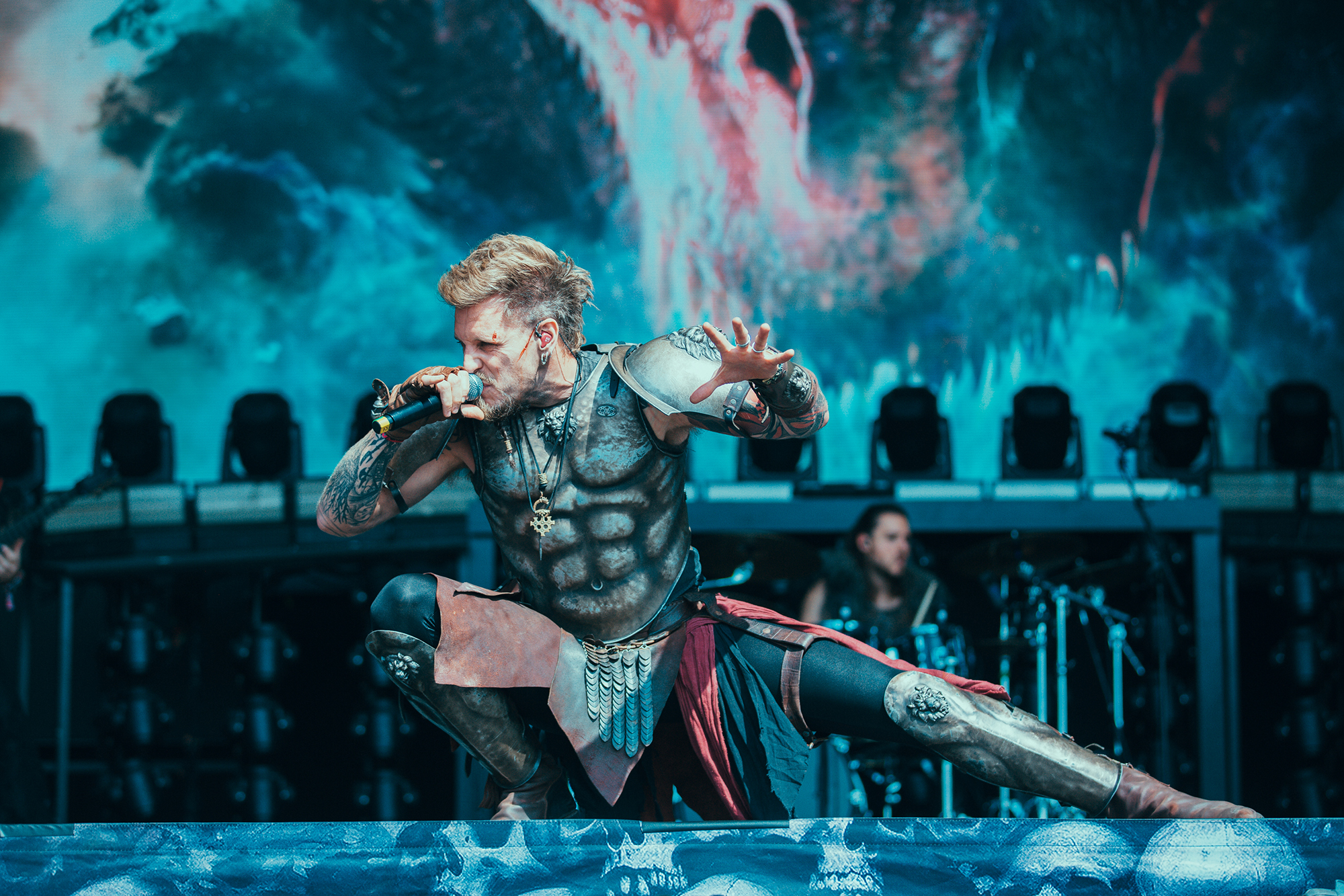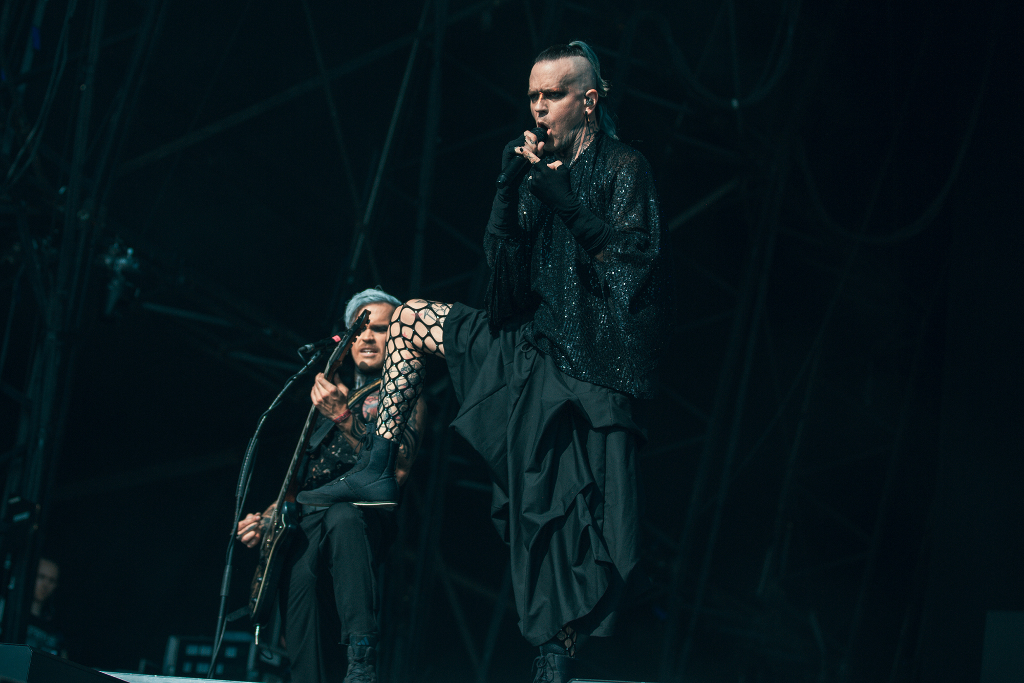 There’s something of a reality check next as LORD OF THE LOST take the main stage. They’re best known in these parts for their Eurovision appearance, but they had an extensive career prior to that and at their heart, they’ve always been a metal band. Blood And Glitter closes the show, but for the preceding hour, they go into darker territory than you might expect. There’s plenty of pomp and melodrama, but there’s also a plethora of heavy guitar riffs, pounding drums, and gnarly vocals. Drag Me To Hell in particular, is one massive roar of industrial anguish that dashes hopes for an hour of high camp partying. That being said, while LORD OF THE LOST clearly have their fans, they haven’t caught the attention of as many people necessary to justify their placement on the bill. There’s a decent number of folks dancing and singing along to their Gothic anthems, but they’d have been better suited to going on after FEUERSCHWANZ and swapping places with THE BLACK DAHLIA MURDER. It is a decent show, but we’re rapidly approaching the end of the weekend, and they didn’t have enough of an impact for this late in the day.