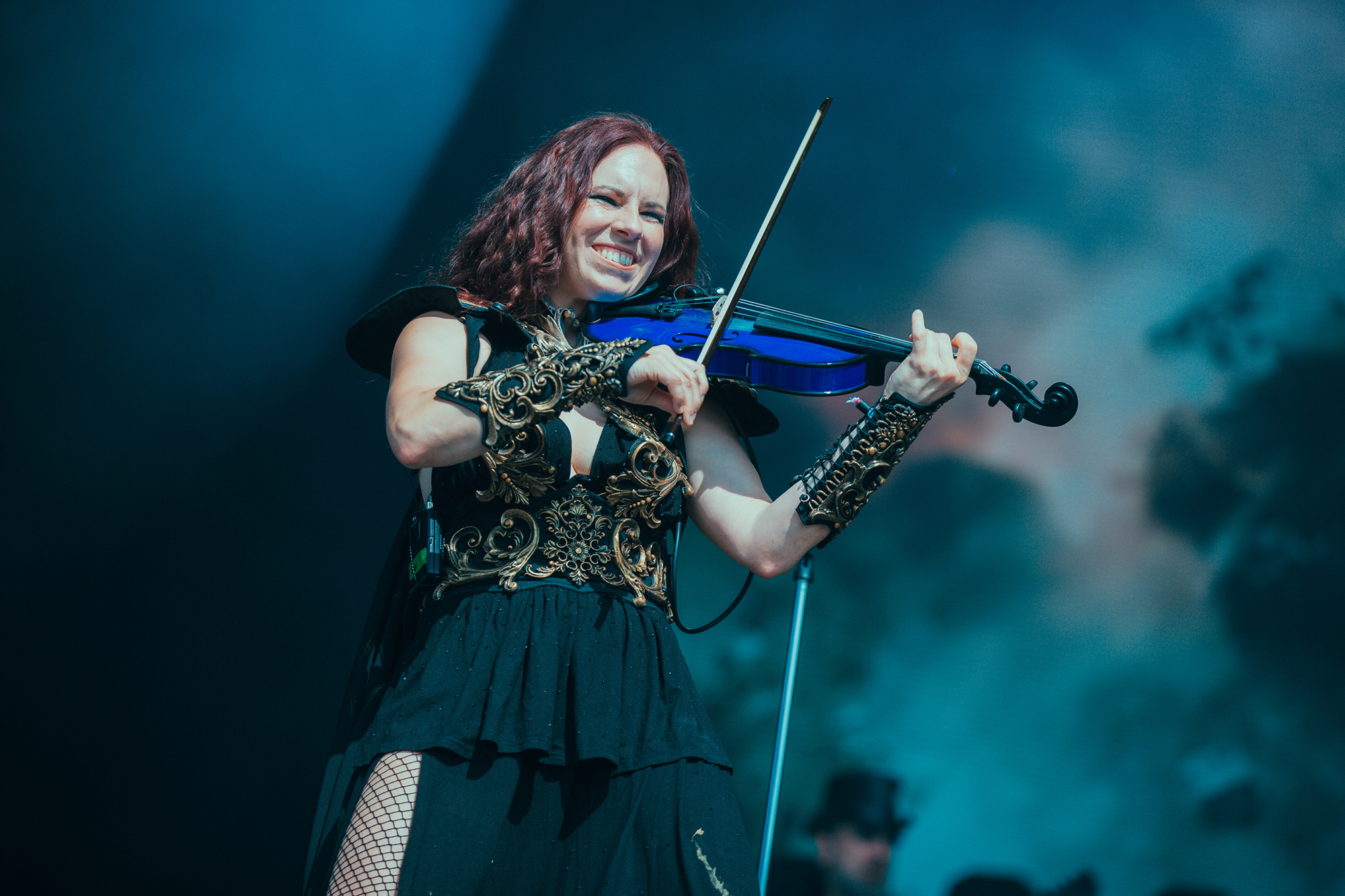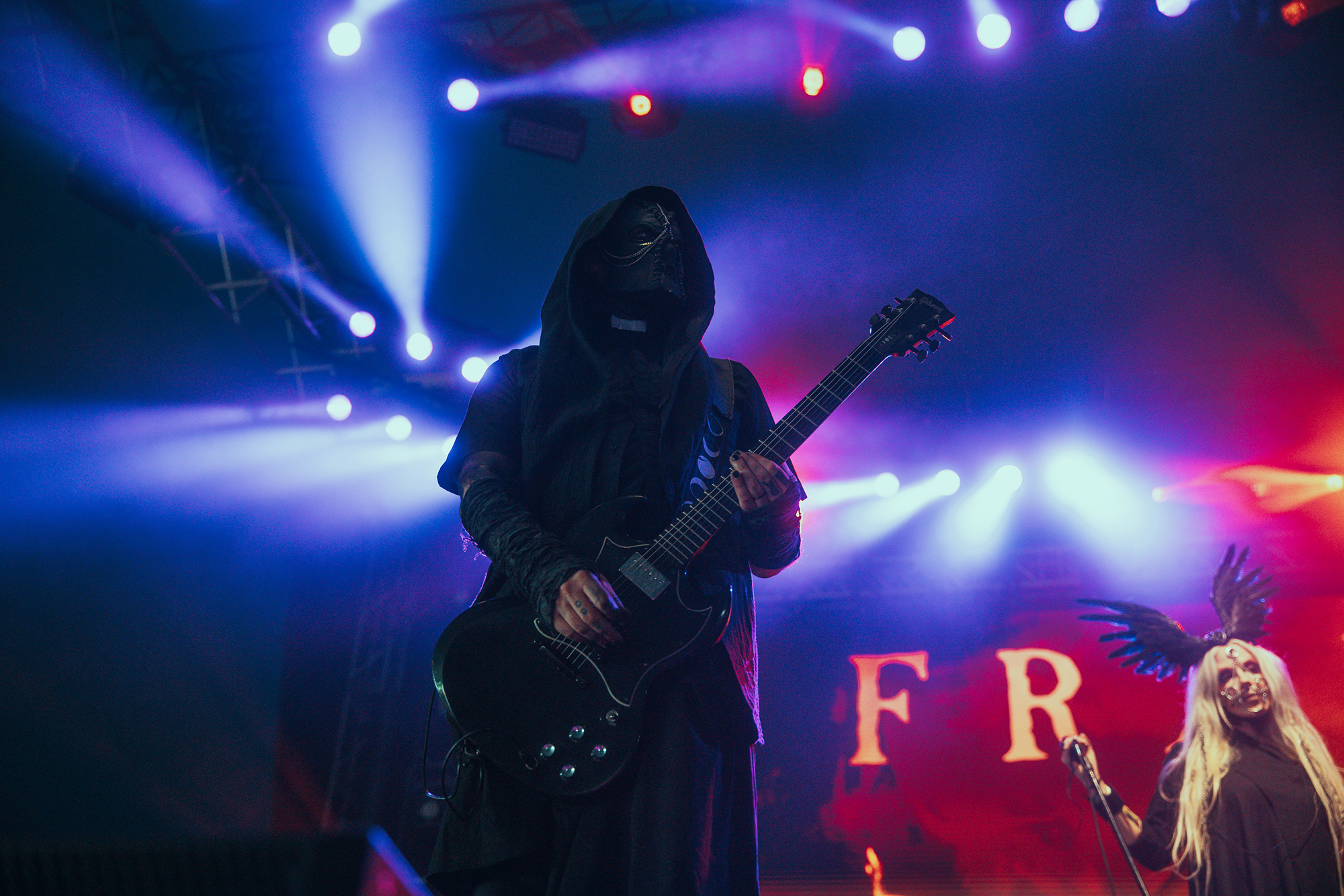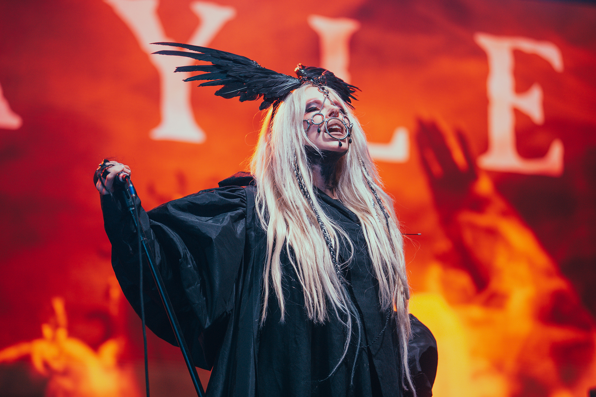 There’s something of a reality check next as LORD OF THE LOST take the main stage. They’re best known in these parts for their Eurovision appearance, but they had an extensive career prior to that and at their heart, they’ve always been a metal band. Blood And Glitter closes the show, but for the preceding hour, they go into darker territory than you might expect. There’s plenty of pomp and melodrama, but there’s also a plethora of heavy guitar riffs, pounding drums, and gnarly vocals. Drag Me To Hell in particular, is one massive roar of industrial anguish that dashes hopes for an hour of high camp partying. That being said, while LORD OF THE LOST clearly have their fans, they haven’t caught the attention of as many people necessary to justify their placement on the bill. There’s a decent number of folks dancing and singing along to their Gothic anthems, but they’d have been better suited to going on after FEUERSCHWANZ and swapping places with THE BLACK DAHLIA MURDER. It is a decent show, but we’re rapidly approaching the end of the weekend, and they didn’t have enough of an impact for this late in the day.