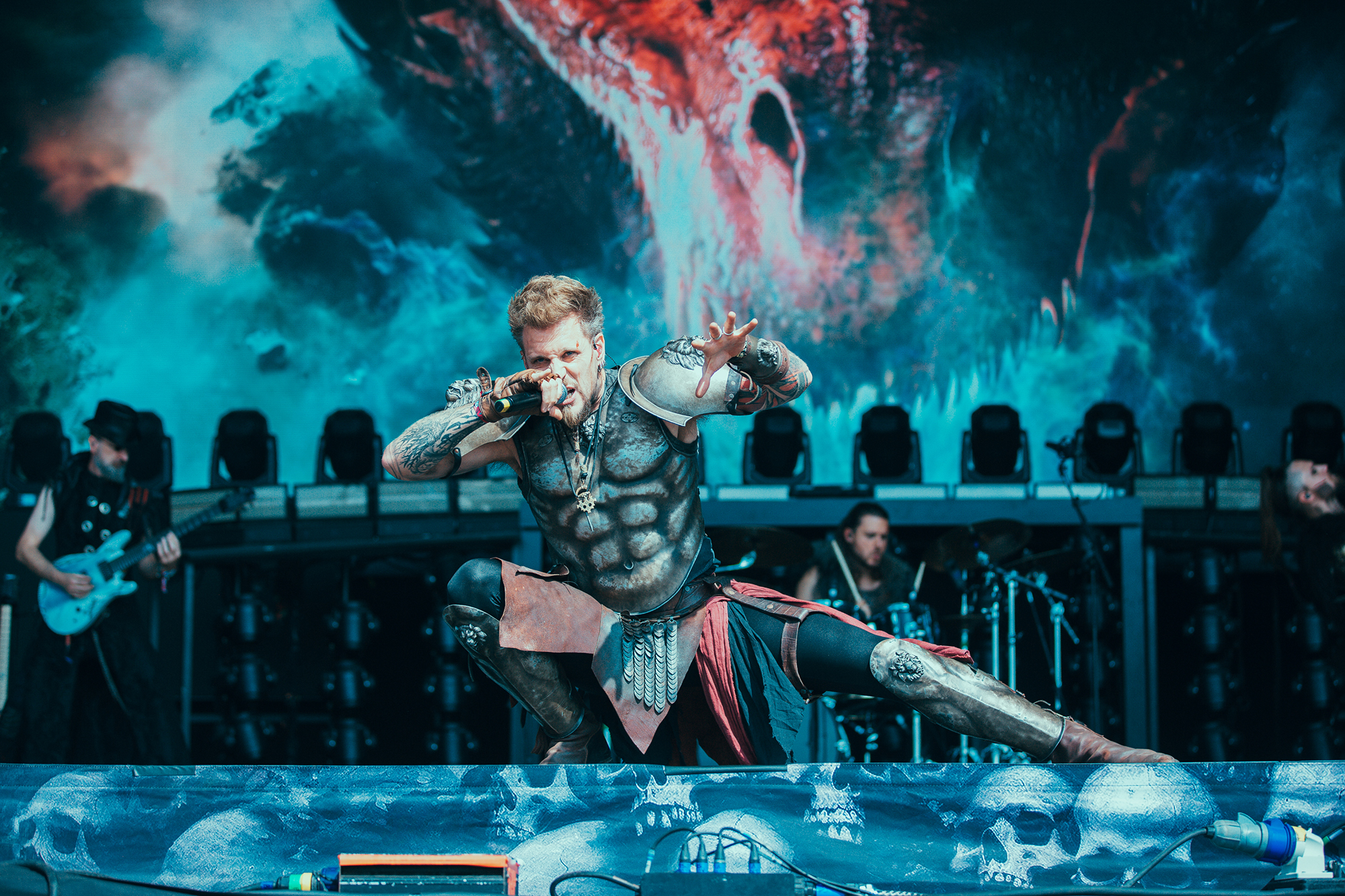 We’ve already mentioned that there’s a shortage of folk metal this year, but Bloodstock make up for it by giving FEUERSCHWANZ a lengthy afternoon slot. The Germans have never played the UK before, but they make a powerfully silly first impression. Refusing to take themselves seriously, they turn Catton Hall into a big, drunken party and reinvigorate the exhausted crowd. It’s an hour of biceps, bagpipes, and barbarian backing dancers from a band who looked at KORPIKLAANI and thought they were too subdued. Knightclub is the surprise hit of the festival, and inherently danceable cuts like Berserker Mode keep the good times rolling. The purists might roll their eyes, but this was the metal equivalent of the frat boy toga party from National Lampoon’s Animal House and it was a freaking blast.