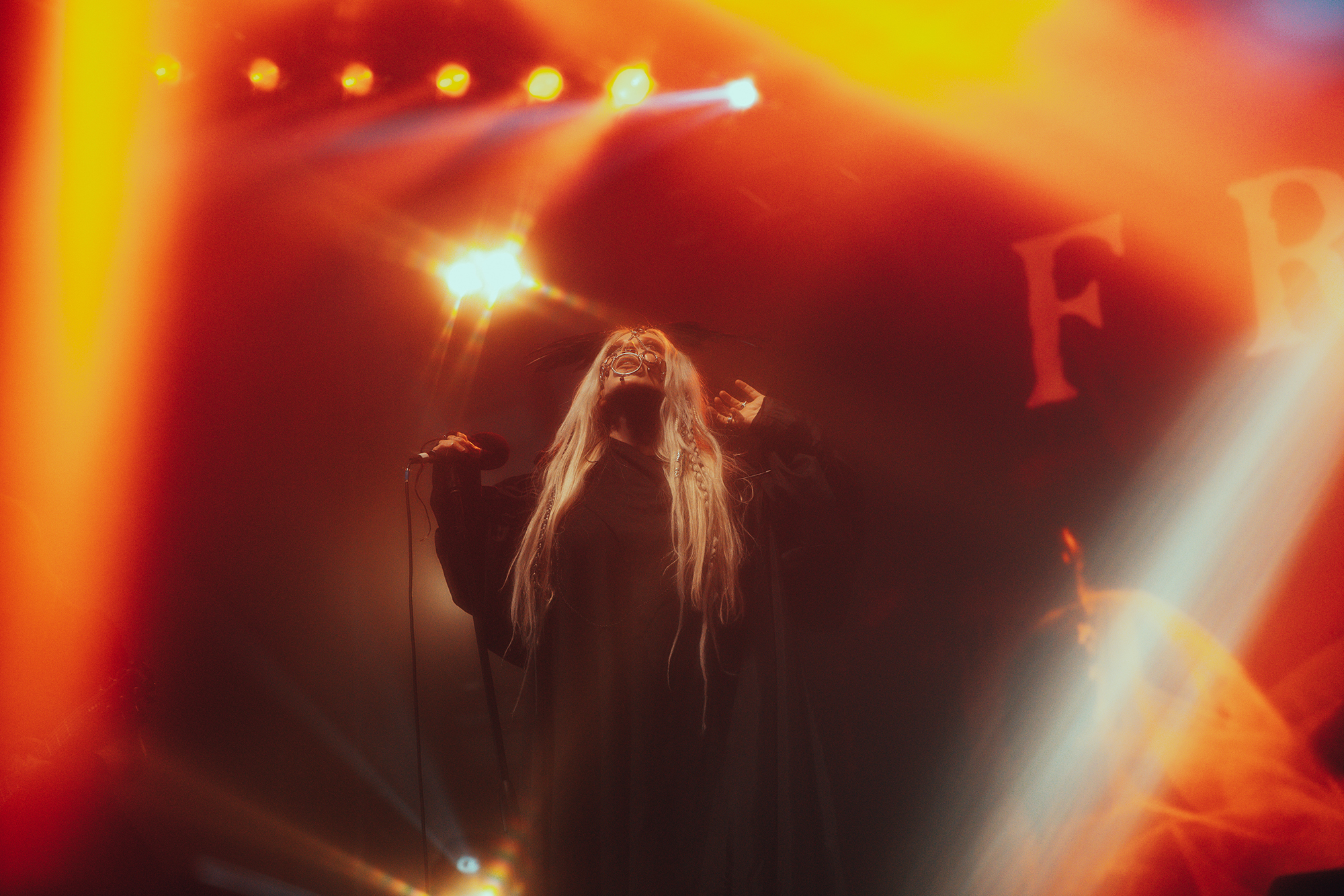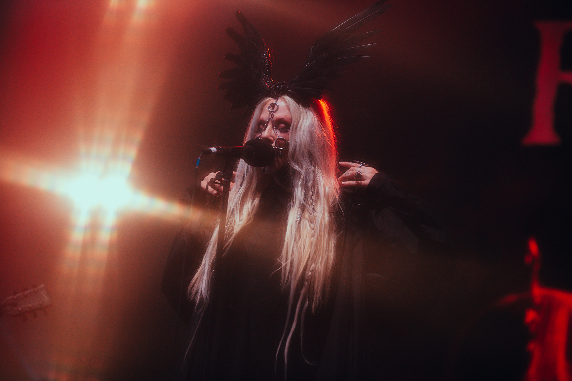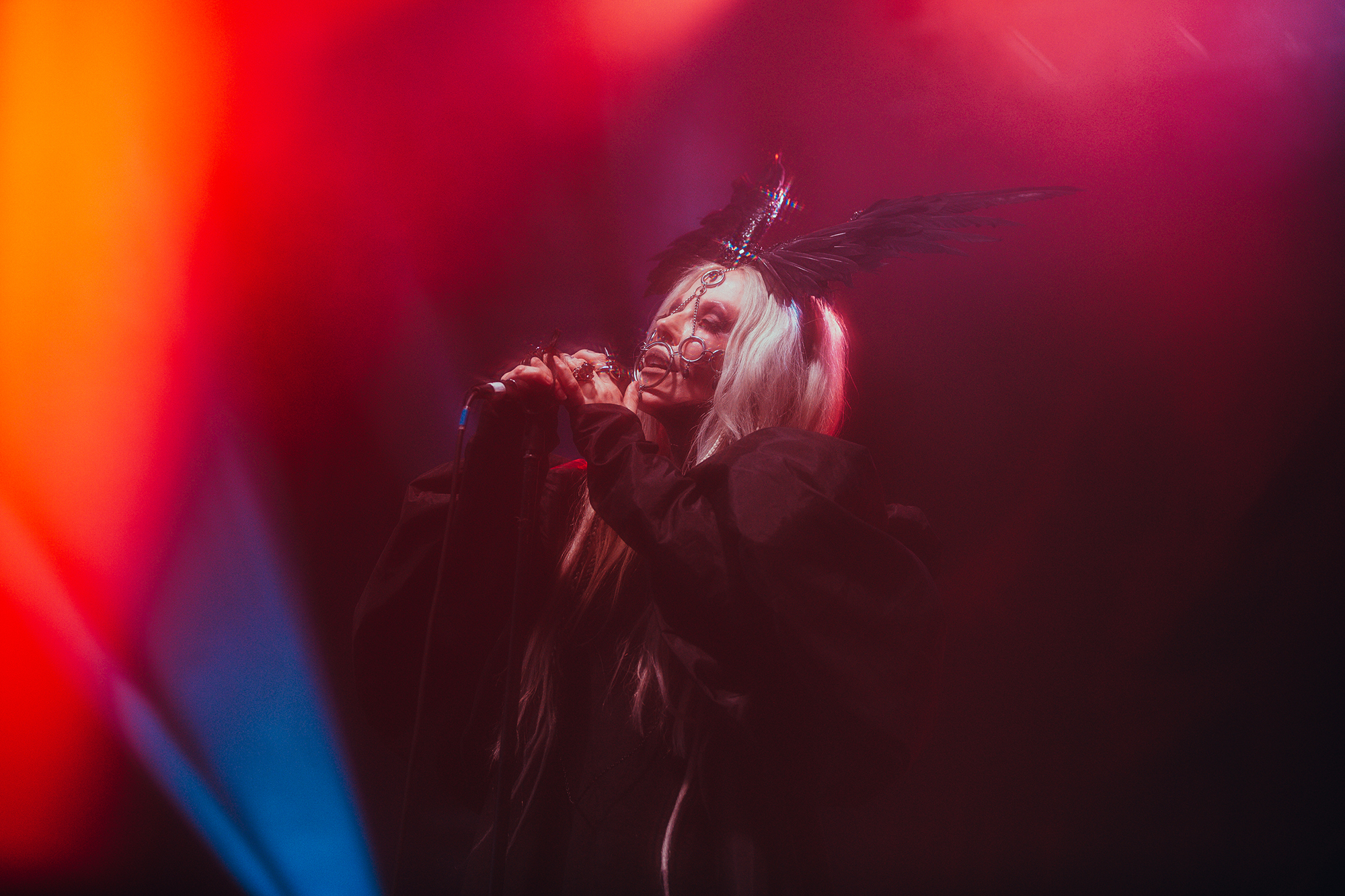 There’s been some drama around Aaron Stainthorpe of late, the legendary vocalist being notably absent from a tour with his ‘main band’ MY DYING BRIDE and rumours about his future swarming him like bees attacking a hornet. But as he takes the stage tonight, dressed entirely in white and half his face coated in make-up, he’s clearly in a good mood. HIGH PARASITE might deal in Gothic metal, but he’s laidback and full of self-deprecating humour. Not that the music itself reflects this. HIGH PARASITE are the soundtrack to driving modified sports cars around a neon-lit Tokyo shortly after getting your heart broken, and there are decades of anguish mixed into these melodies. They are energetic, epic, and make us all pause to check we haven’t turned into anime characters. They’ve got the chops to evolve into a full-time act and their singer has a lot of life left in him.