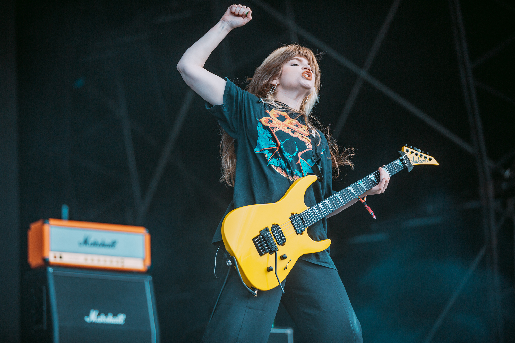 Should three grown men, cosplaying in garden gnome hats and singing about being eaten alive by Ogres, be this darn good? If riffs, riffs, and even more riffs be something you wish, you might as well flop on the deck like a fish, because GNOME delivers in spades. Despite those first few pints of the festival being downed by punters, the trio of Rutger Verbist, Egon Loosveldt, and Geoffrey Verhulst’s blend of stoner rock and prog metal pops off in The Sophie Lancaster Stage. When the band announces it’s their biggest show ever, with smiles on their faces, the roars nearly drown them out. And speaking of drowning, Verbist’s vocals sometimes get swallowed in the mix, which suggests the sound desk is still waking up after a year’s slumber. Despite this, the likes of Old Souls, Rotten Tongue, and The Ogre still sound absolutely massive in the tent and serve as the perfect warm-up.