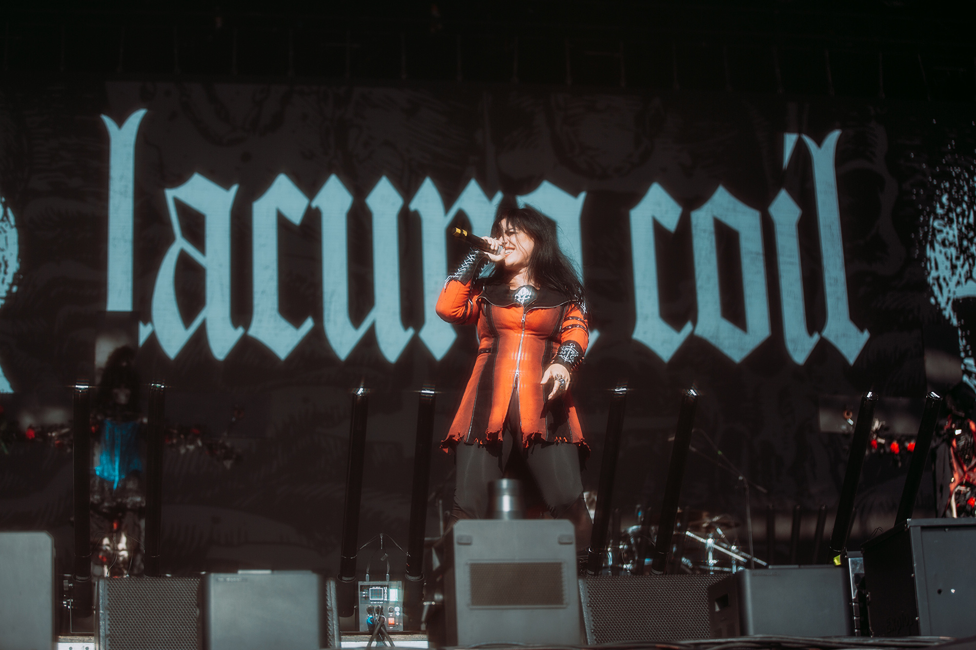 It’s testament to the growth of Bloodstock Festival that the three bands topping its main stage bill tonight have all headlined previously. Having headlined in 2007, gothic metal’s flagbearers LACUNA COIL are no strangers to Catton Park, and know exactly how to warm up the crowd for EMPEROR and TRIVIUM. Whilst a gust of wind derails their colourful streamers, and carries co-vocalists Andrea Ferro and Cristina Scabbia’s vocals off into the sunset at times, there’s no stopping the Italians from storming the stage. Whilst stone-cold classics like Heaven’s A Lie XX and Our Truth arrive to rapturous applause, I Wish You Were Dead and Oxygen from this year’s Sleepless Empire sound like they’ve been setlist staples for years. Their infamous cover of DECPECHE MODE’s Enjoy The Silence never gets old, and nor it seems, does LACUNA COIL.