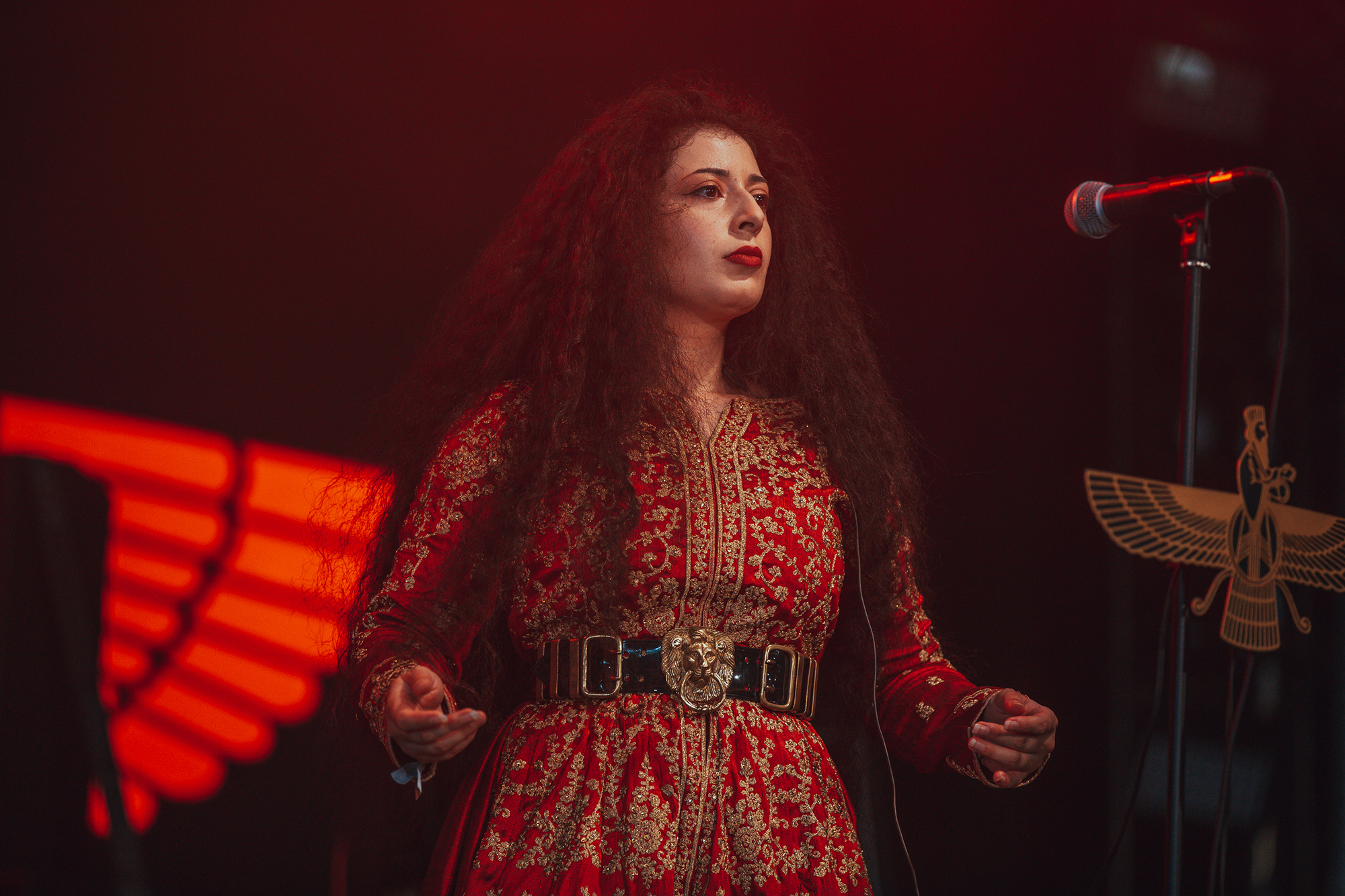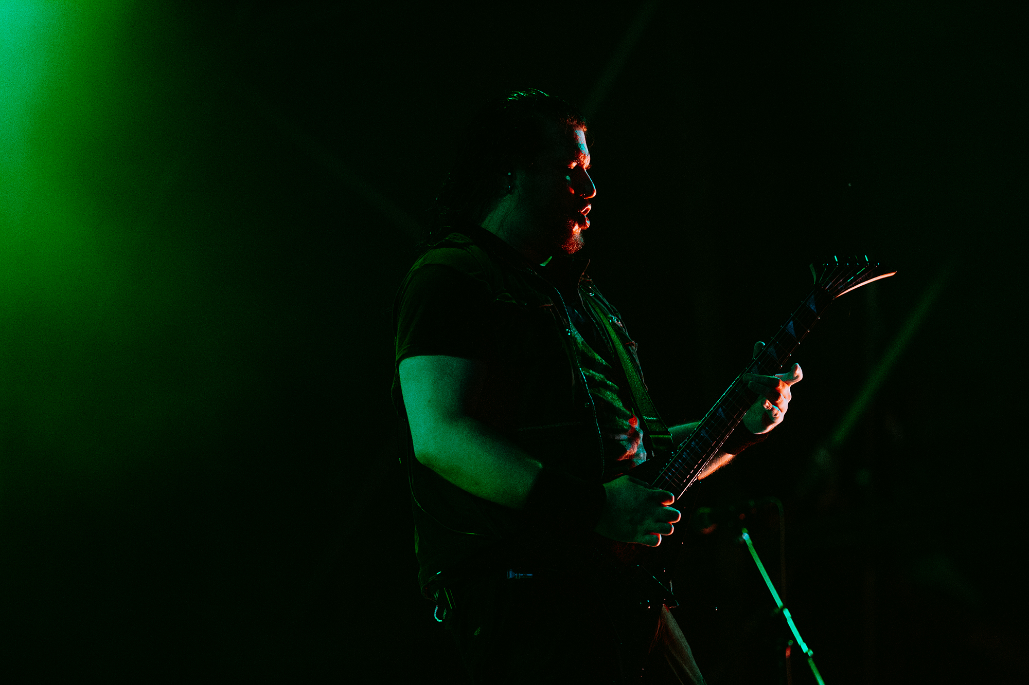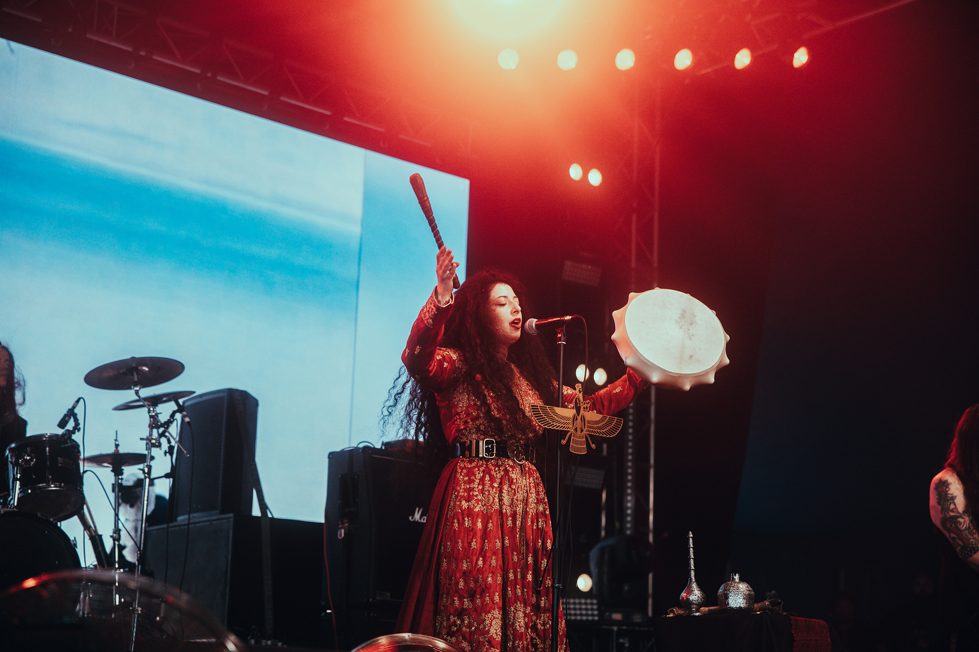 Stepping up as last-minute replacements for SPIRIT ADRIFT, who pulled out due to a serious medical situation in frontman Nate Garrett’s family, rising stars LOWEN feel like the perfect Sunday afternoon treat to indulge in. Last year’s Do Not Go to War With the Demons of Mazandaran, alongside their willingness to hop on every tour from here to Timbuktu, has made them an indomitable live force. Their otherworldly blend of death, doom, and prog metal with traditional Middle Eastern instruments and vocalist Nina Saeidi’s powerhouse pipes command a level of attention few live arenas are suited to. Like TOOL or SLEEP, LOWEN need you locked in and transfixed. Whilst there’s a whole heap of people here having the time of their lives, worshipping at their mythic altar, there’s plenty of people either sitting down disengaged, chatting to their mates at the bar, or leaving entirely for something else, with their faces failing to mask confusion. It’s a shame because they sound blooming brilliant on the Sophie Lancaster Stage today.
