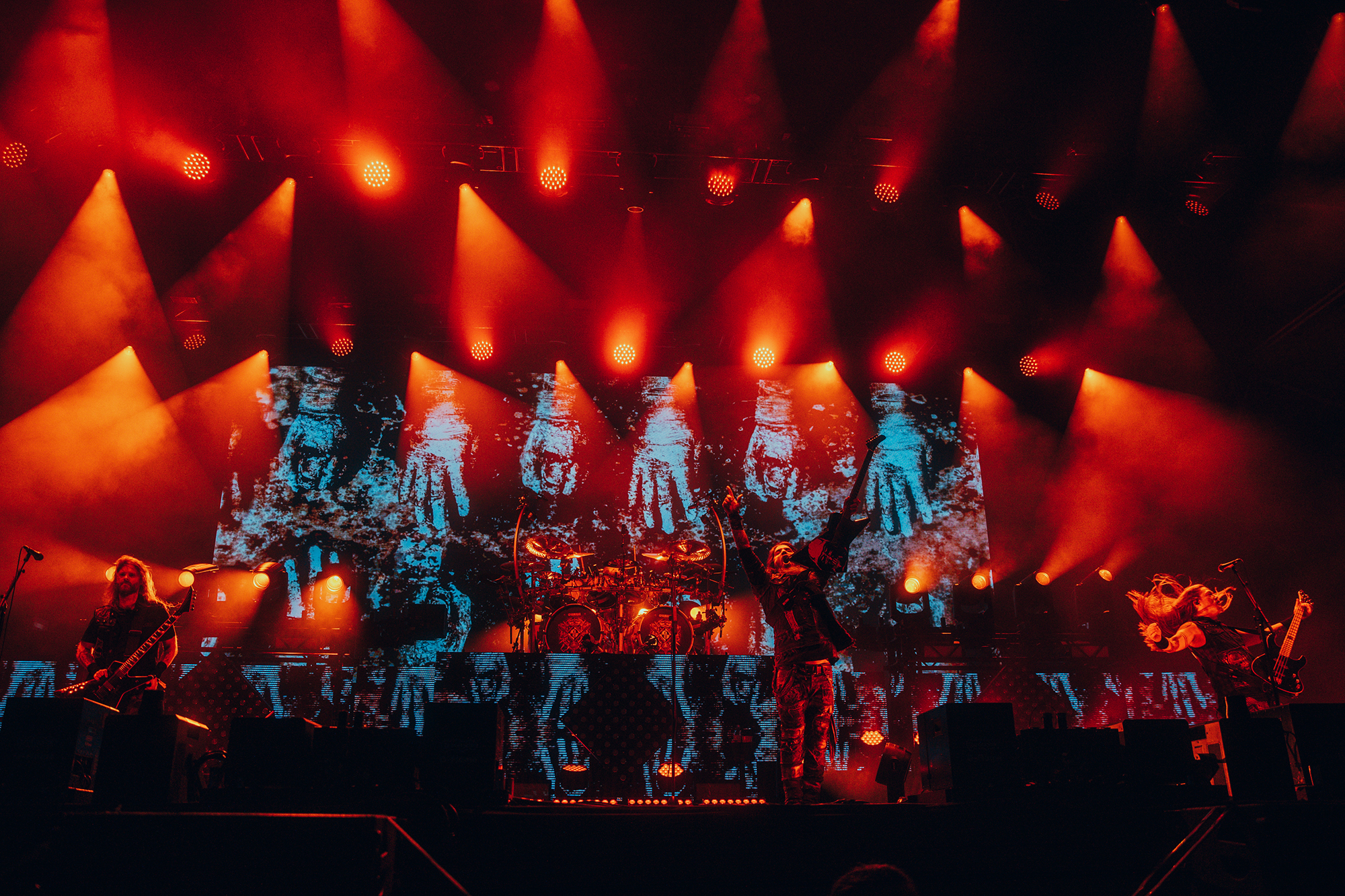 If MASTODON had played even half as good when they headlined the Ronnie James Dio Stage back in 2016 as they do today, a very different history might’ve been written for the Atlantans. Despite having a back catalogue bulging with muscular hits, the quartet’s live reputation has left a lot to desire. When your first five songs are Tread Lightly, The Motherload, Pushing The Tides, Crystal Skull, and Black Tongue, you’d wager you’ll win the crowd over. MASTODON do that and then some, with grins across all their faces – especially the usually more reserved guitarist Bill Kelliher, who’s so animated he’s playing rock, paper, scissors during riff-offs with Nick Johnston. But it’s the banger-after-banger-after-banger mentality merging with the red-hot sun and the biggest crowd a special guest slot has pulled all weekend that really makes this set shine. The likes of All The Heavy Lifting, Spectrelight, and Steambreather score sing-alongs a-plenty, whilst early cuts Megalodon and Mother Puncher see pits and crowd surfers coalesce. If that wasn’t enough to crown them champions of the weekend, the dust from mega-hit Blood & Thunder’s pit’s enough to transform Bloodstock into Tatooine, before closing out with their mesmerising cover of BLACK SABBATH’s Supernaut.