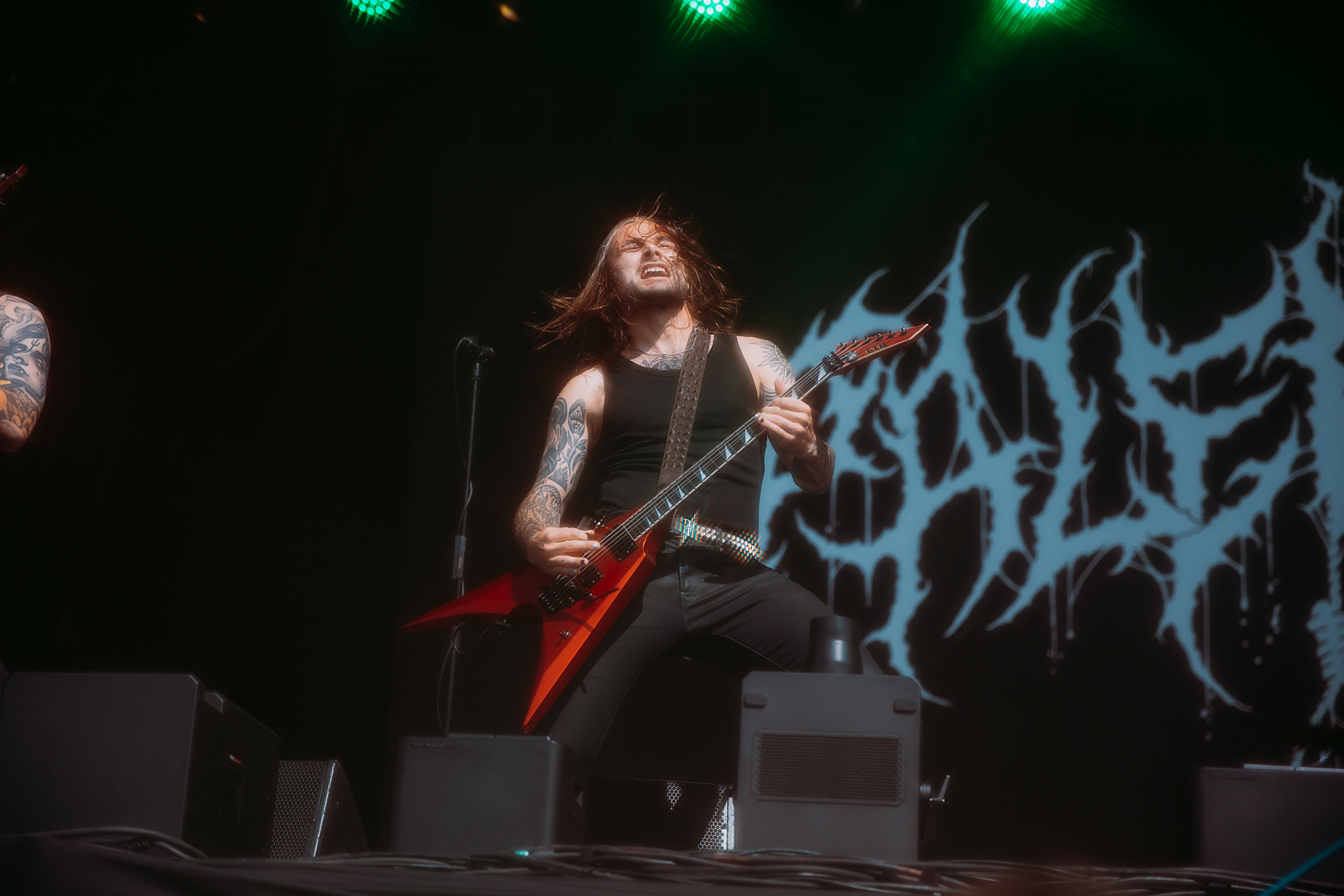 Bringing the day to a close are the self-proclaimed purveyors of ‘northern hyperblast,’ KATAKLYSM. One of the most consistently underrated bands of the metal world, the Canadians have built up a formidable back catalogue over the past three decades and treat Bloodstock to an hour of death metal bangers. The Sophie Lancaster Stage becomes a scene of utter chaos as Goliath, Bringer Of Vengeance, and an utterly fiendish Push The Venom devastate Catton Hall. As per tradition, there’s a marathon of crowd surfers during As I Slither, as well as a welcome appearance of old favourite Manipulator Of Souls. It’s an adrenaline-charged performance that makes you want to charge into the expanding dust cloud and sweat off five pounds. In fact, it’s so good, that it wasn’t until the weekend was nearly over that we realised they didn’t play the classic Like Angels Reaping The Dark. Fantastic stuff, one of the highlights of Bloodstock Festival 2025.