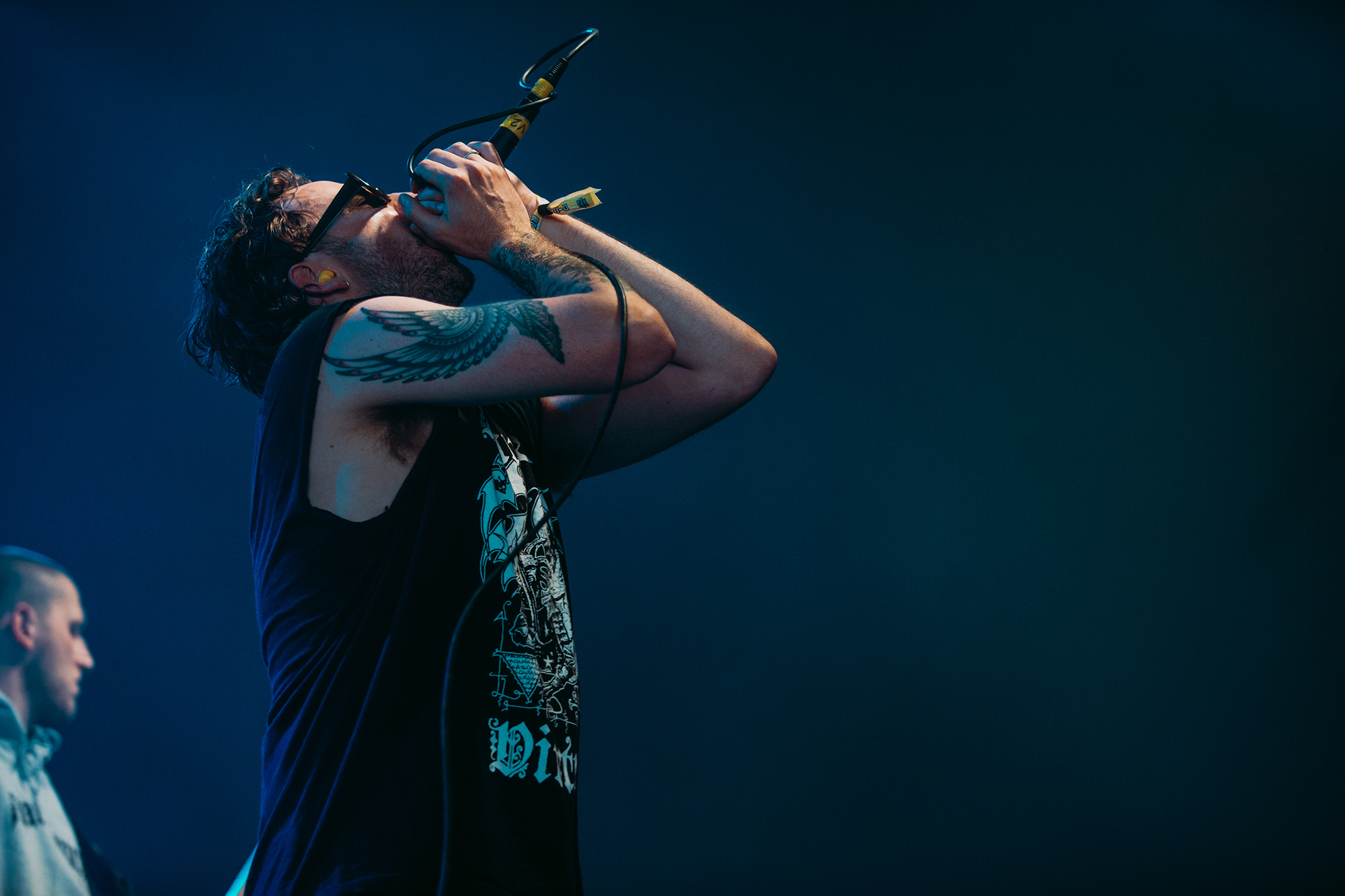 Southampton’s Metal 2 The Masses winners COMPOUNDS don’t sound like a band who should be on the New Blood Stage. And judging by the size of their crowd, there’s good odds they’ll show up on The Sophie Lancaster Stage in the not-so-distant future. They throw out their metallic hardcore bangers at breakneck speed, with vocalist Tom flying about the front of the stage like this generation’s Greg Puciato in training. Equal parts COMEBACK KID and WHILE SHE SLEEPS, they waste no time in commanding the crowd they’ve got: ask for a wall of death, and a wall of death you should get. Considering it’s barely noon and half the arena are still trying to shake off last night’s hangovers, COMPOUNDS and their crowd go full pelt till they step off stage.