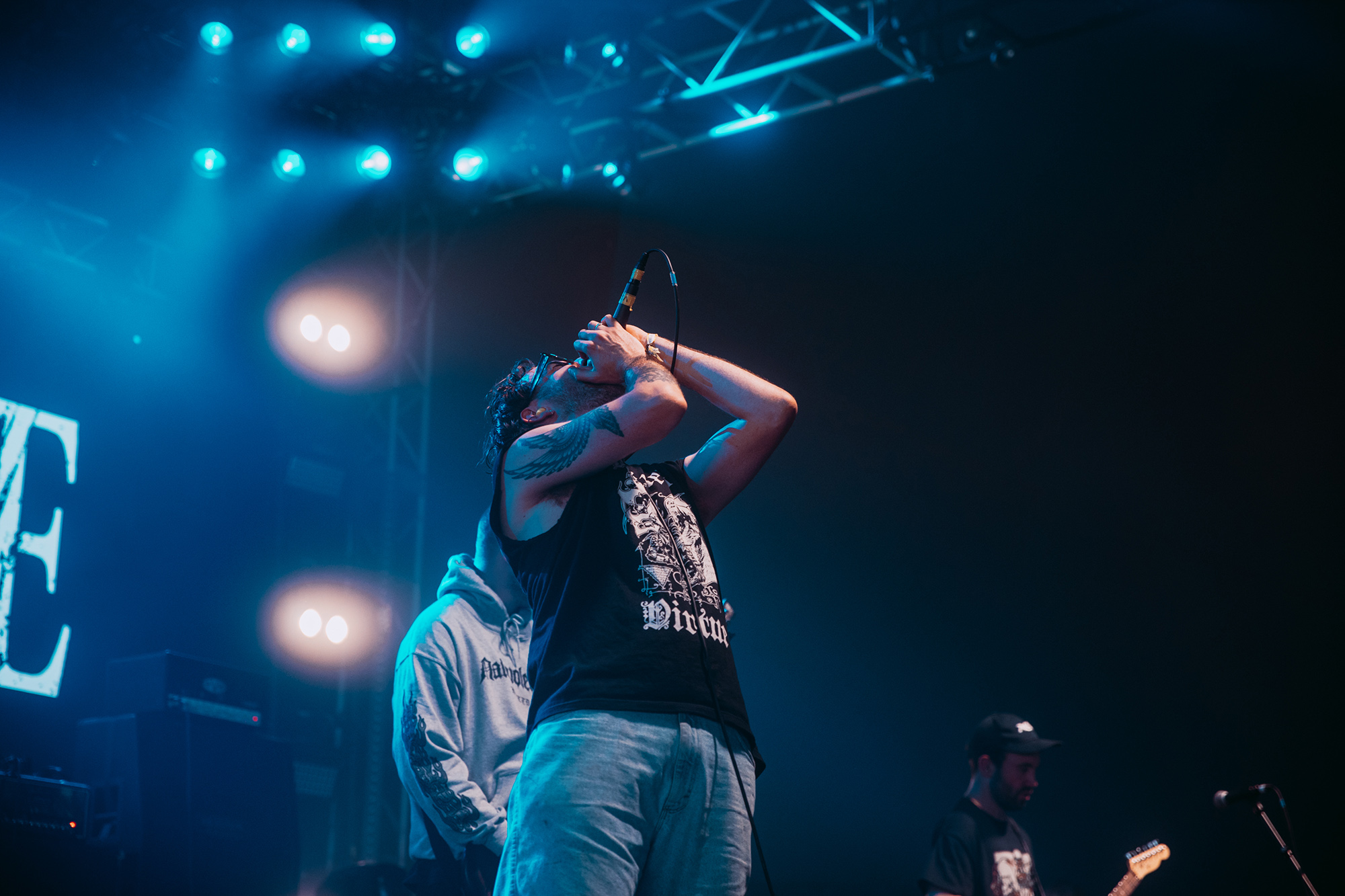 Doom-drenched post-metal soundtracking the apocalypse at 11am might not be for everyone, but for the few festival-goers gathered in the Sophie Lancaster Stage for Church Road Records-signees VNDER A CRVMLING MOON, the set is nothing short of sheep worshipping at the altar of a cult leader. If you can tap into their spiralling soundscapes, that average 9 or so minutes at a time, the Devonshire band deliver the perfect hangover cure. Sandwiched between mainstage sets from hardcore mob CAGE FIGHT and rising black metal stars THE SPIRIT, there’s something eerily enjoyable about experiencing a band who, for the most part, appear wholly possessed by their instruments. This is doomy post-metal done right, and those who chose to miss it did themselves dirty.