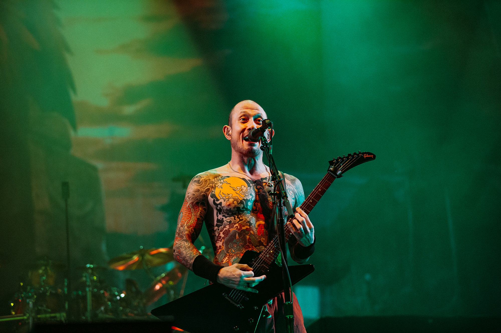 As more pints get poured at the stage-wide bar at the back, the more loose ME AND THAT MAN get. There’s always a worry that songs loaded with guest features won’t sound quite right without them, but a mid-set double decker bus of Under The Spell and Burning Churches miss neither Mary Goore (aka GHOST’s Tobias Forge) or Mat McNerney, as the masses jive, mosh, and sing their way through.