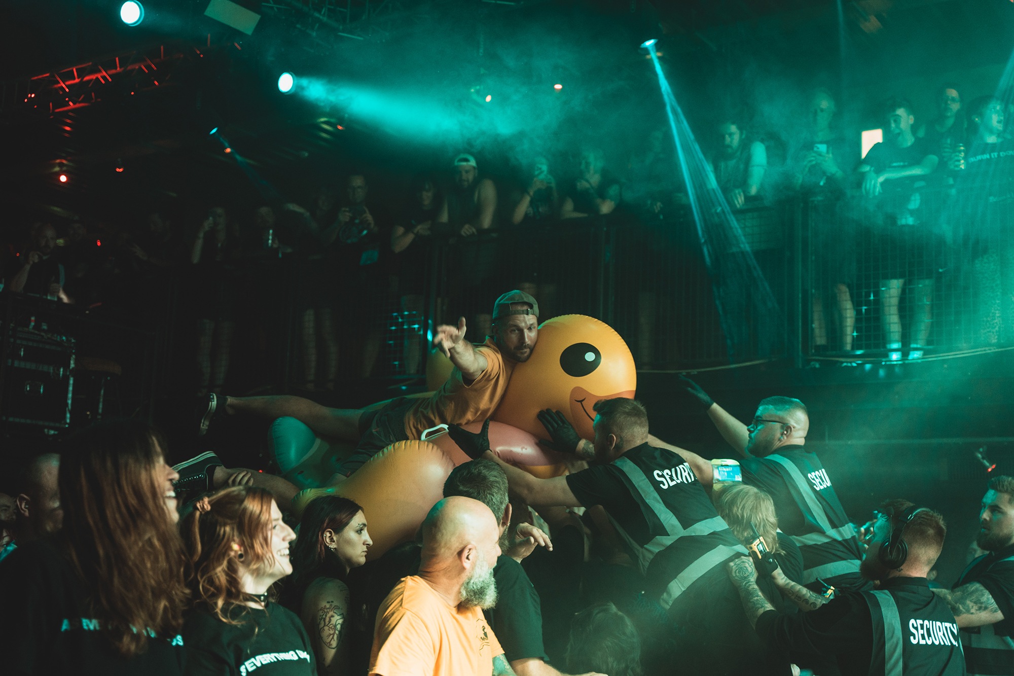With LOATHE dropping out of Burn It Down, there are some big shoes to fill, but ANGEL DU$T are certainly up for giving it a go. With a blend of hardcore and punk ringing through The Foundry, the band literally jump into their set, Opening with Toxic Boombox, there is no time to breath between songs as they plough through their set all while doing some incredible aerobatics. If anyone had any doubt that ANGEL DU$T couldn’t close the Friday was quickly extinguished, with a wonderful diverse setlist, taking the best bits from all their albums like Big Bite and Very Aggressive, even showing off tracks from the new album Brand New Soul, with Born 2 Run and Space Jam. Fans in the audience were in for a treat and the ones who aren’t familiar with them have a wonderful taster of what they have to offer. The sound however does come across a bit weird and can be harsh on the ears if this isn’t really your kind of music, but the performance and energy from the band really beings it together. It was a superb headline set from the band and a great way to sign off the first day of Burn It Down.