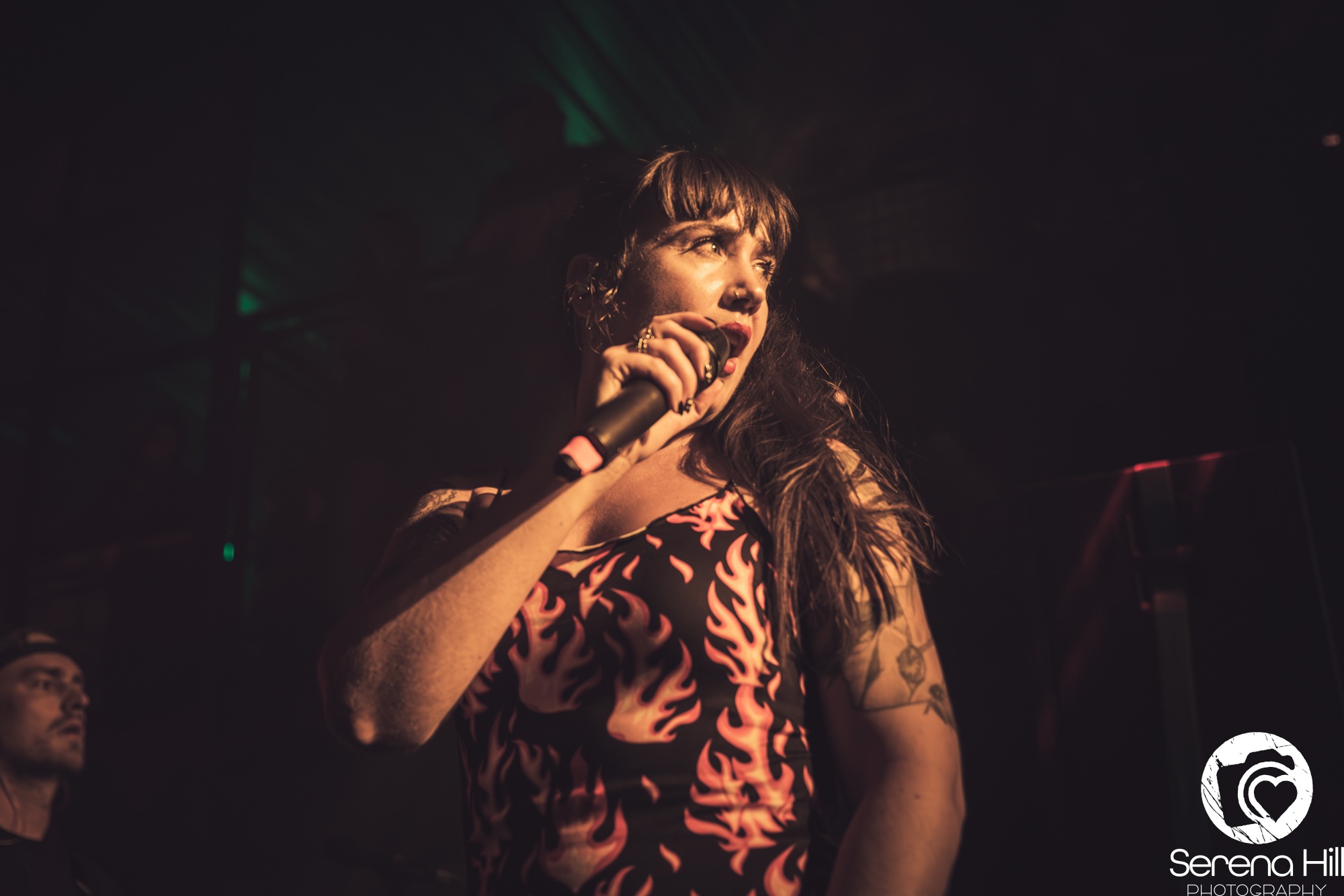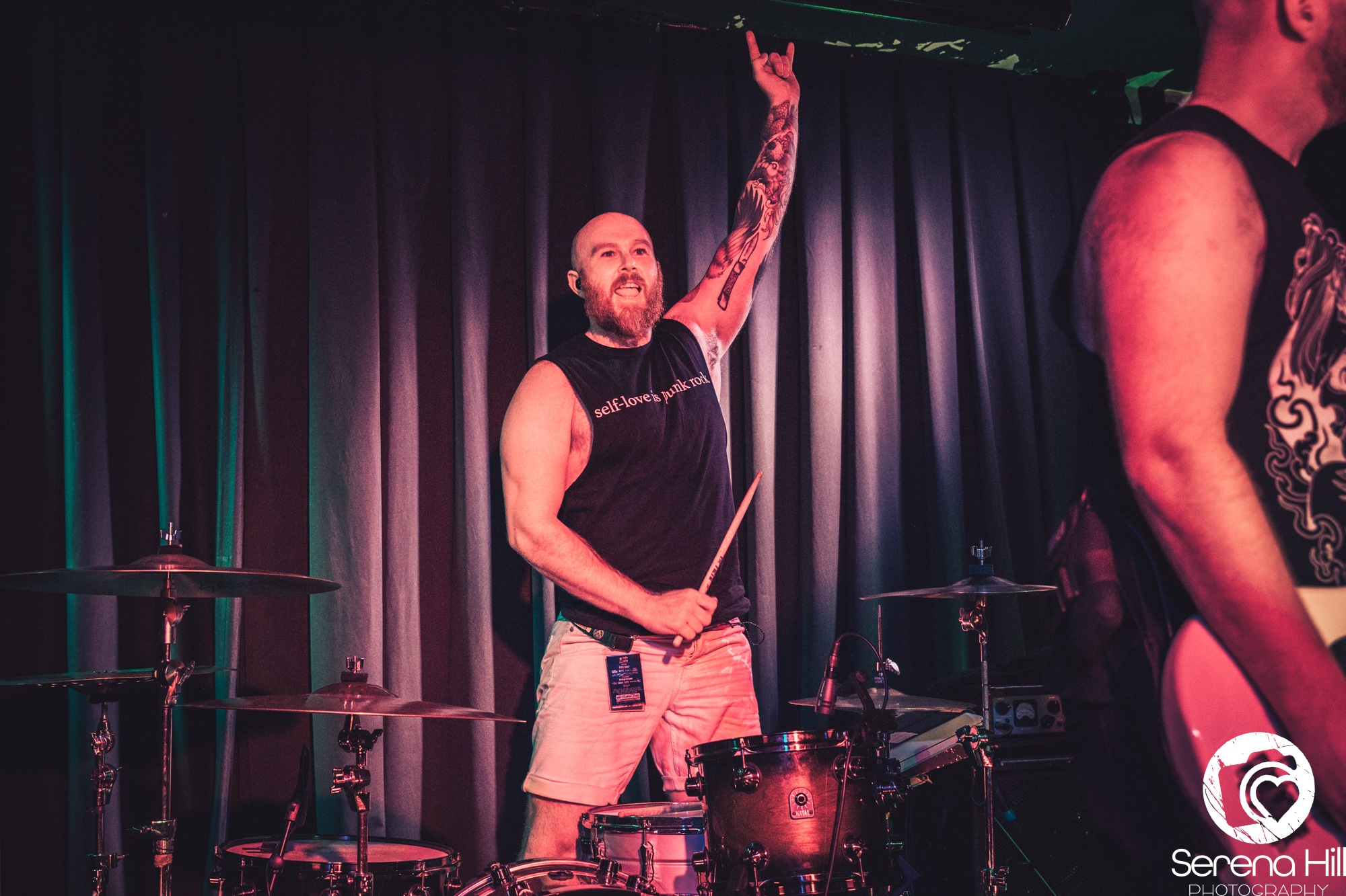 Bringing the pop-punk/rock vibes to the festival is LIZZY FARRALL. Starting off the set on the slow side, the crowd is pretty mellow. The songs are played nicely and a nice soft vibe to the day. Lizzy‘s vocals are very good and really bring the songs out. Although she does have to work hard to win over the crowd and get them bobbing their heads. The set did pick up near the end but the slowness of the pacing overall really hindered the performance, the sweat dripping off the crowd wasn’t from their energy but rather from the amount of bodies in 25 degree heat in a building.