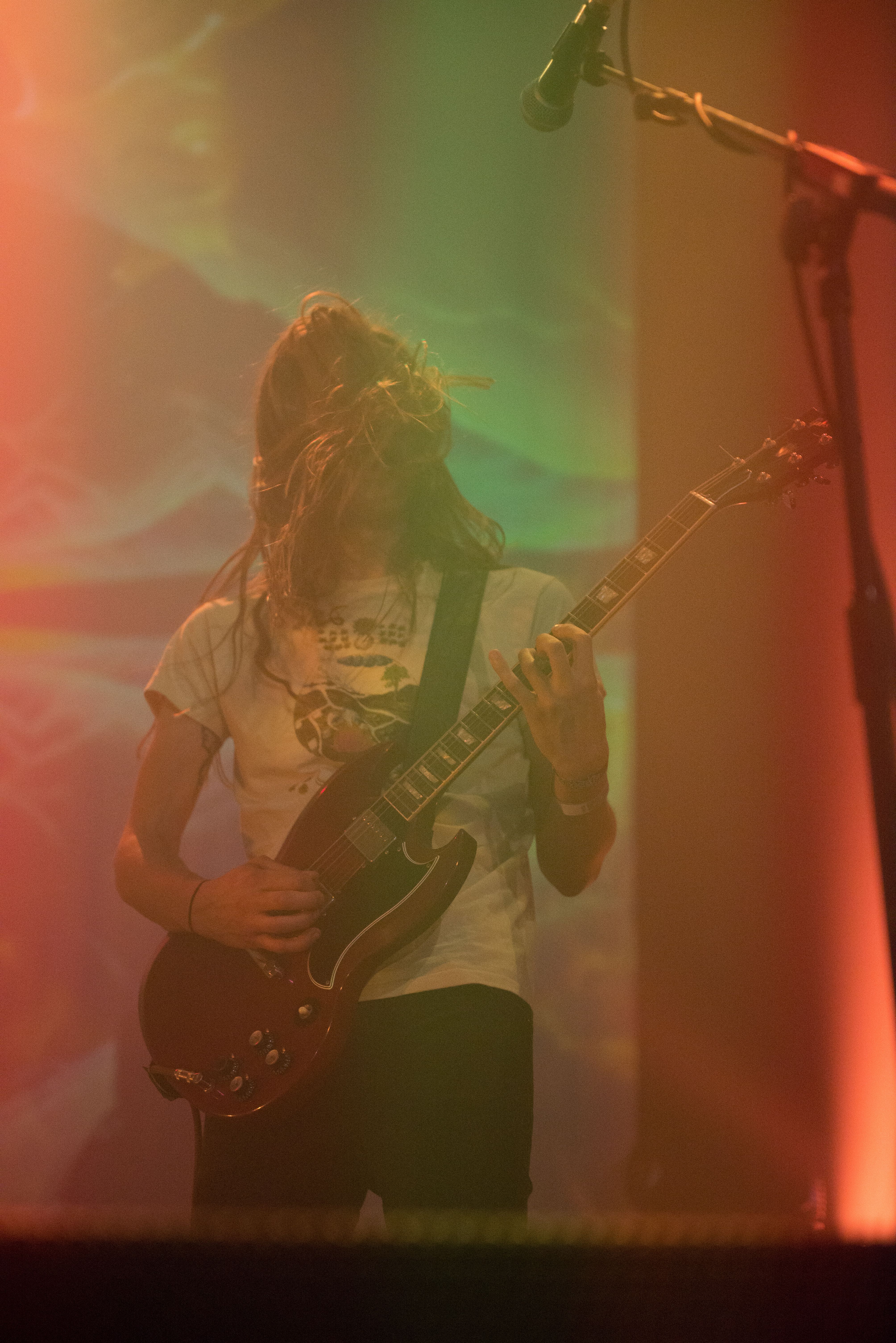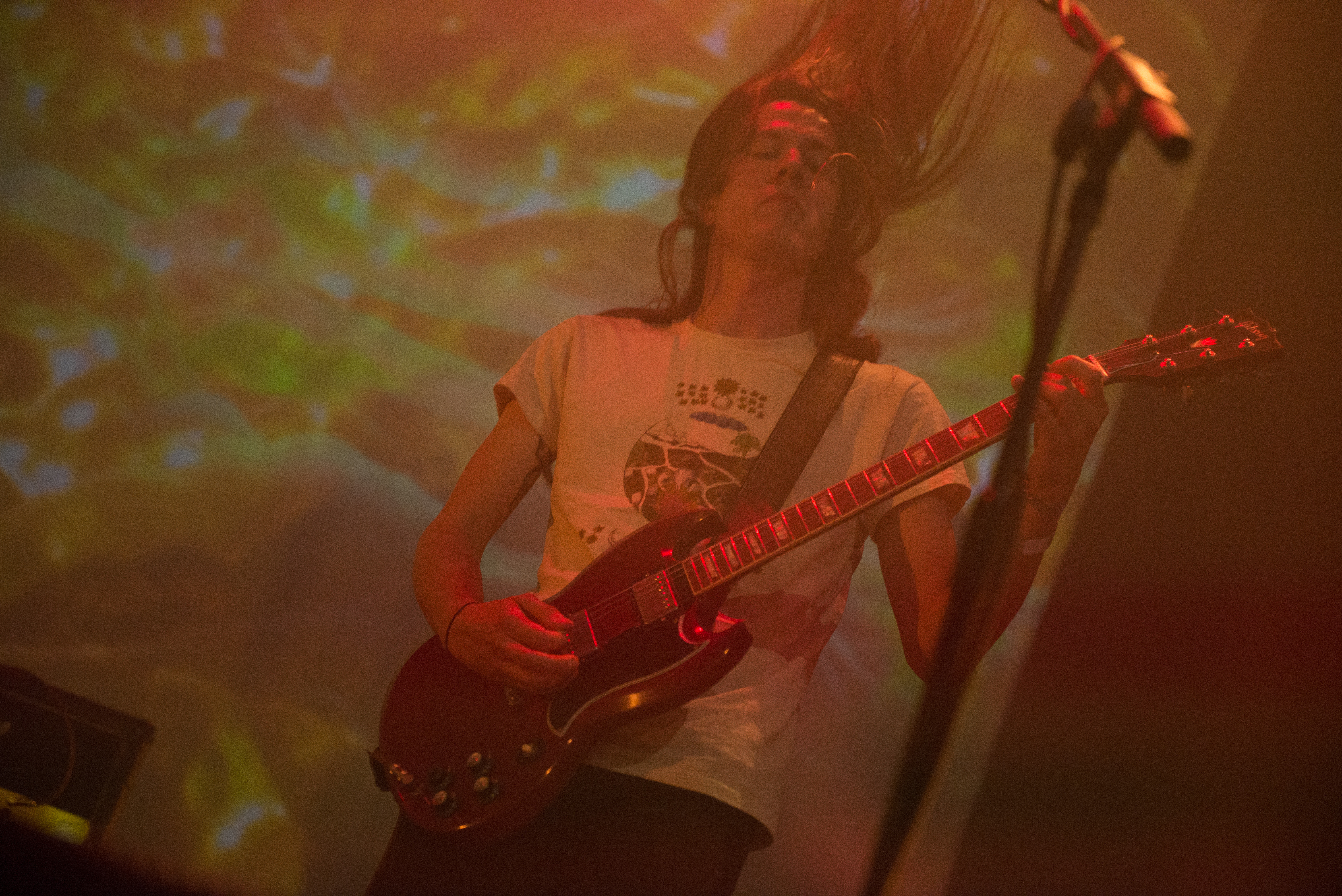 Throughout the set the sound was pretty flawless with no hiccups other than the bands sole surviving original member Tatsu Mikami falling over midway through the set, still without missing a beat! This could be put down to one of two things, the fact that he plays with his bass so low he may as well be sat on the floor, or his signature 70’s style bell bottoms that were as big as our hopes and dreams. Add to those flares hair that looked like it had come straight out of a Herbal Essences commercial it only added to how effortlessly cool the band looked as they sent out frequencies so low and sludgy dogs would even have trouble hearing it.
