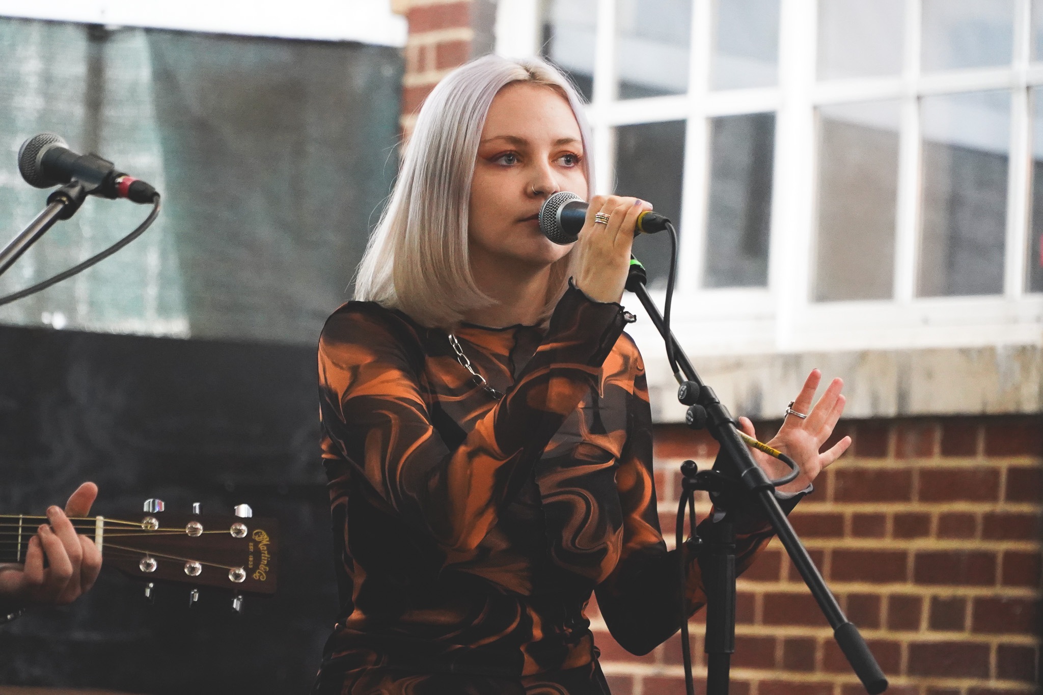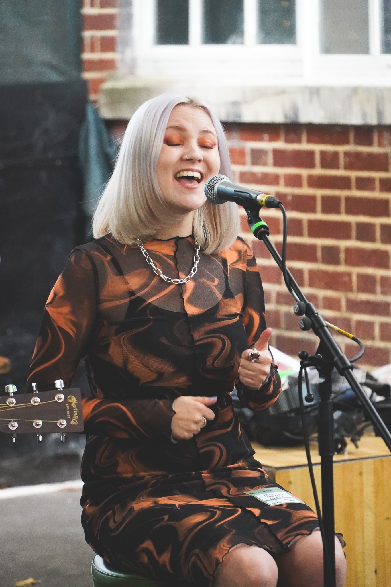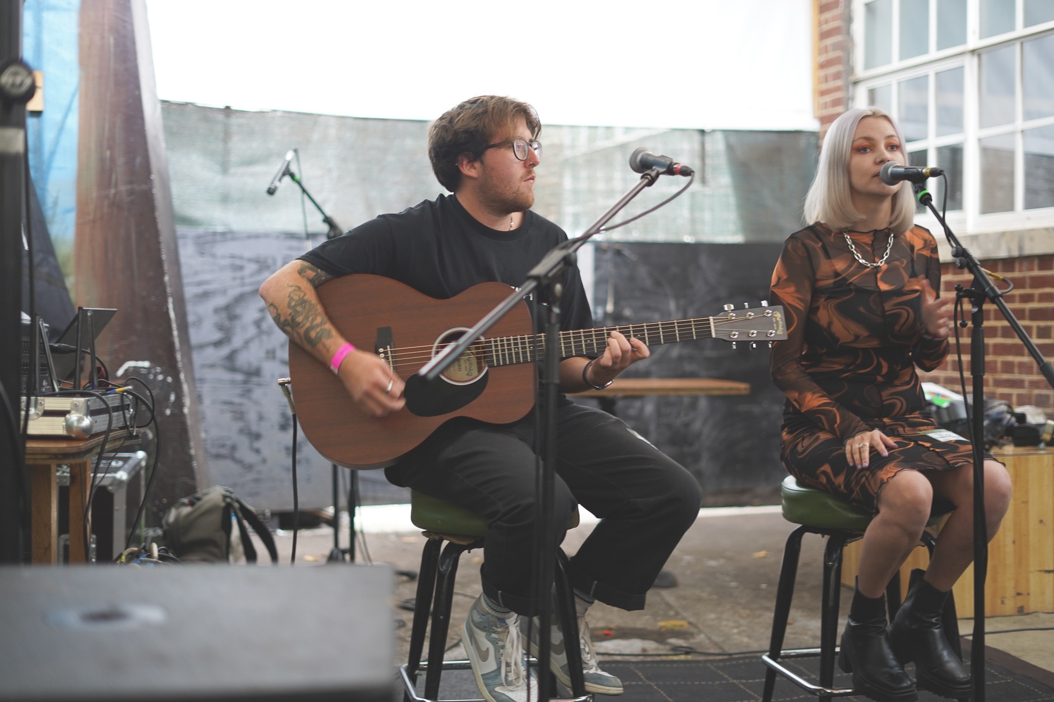 Back on the Acoustic Stage in The Lanes Courtyard, a stripped-down take on pop-punk closed out the stage from Mersey artist BRONNIE, who presented a set full of recent singles, amazing new songs that will appear on her debut album, and even a great cover of Big Yellow Taxi, which is punky whilst respectful to the original and honours it well. Even in this acoustic setting, Bronnie’s voice shines whilst showcasing her vibrant personality, and with the guitarist lending harmonies to the songs, the two create a beautiful atmosphere for the jammy tracks that elevate the already powerful lyrics. A great choice to close out the stage and a brilliant performance from a talented artist.