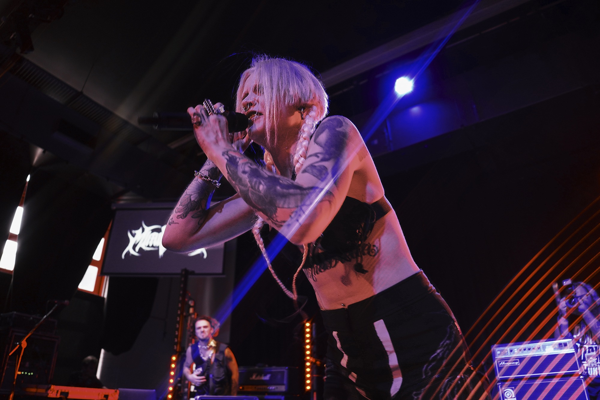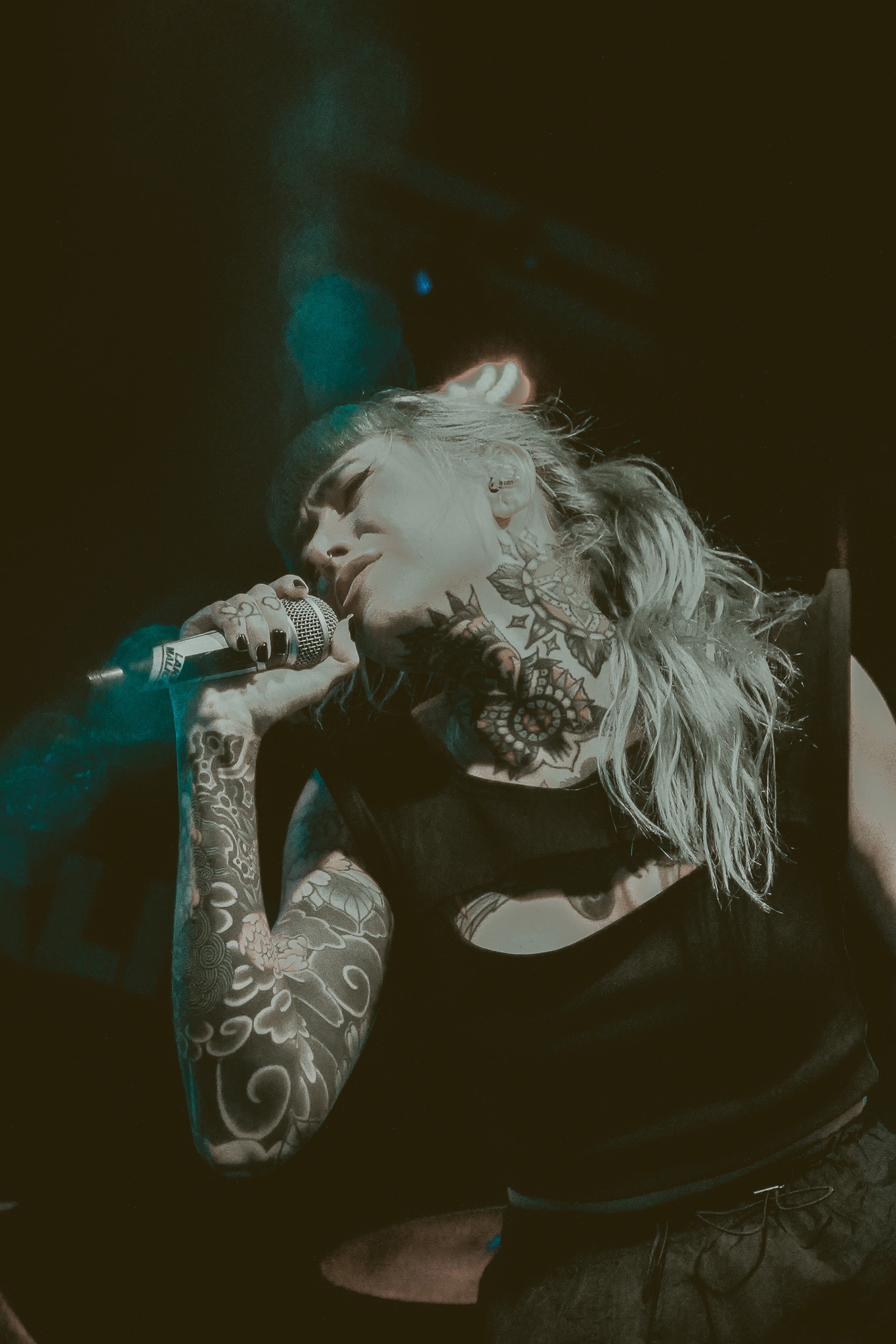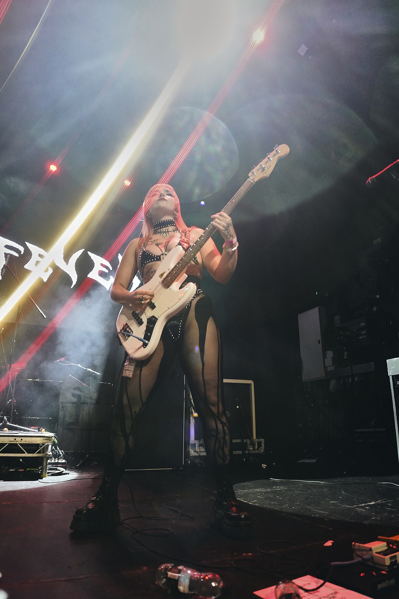 Within the sea of heavy riffs and gritty metal sounds that the festival celebrates, there are also different alternative sounds to Misery Loves Company Festival. This also includes gothic electronic styles, like with Brighton artist SAFIRE, who brought her fierce style and energetic sound to the festival. Despite only her and her DJ on stage, SAFIRE used every inch of the stage and brought a dynamic presence to every song she performed and, with the DJ behind her also enthusiastic, jumping with every song, it created a captivating performance for each track they performed. Songs like MERCY hit well with the pumping rhythms, and the whole set was a fantastic display of high energy, incredible electronic sounds, and dynamic vocals on display throughout that all could jump and dance to.