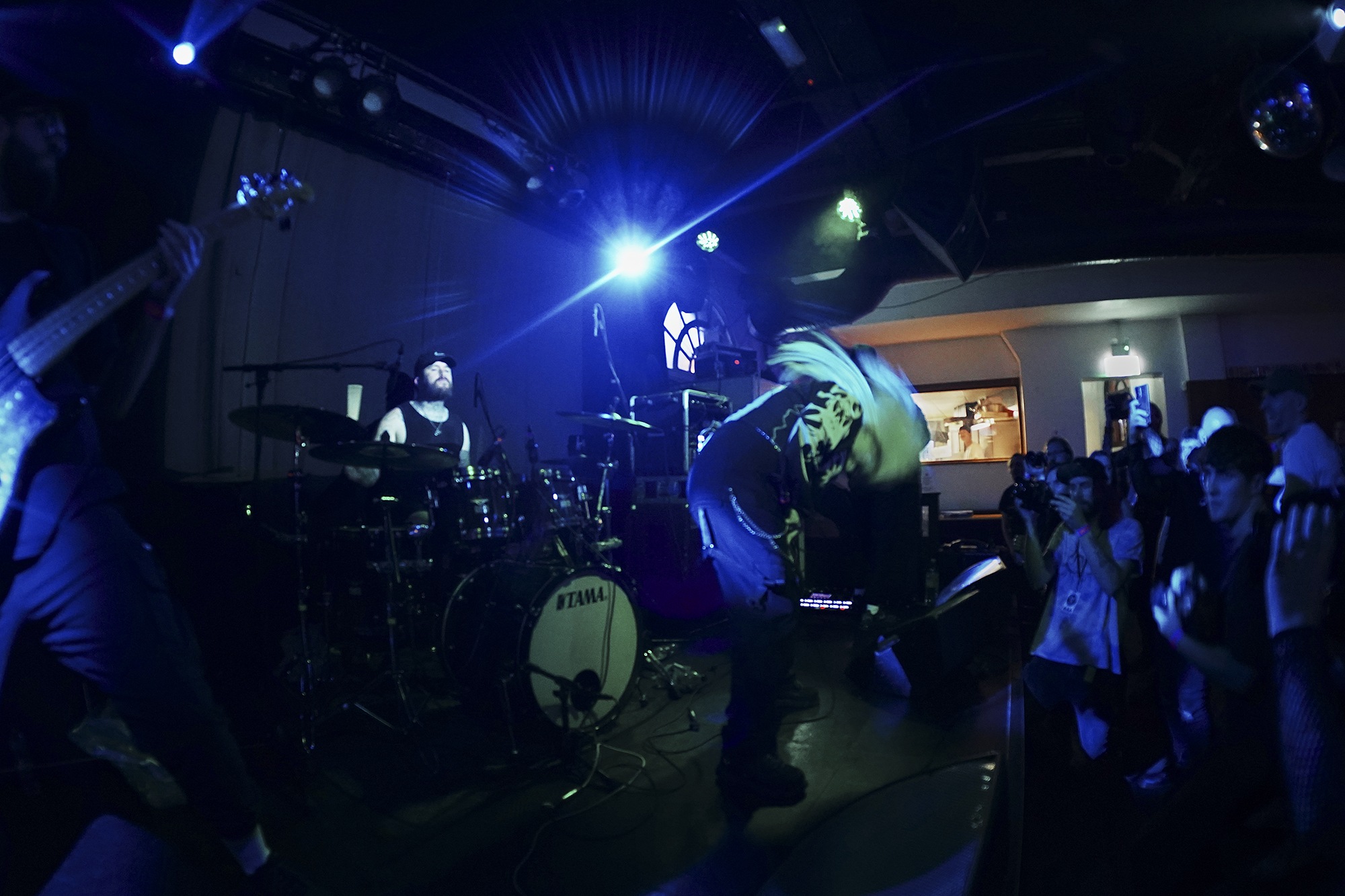 Despite their set starting at 1pm, SPLIT CHAIN bring some dark and sinister vibes to The Lanes’ nightclub with their potent mix of grunge, nu-metal, and screamo. Frontman Bert Martinez’s dreamy vocals drift over the downtuned guitars in a way obviously reminiscent of DEFTONES, an influence that the band doesn’t wish to hide, even busting out a thunderous cover of Be Quiet And Drive (Far Away). It’s not the most original sound attendees will hear today, but the relentless energy of this quintet instantly marks them as a promising new act in a quickly resurging subgenre.