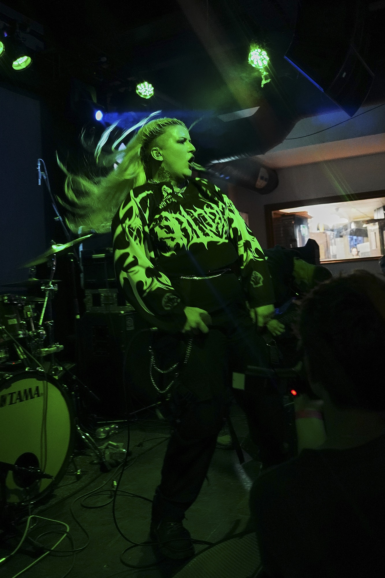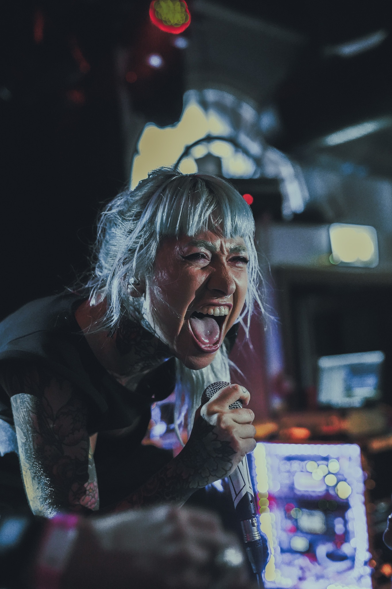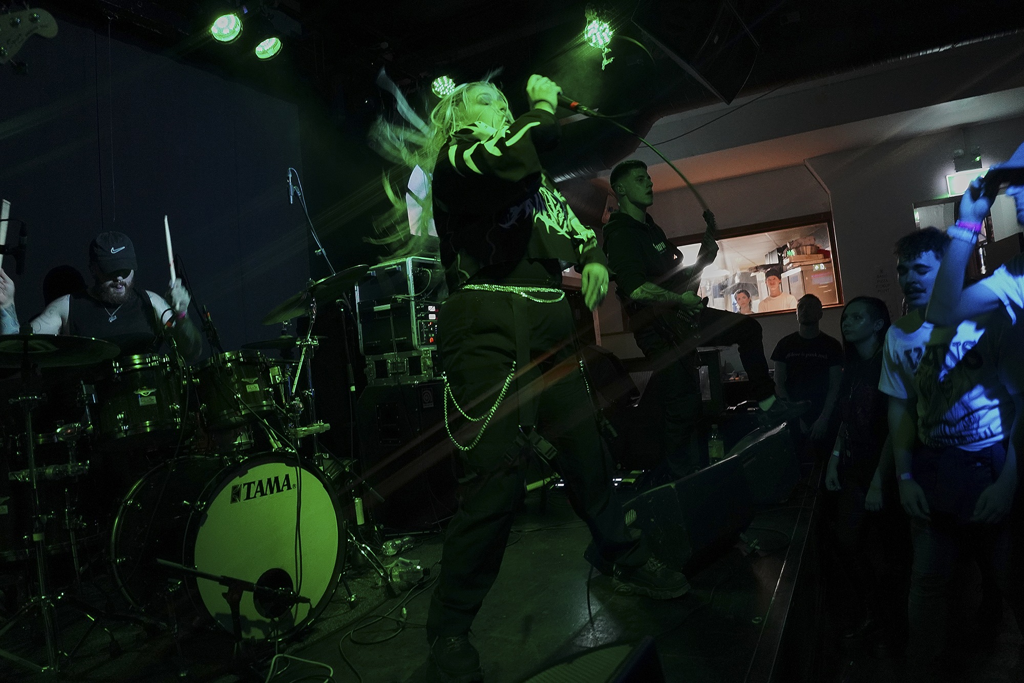 It should be clear by now that many of the acts put on at this fledgling fest boast bold and experimental genre fusions. While this says great things about the creativity of the UK scene, the degree to which these genres mesh is sometimes debatable. One thing that isn’t debatable: LAKE MALICE is fucking fantastic. Tastefully melding elements of electronica, hip-hop, and riffy metalcore, the band have something for everyone, bringing all of these disparate parts together with towering, rousing choruses. The energy within The Lanes’ modestly sized room is off-the-charts, and frontwoman Alice Guala is visually elated at the reaction they garner. The UK duo blast through bangers including the likes of Magic Square, Black Turbine, and Bloodbath, whipping up the pit into a euphoric fervour. As the set closes with the utterly breathtaking Blossom it’s hard to believe that this exhilarating act has yet to release a full-length album.