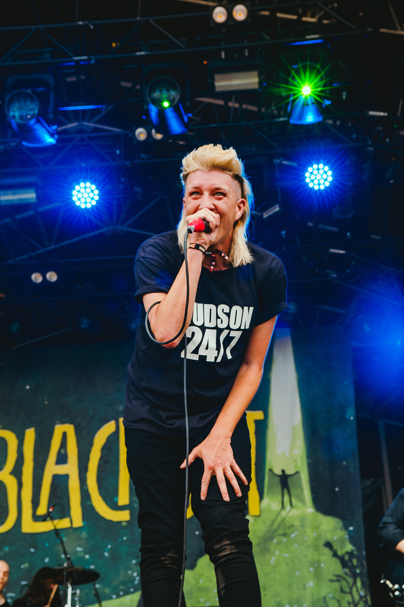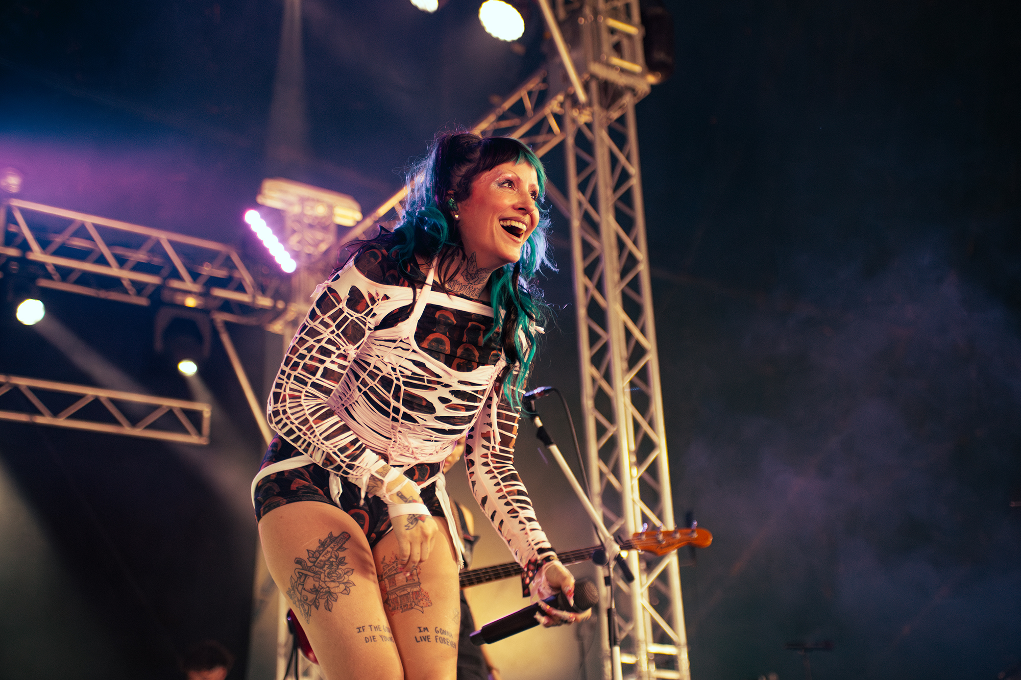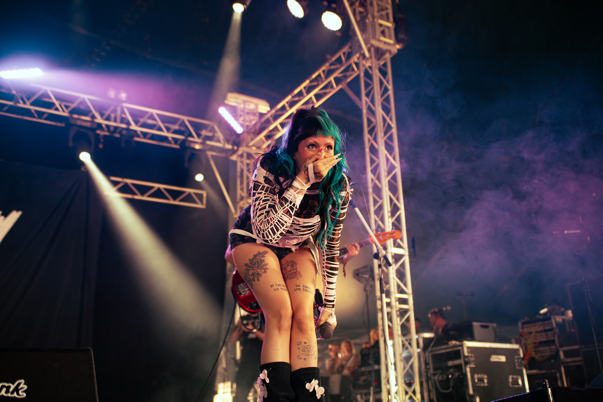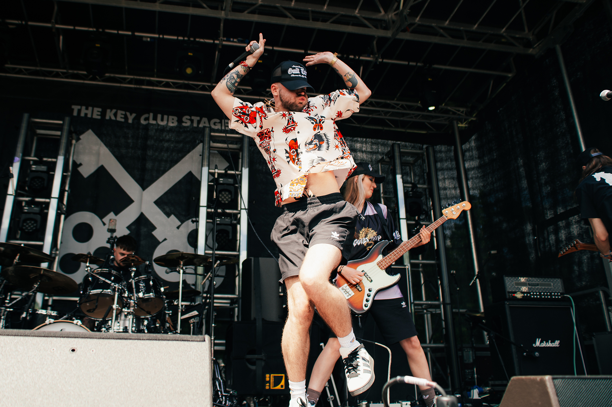While HONEY REVENGE’S vocalist Devin Papadol repeatedly informs the crowd that this was their first ever festival set, there is no way that anyone would have ever known otherwise. With cool confidence and a steady stream of pop rock hits, they hype up the audience early in the day, bringing the energy and encouraging some singalongs. While they were undoubtedly nervous, this was nothing but charming, and when they had to stop the set to help somebody in the crowd, they handled it with ease. With incredible vocals and an upbeat stage presence, they had many fans watching despite being a smaller band, and are sure to have more after this performance.