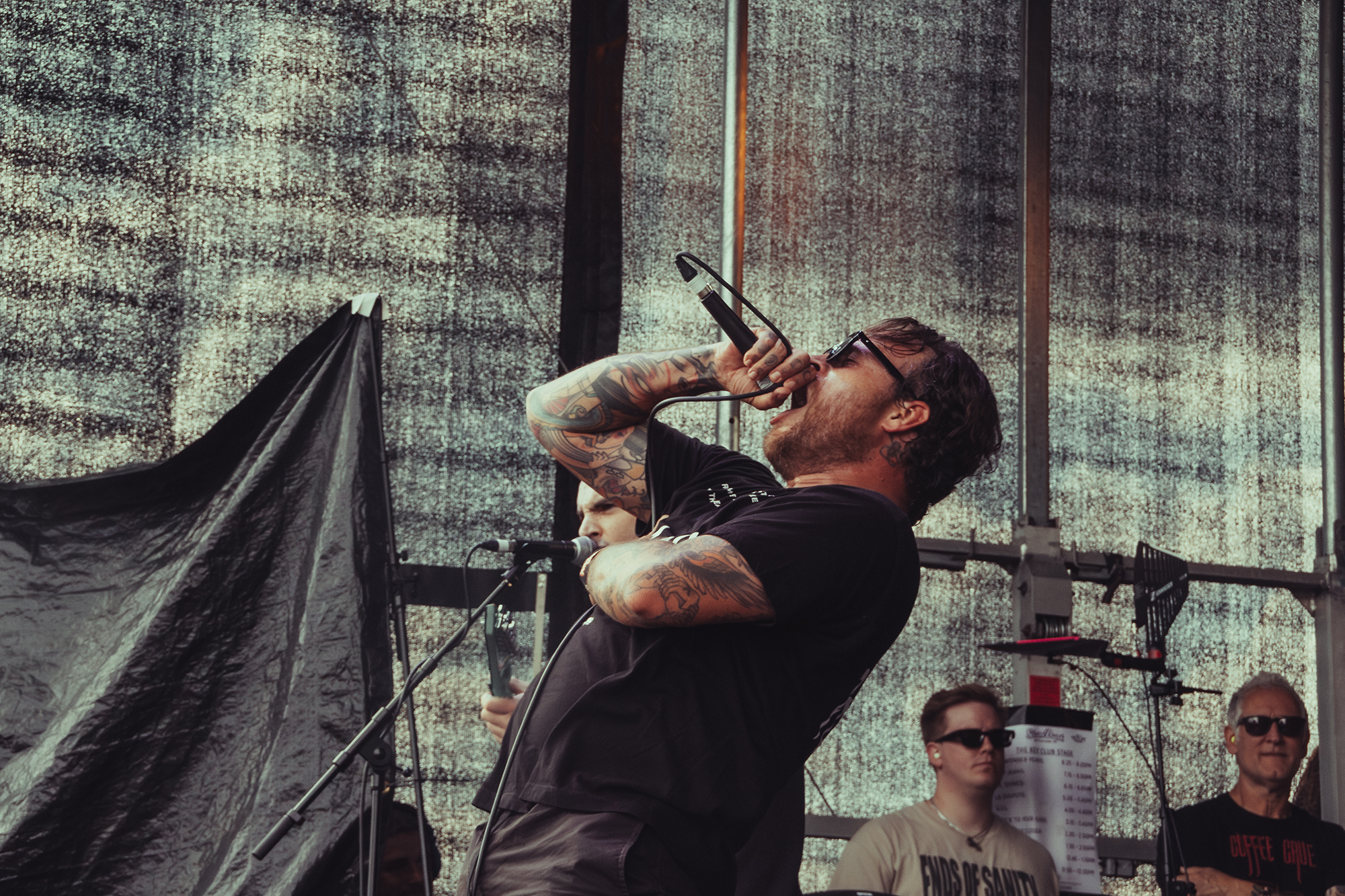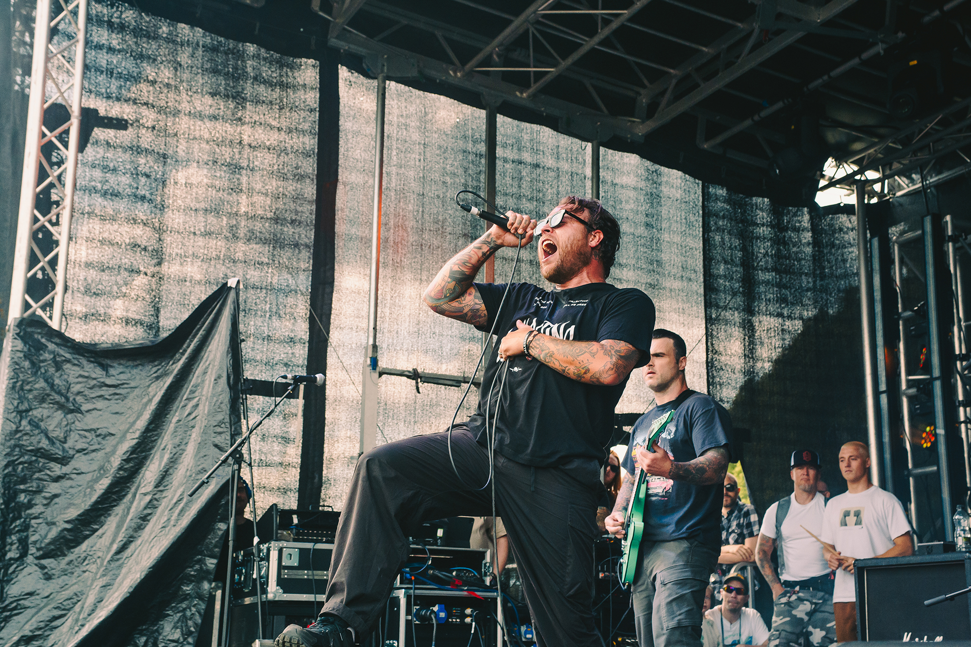 Pennsylvania hardcore outfit ONE STEP CLOSER leap on to stage in the height of the new summer sun, setting the tone for the fellow ‘heavy’ bands that are to follow today on The Key Club Stage. Despite All You Embrace, their sophomore album released earlier this month, taking a lighter approach to their sound with more grunge and shoegaze elements; ONE STEP CLOSER still perform with the stamina of their 90s hardcore roots. The band seem to lap up the energy their given from the crowd, with circle pits aplenty. Vocalist Ryan Satviski can be seen soaking up the warm welcome in a few moments of smiles, glowing in the bright sunlight. This set hammers home the fact that ONE STEP CLOSER are one of the most versatile and relevant bands in the scene currently, and deserve this type of enthusiastic crowd every day.