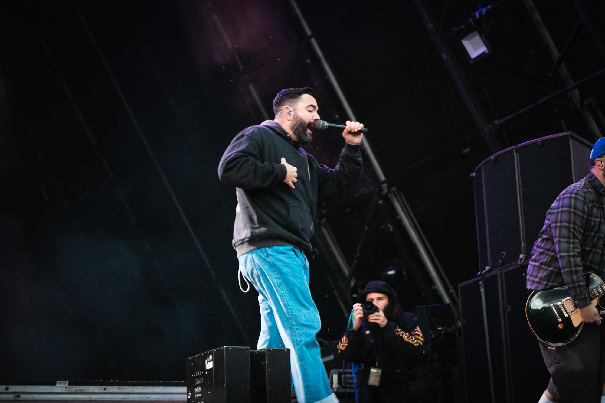 We’d been lucky enough to see SWEET PILL  before at 2000trees in 2024 – so to see them again opening the main stage of Slam Dunk Festival was a true joy. It’s no easy feat to be the first band on stage anywhere on-site: the crowd’s fresh, it’s not even midday yet and there’s still the threat of rain. Regardless, the band provided their signature mix of alternative midwest emo to a decently appreciative crowd. Vocalist Zayna Youssef’s vocal acrobatics are always an experience – overall Sweet Pill started the festival off strong.