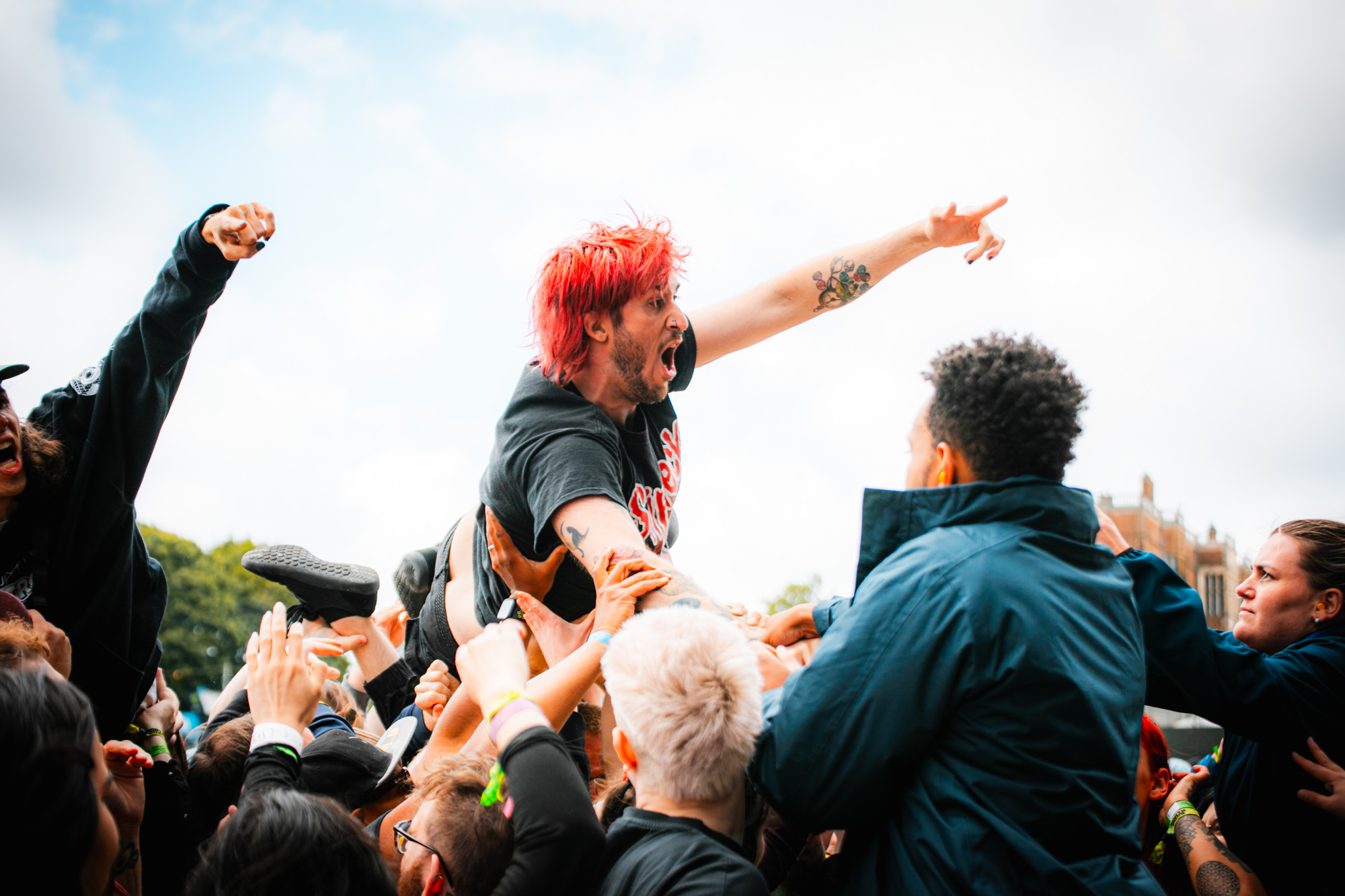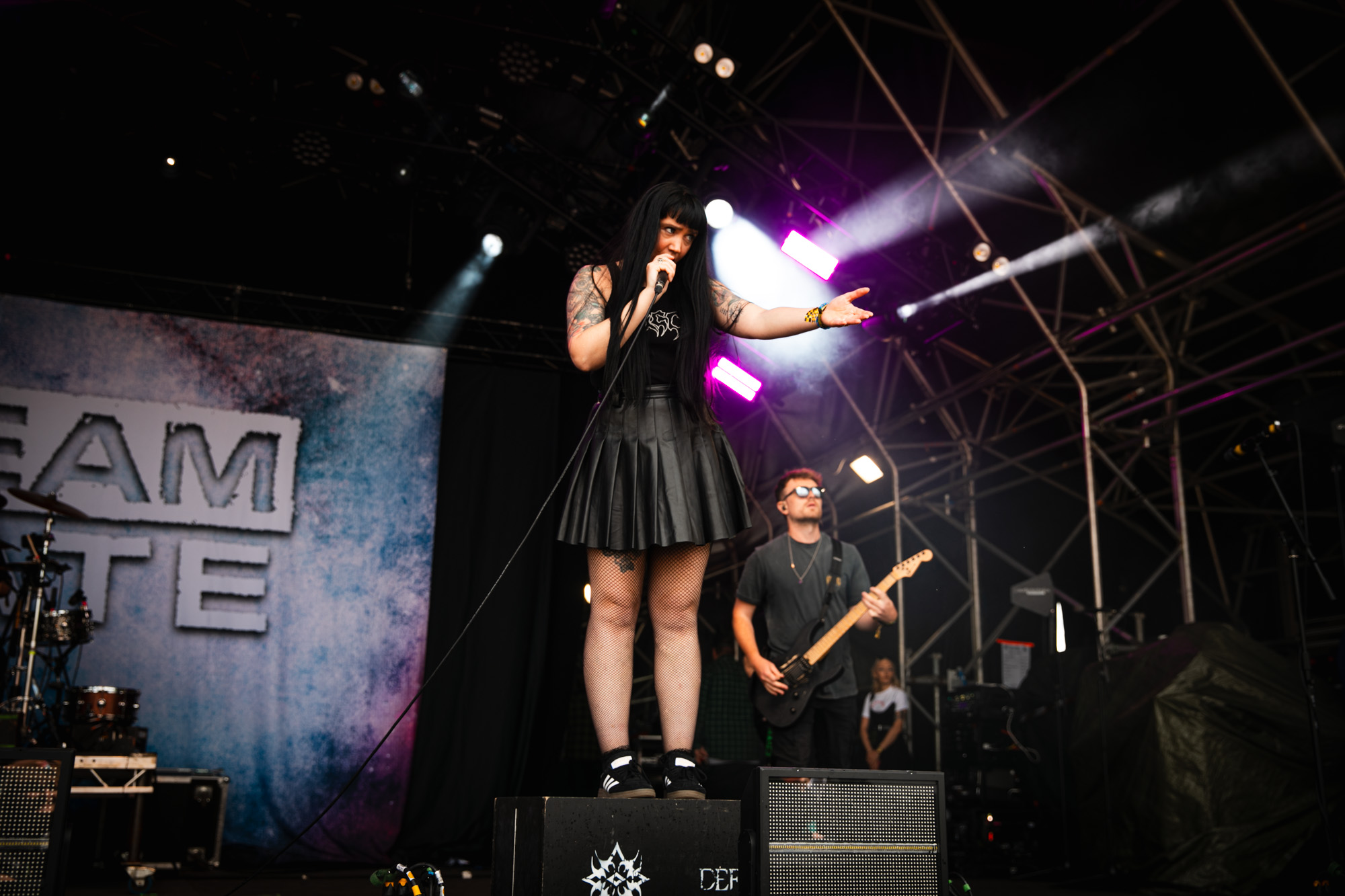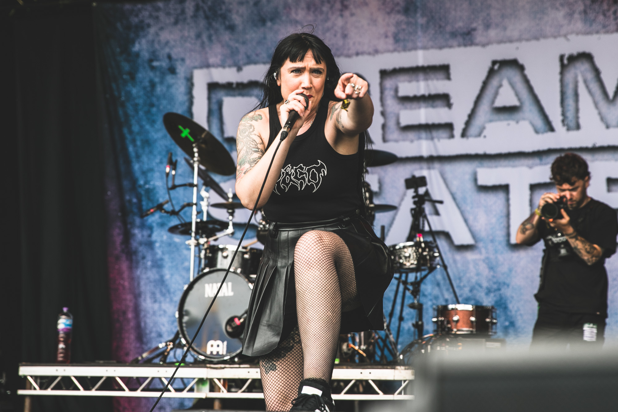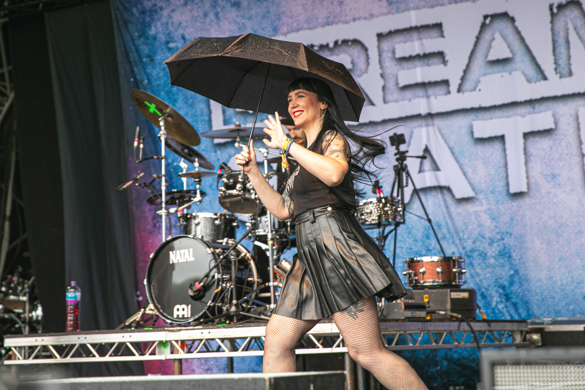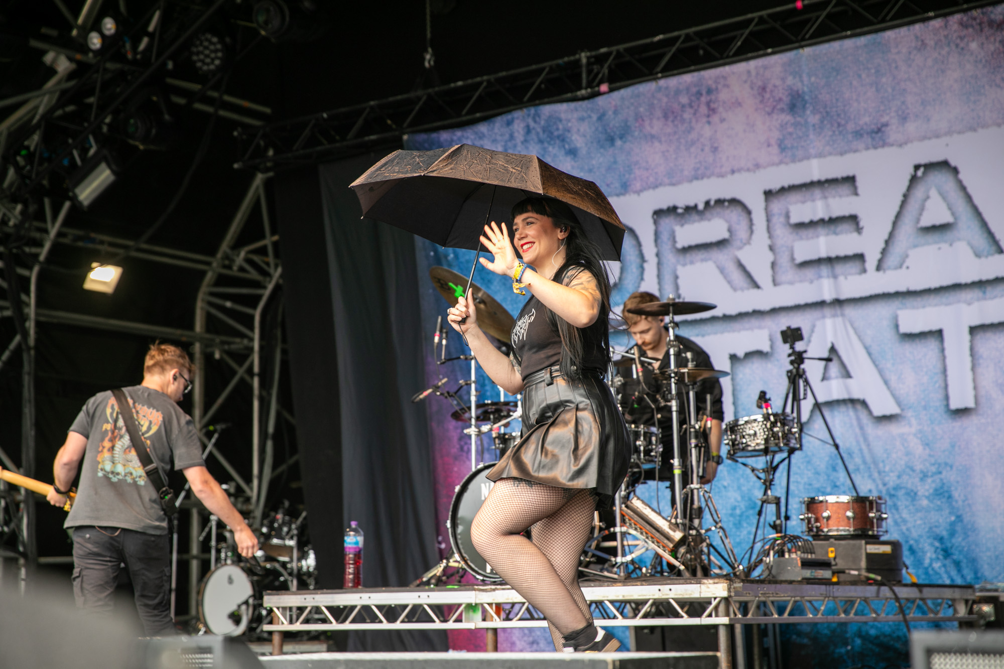 Making their way to the stage with umbrella extended might have seemed like tempting fate, however DREAM STATEÂ managed to ward off the rain successfully. Main Stage East provides ample viewing space – and you needed it, as the crowd truly turned up for the Welsh quintet led by an energetic Jessie Powell. The crowd sang, crowdsurfed and circle-pitted to their hearts content, completely irreverant to the fact that the day was only just getting started. Bonkers. Utterly bonkers.