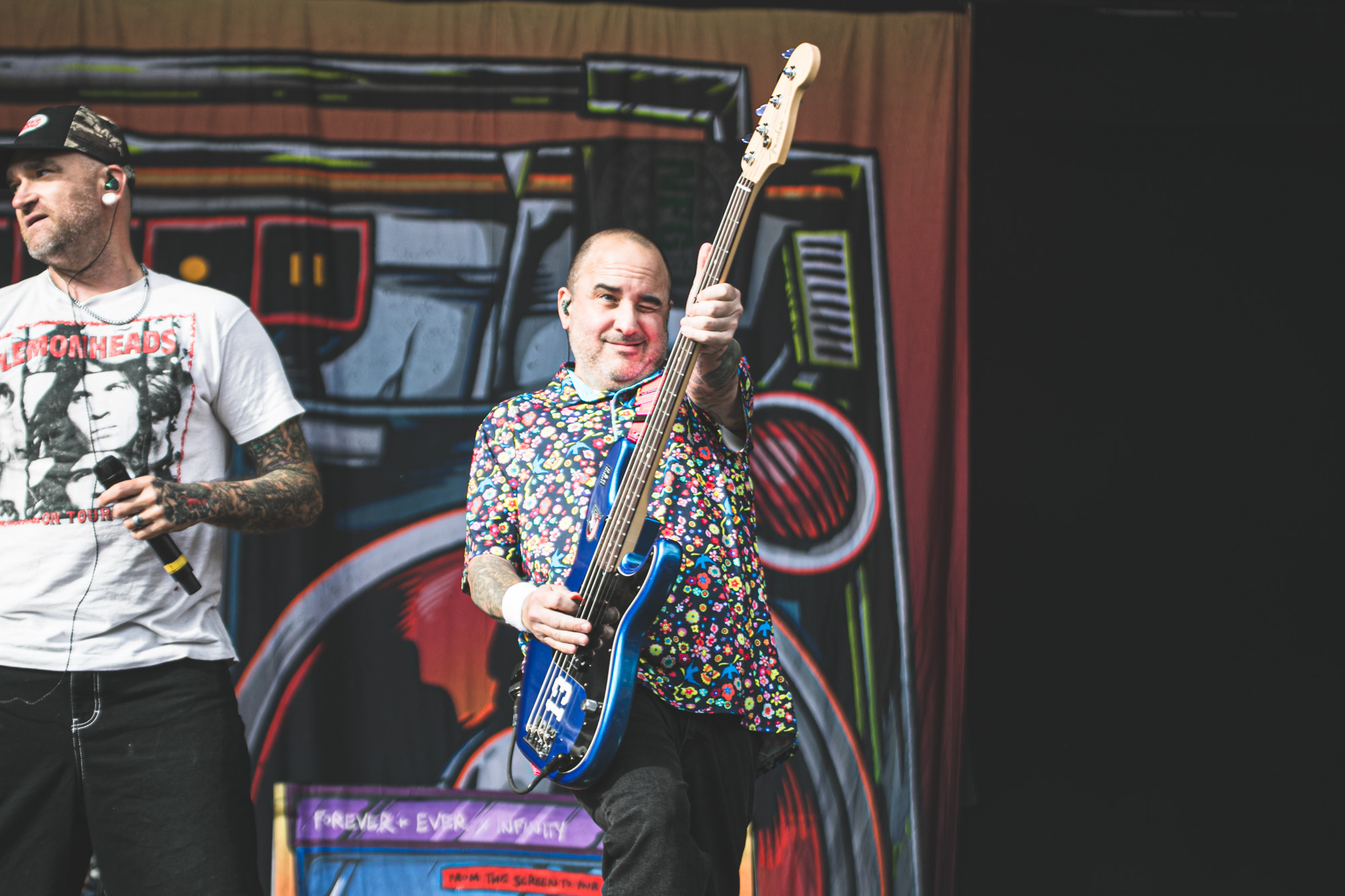 “Is that a child crowd surfing on an inflatable pizza slice?” and “how much more water is MC Bat Commander going to throw on me?” are just two of the questions you might have asked yourself while watching THE AQUABATS at Slam Dunk Festival. From the moment they entered the stage and the inflatable sharks were launched into the crowd for The Shark Fighter as opener, it was clear fun was the main order of business for crime fighting superheroes of ska. Managing to get through an impressive 12 songs during their set time, including Super Show Theme Song, the fun did not stop. Mosh pits surrounding both towers of the Monster Energy Stage, crowd surfers of all ages, and an endless barrage of inflatables made the set feel like an all out pool party.Â