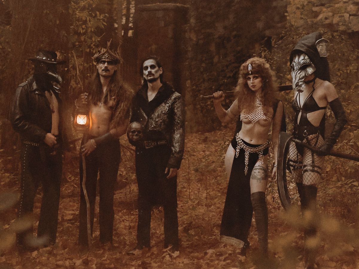 The band didn’t arrive fully formed, though; while its seeds were sown during her childhood, it took a fortuitous booking for the costumes and lore to emerge. “I knew the band was going to have rat in the name because that was my nickname growing up,” she explains. “It’s a loving nickname from my family, because I have two really big front teeth,” she chuckles. “Castles felt right because I knew it was going to be SABBATH-y.” Their earliest shows, the band played in all black, but the change that led to the emergence of characters The Rat Queen, the Plague Doctor, the All-Seeing Druid and the Count, took place one fateful Halloween night.