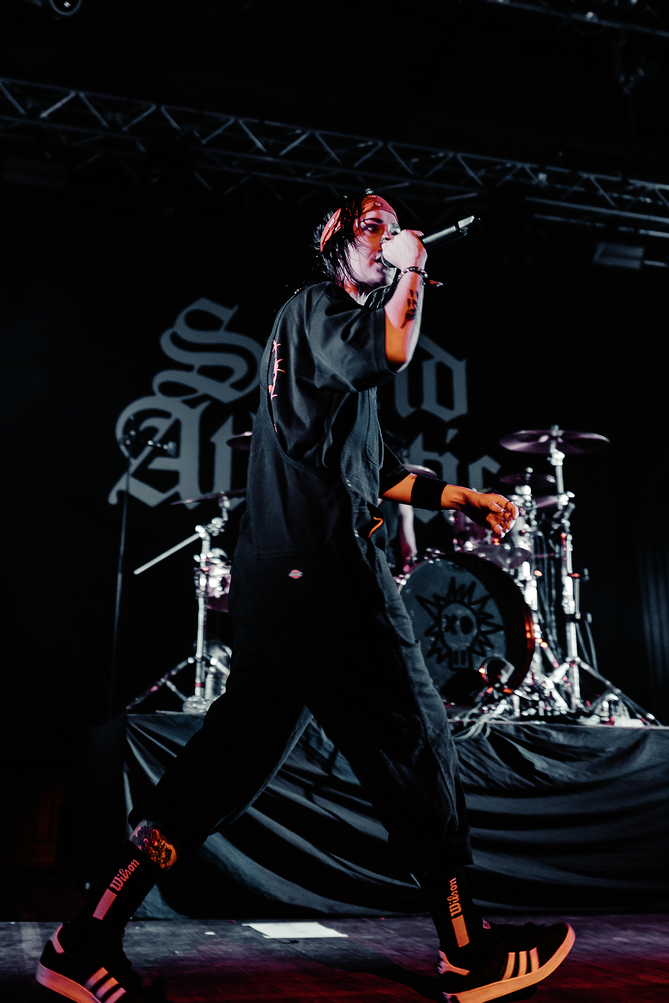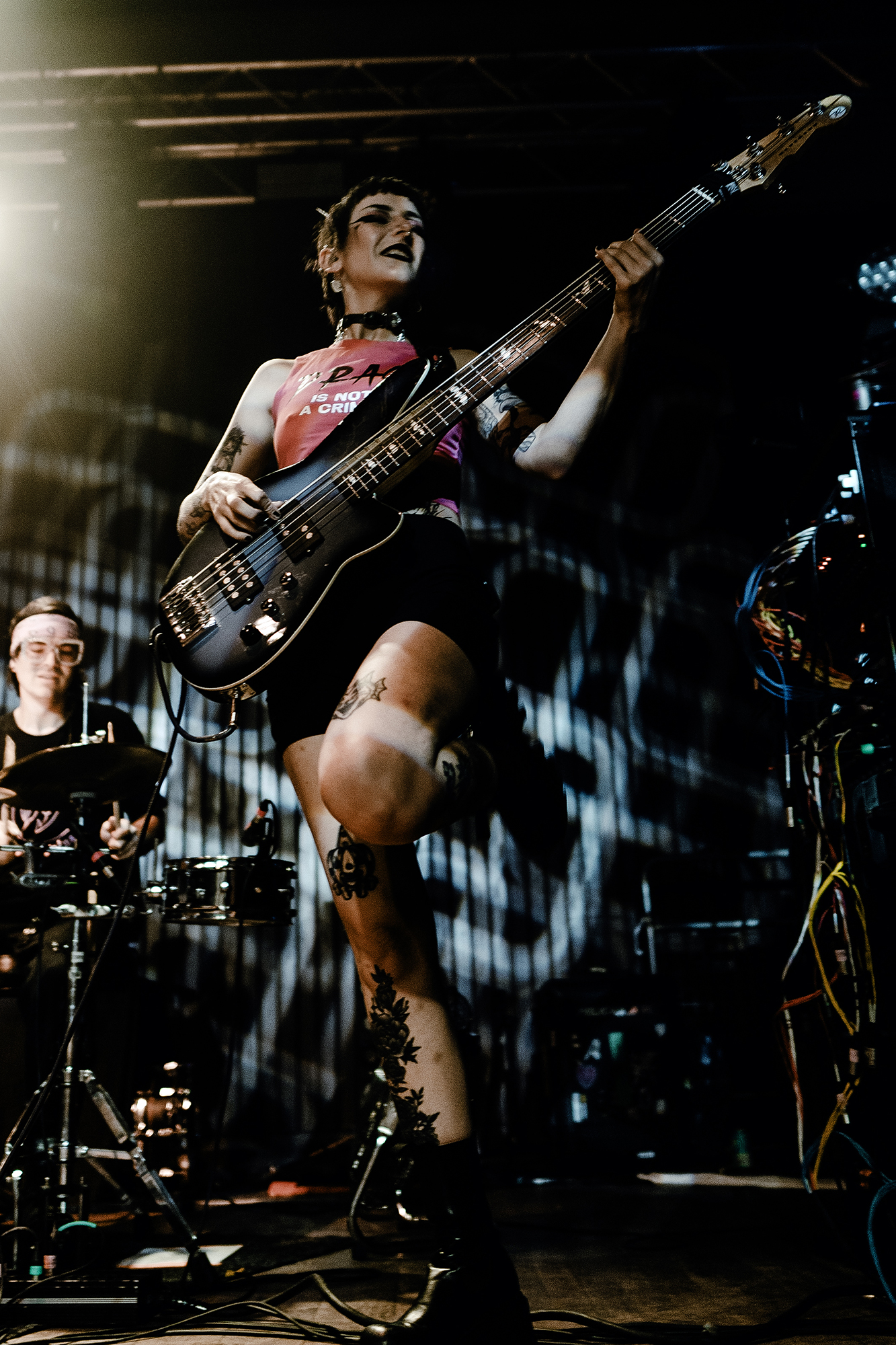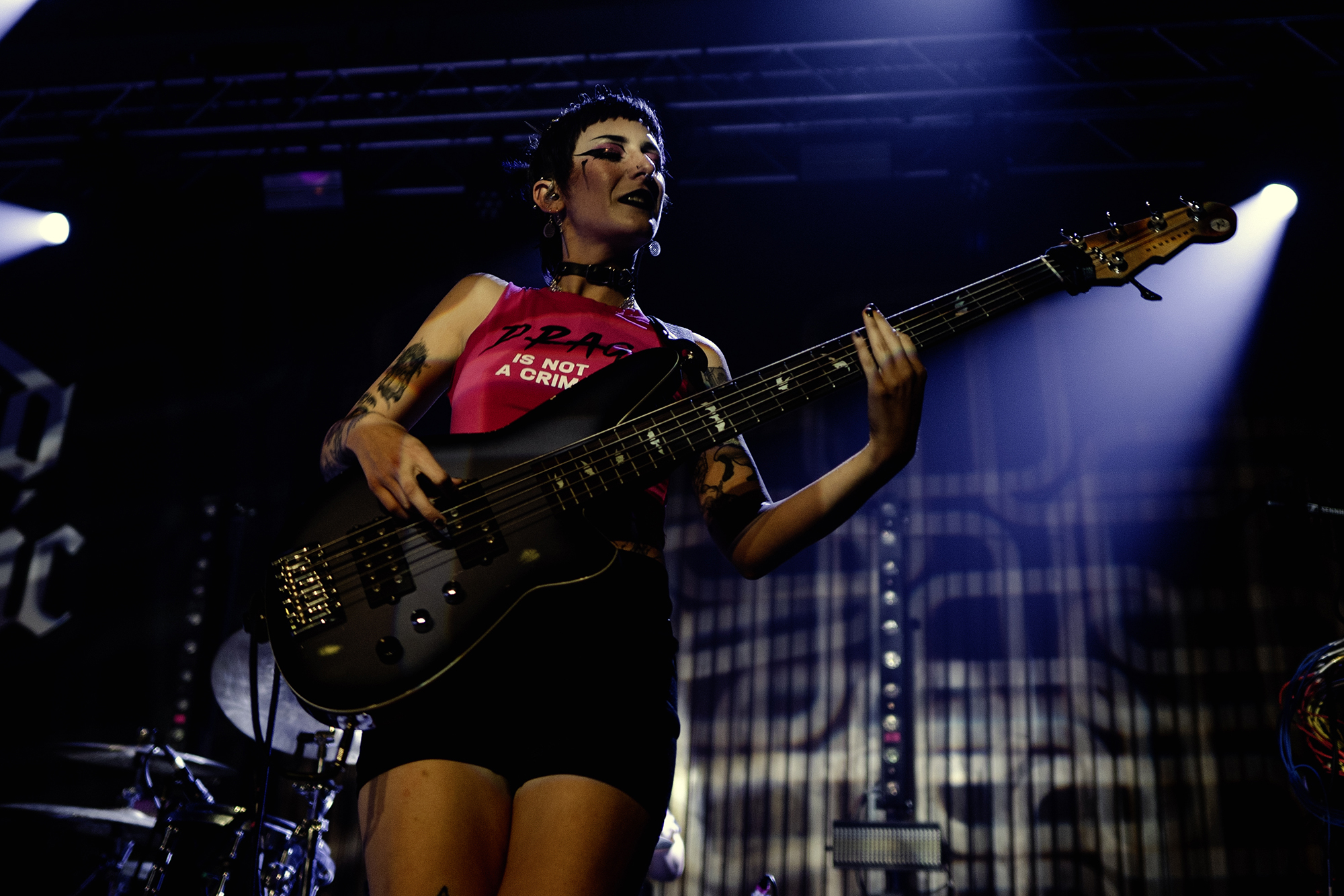 Just after half nine, the lights went down with a voiceover delivering an Alan Watts quote “A person who thinks all the time has nothing to think about except thoughts. So, he loses touch with reality and lives in a world of illusions” before frontwoman Bonnie Fraser took to the stage with the rest of the band opening with the atmospheric WAKE UP-SIT DOWN-SHUT UP which instantly set the tone for the rest of the night. From then on, they barrelled through their high octane set without missing a beat. Enormous pits and crowd surfing was elicited during the one-two punch of tracks KISSIN’ KILLER COBRAS and WARZ0NE which were also stand out tracks from the new album, it was great to see they were just as good live, if not better than they were on the album. The band’s presence, particularly Fraser’s was magnetic throughout, effortlessly commanding the audience from start to finish as they demonstrated their ability to switch between heavier, breakdown-filled songs and more pop-punk, melodic tracks showed impressive versatility throughout the entire show.