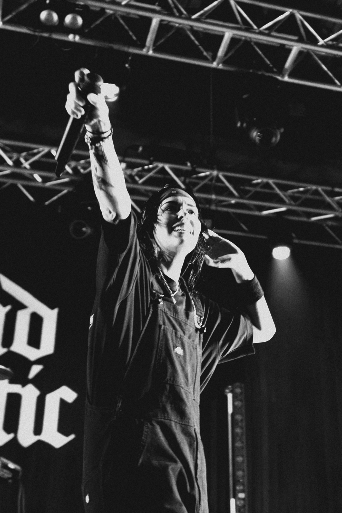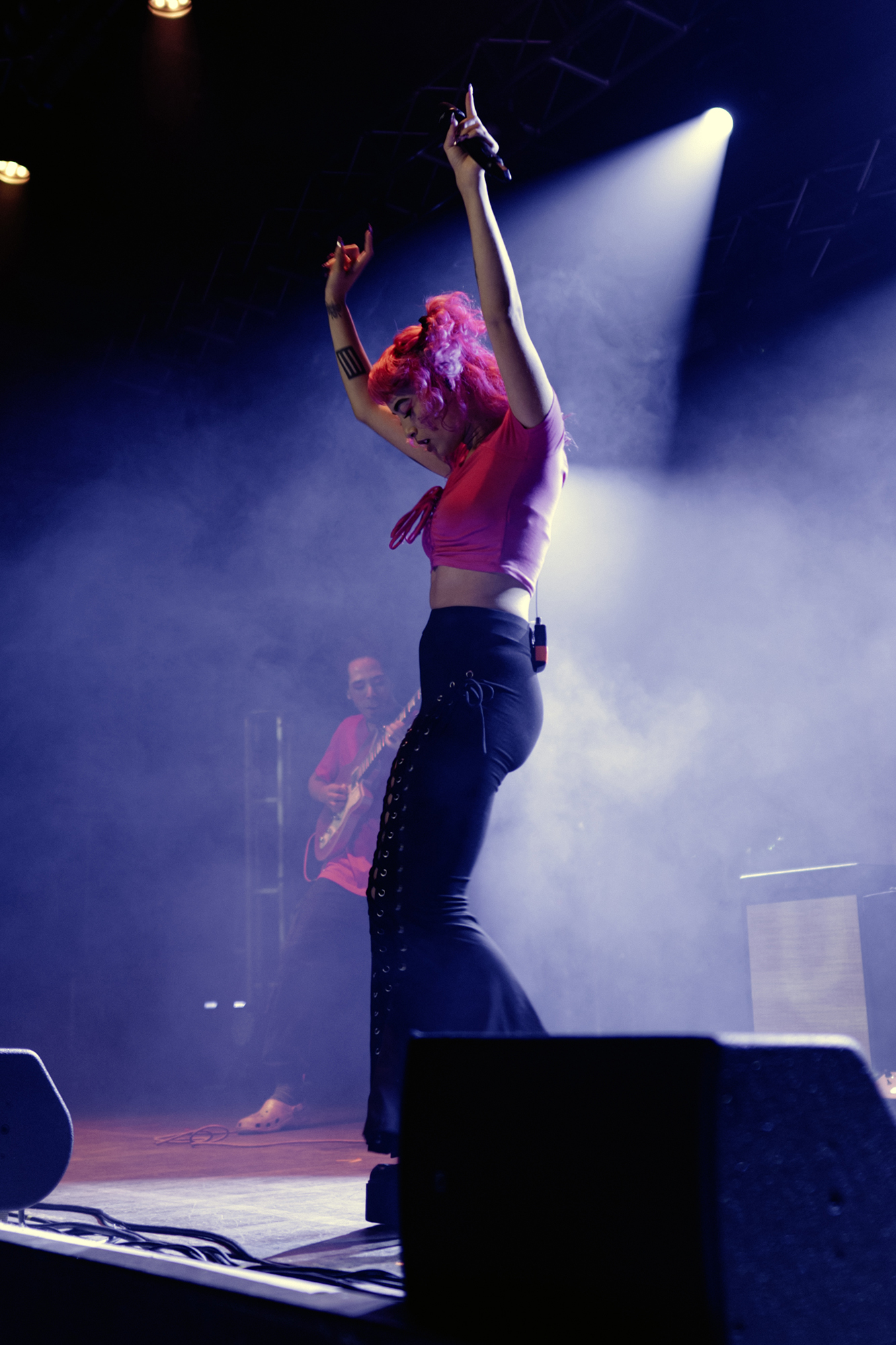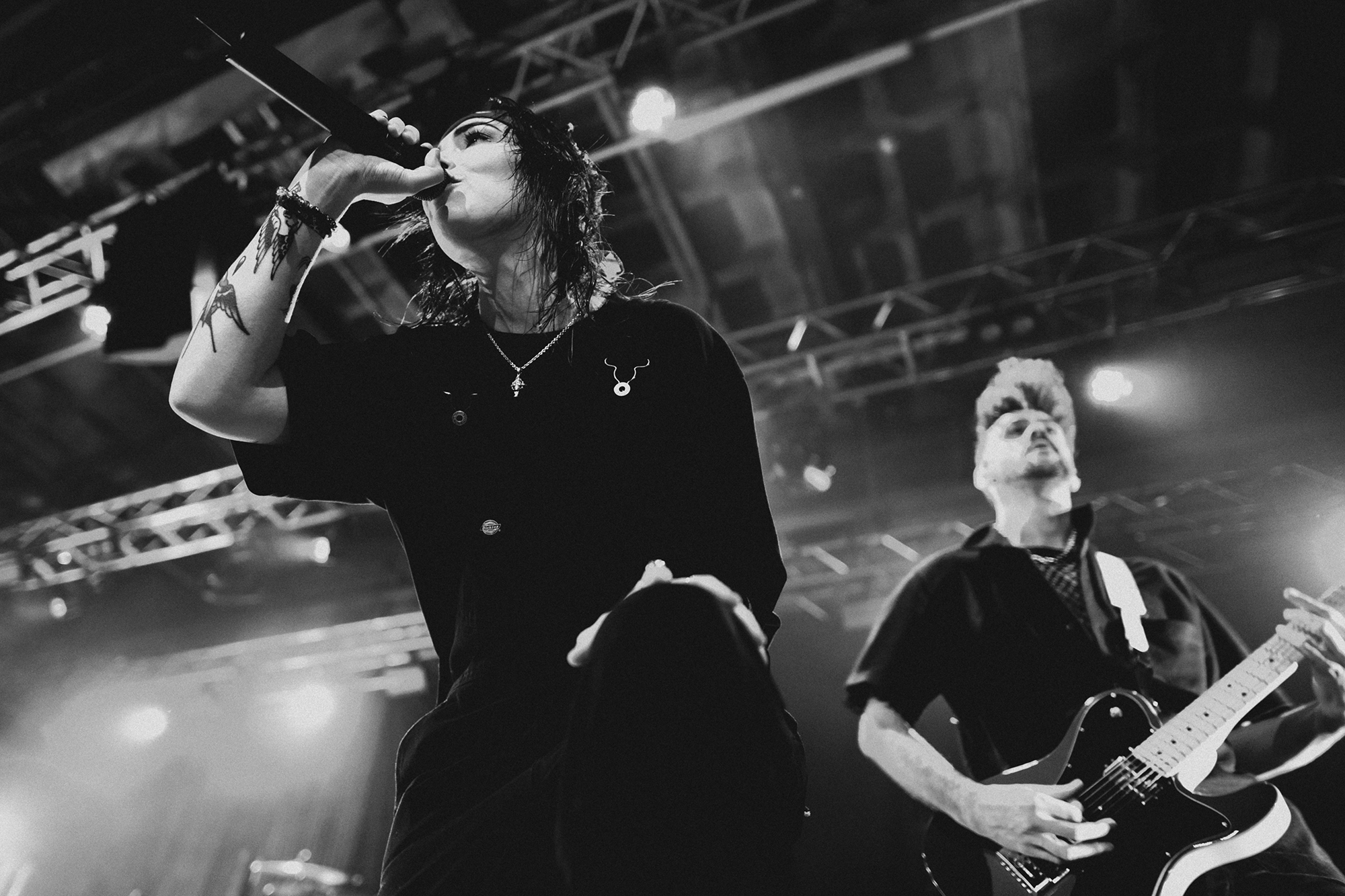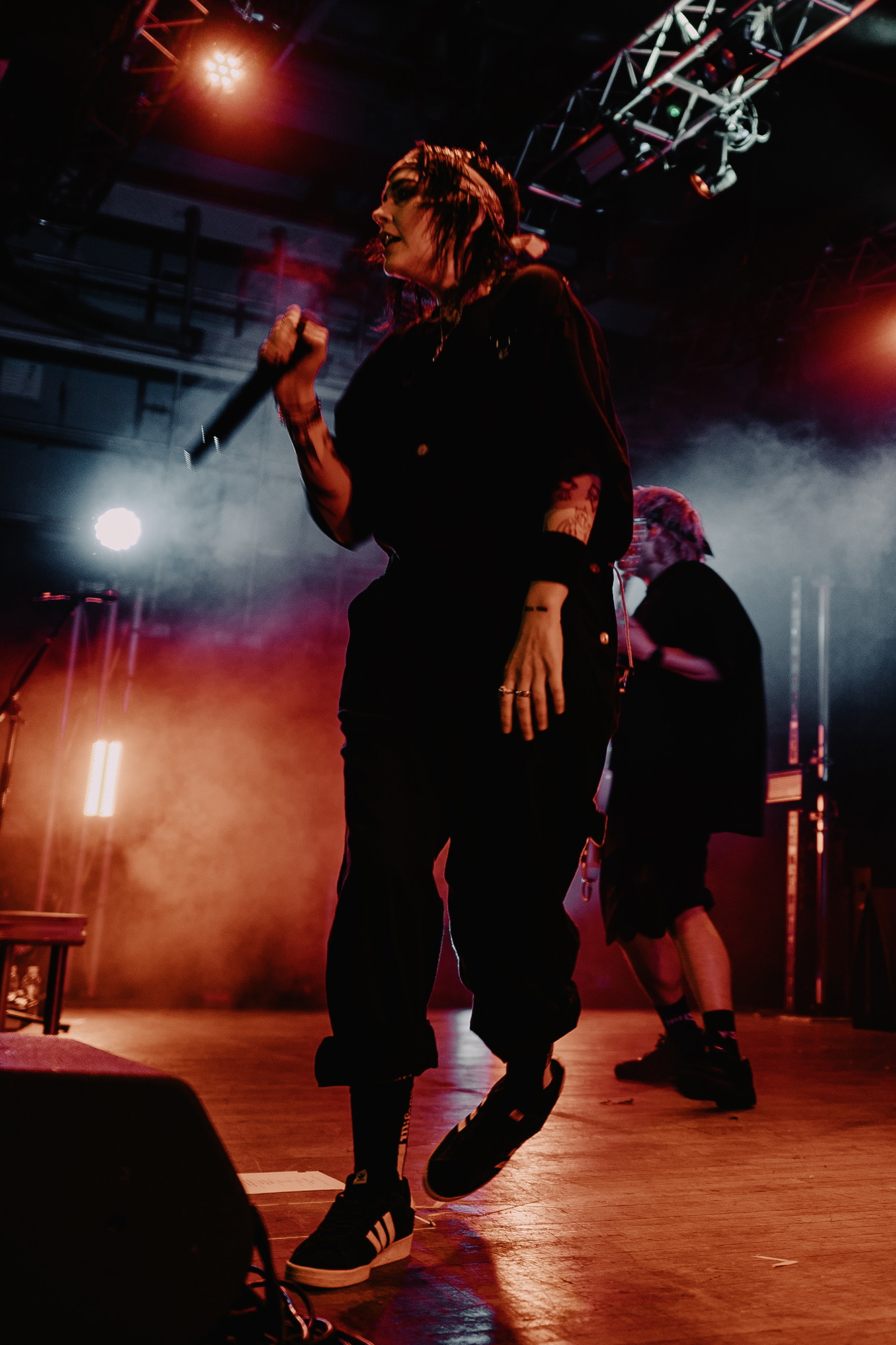 Just after half nine, the lights went down with a voiceover delivering an Alan Watts quote “A person who thinks all the time has nothing to think about except thoughts. So, he loses touch with reality and lives in a world of illusions” before frontwoman Bonnie Fraser took to the stage with the rest of the band opening with the atmospheric WAKE UP-SIT DOWN-SHUT UP which instantly set the tone for the rest of the night. From then on, they barrelled through their high octane set without missing a beat. Enormous pits and crowd surfing was elicited during the one-two punch of tracks KISSIN’ KILLER COBRAS and WARZ0NE which were also stand out tracks from the new album, it was great to see they were just as good live, if not better than they were on the album. The band’s presence, particularly Fraser’s was magnetic throughout, effortlessly commanding the audience from start to finish as they demonstrated their ability to switch between heavier, breakdown-filled songs and more pop-punk, melodic tracks showed impressive versatility throughout the entire show.