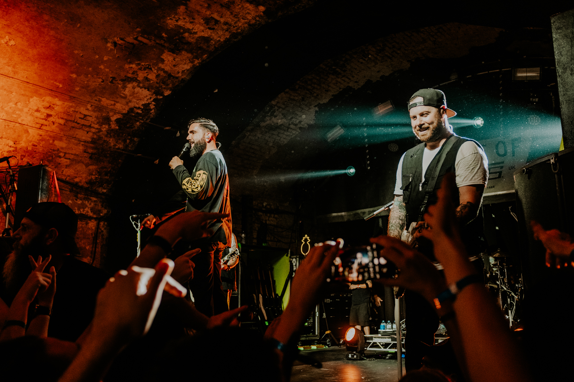 Before raining all terror on the stages of Reading and Leeds that weekend, the Ocala band offered a free intimate show to an 800-capacity room that was already promising to be true chaos in its finest form. House Of Vans in Waterloo opened its doors to an outstanding hoard of fans who’d been camped out for five+ hours in anticipation for the show. Inside exhausted fans were rejuvenated with an enticing set from BBC Radio 1 Rock Show’s Daniel P. Carter who mastered the DJ tracks with some rock and metal bangers and other interesting remixes. After that resurgence of life fans packed the venue to its brim as A DAY TO REMEMBER stormed the stage with a meaty serving of 2nd Sucks that amassed the pit warriors eager to launch into turmoil.