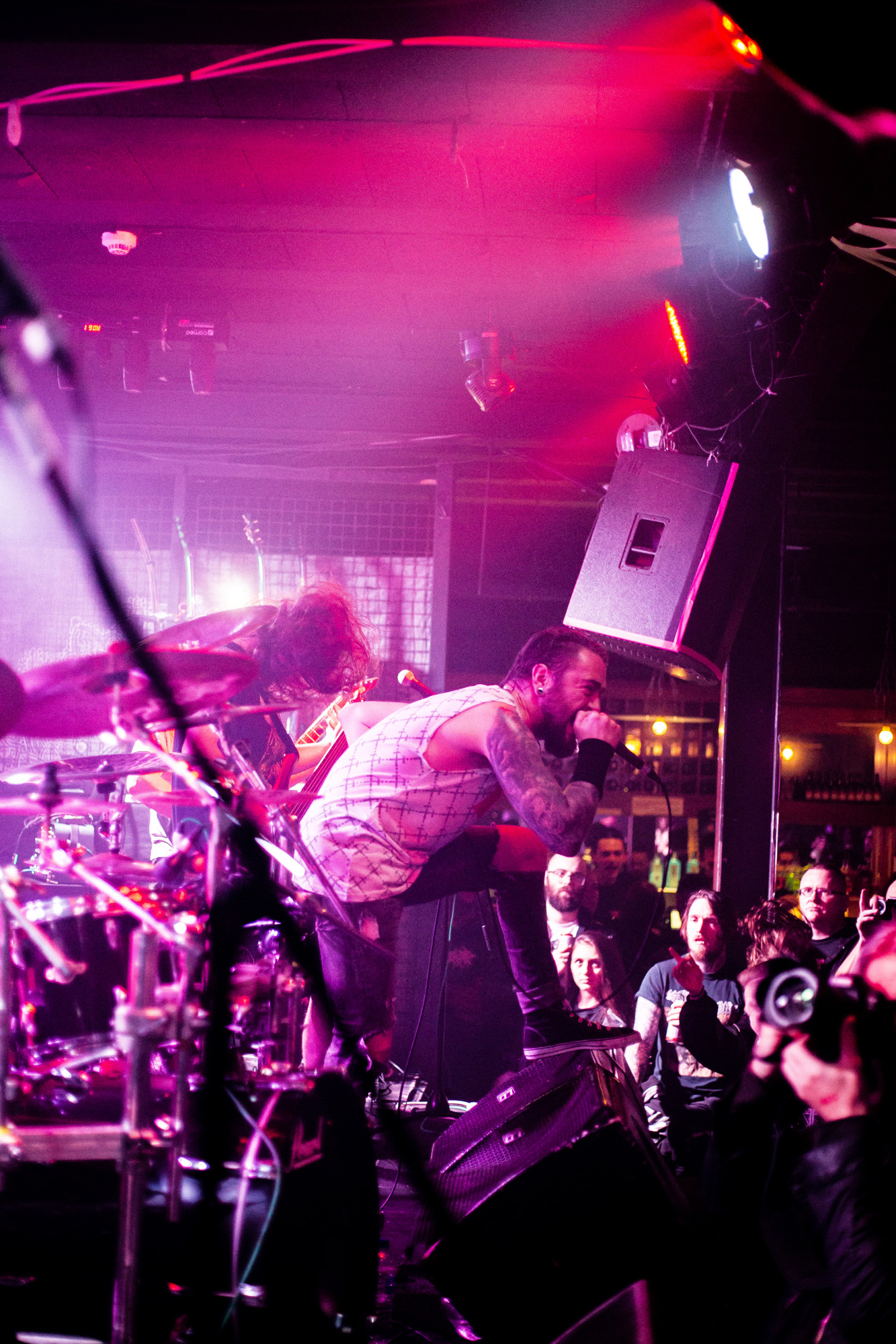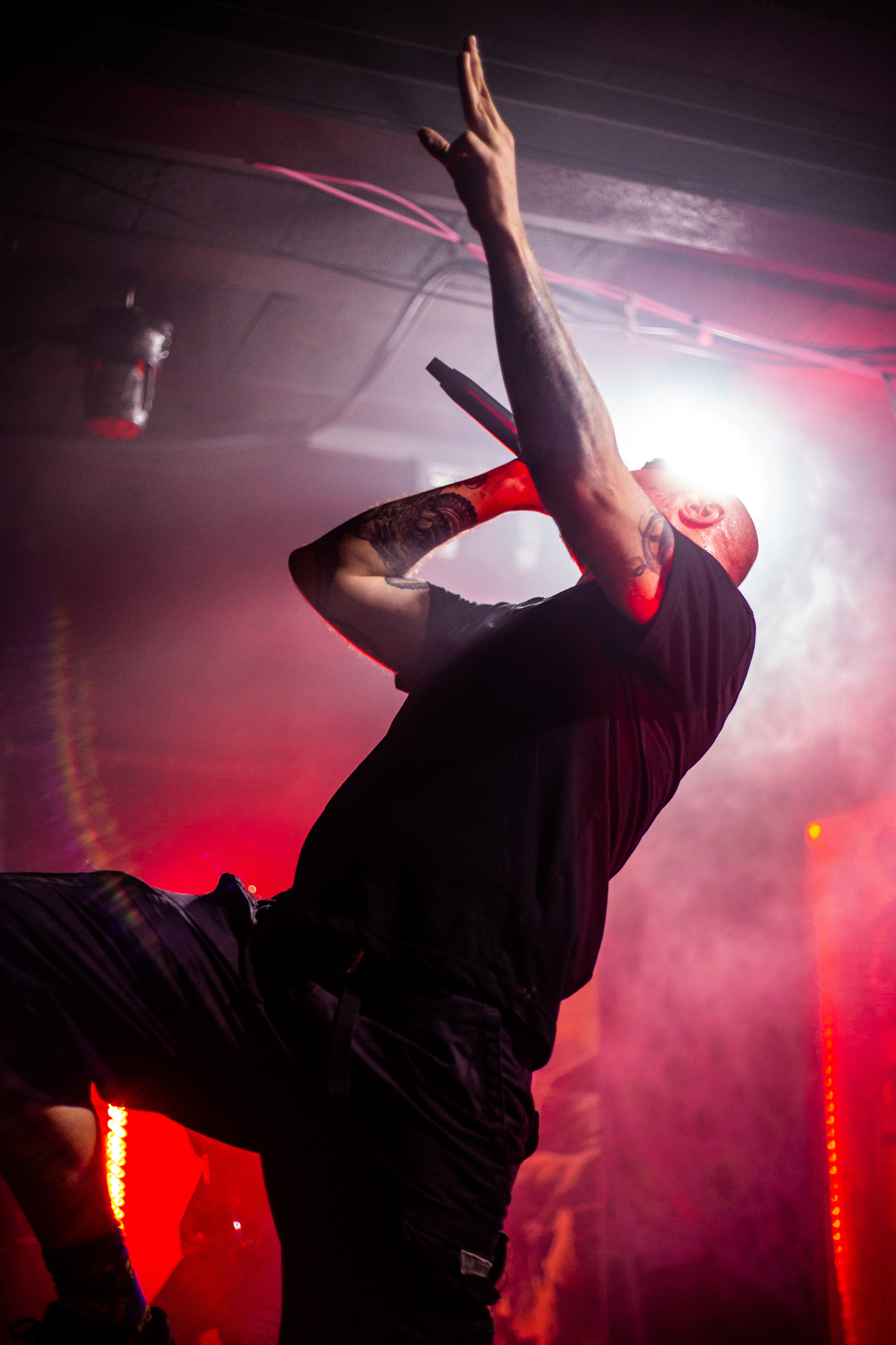 Before a quick speech from frontman Sven de Caluwe dedicating the track to Jesus Christ, before following up with “he can go fuck himself”, the band launched into Divine Impediment. The intensity of the verses perfectly offset the driving half-time sections, and the room responded with their own display of brutal energy. The immense technicality of the guitar solo forced many people to stop participating in the pit for a short interlude while they made an attempt to keep up with the riff on their air guitars. Despite their rapidly depleting energy, the crowd had no respite as immediately following this came Termination Redux from their 2016 EP of the same name. With the packed venue already bursting at the seams, everyone in the room seemed completely focussed on matching the band’s infectious energy and giving their all to top the chaos caused on each preceding track.