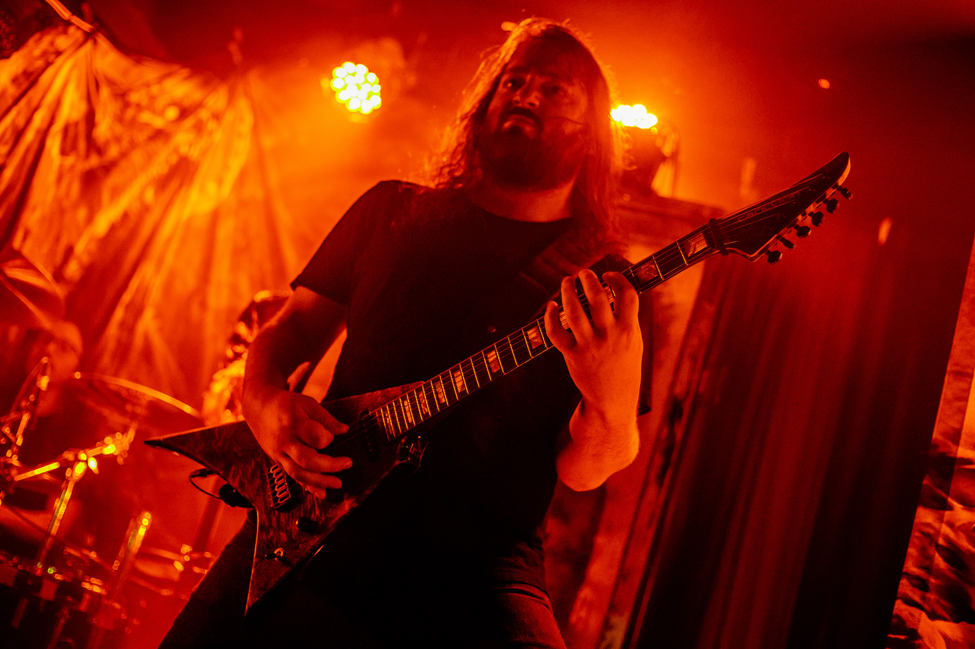 The direct support slot for this tour was occupied by Québécois technical death metal outfit CRYPTOPSY. Seeking to expand on the frenzy whipped up by the preceding band, the Montrealers pulled out all the stops and played an eclectic mix of their expertly-crafted tracks, bursting with technicality, and plucked from their long and storied history as a band. No sooner than the band took to the stage, a brutal wall-of-death opened up, stretching from one side of the room to the other, with the wall savagely coming together upon the first blast beat. The energy in the room seemed to have started firmly at a ten, but despite all initial observations, the energy was rapidly growing with each passing song.