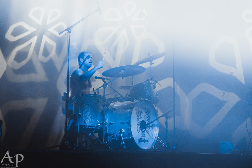 This blend of musical styles has clearly won them over plenty of fans. Whilst they are very well liked in the metal world, it is clear that’s not where their only fanbase comes from, and the venue is packed out with fans from diverse musical backgrounds. The band trust their supporters enough to include three as-yet-unreleased songs in the setlist, as well as an interpretation of traditional Appalachian song Red Rocking Chair. These diversions from the familiar catalogue and the band’s propensity for extended forays into the quieter dynamics allow for occasional dips of the energy in the room. However, the foursome always bring it back home, and round off an engaging main set with the desert mysticism of Alabaster.