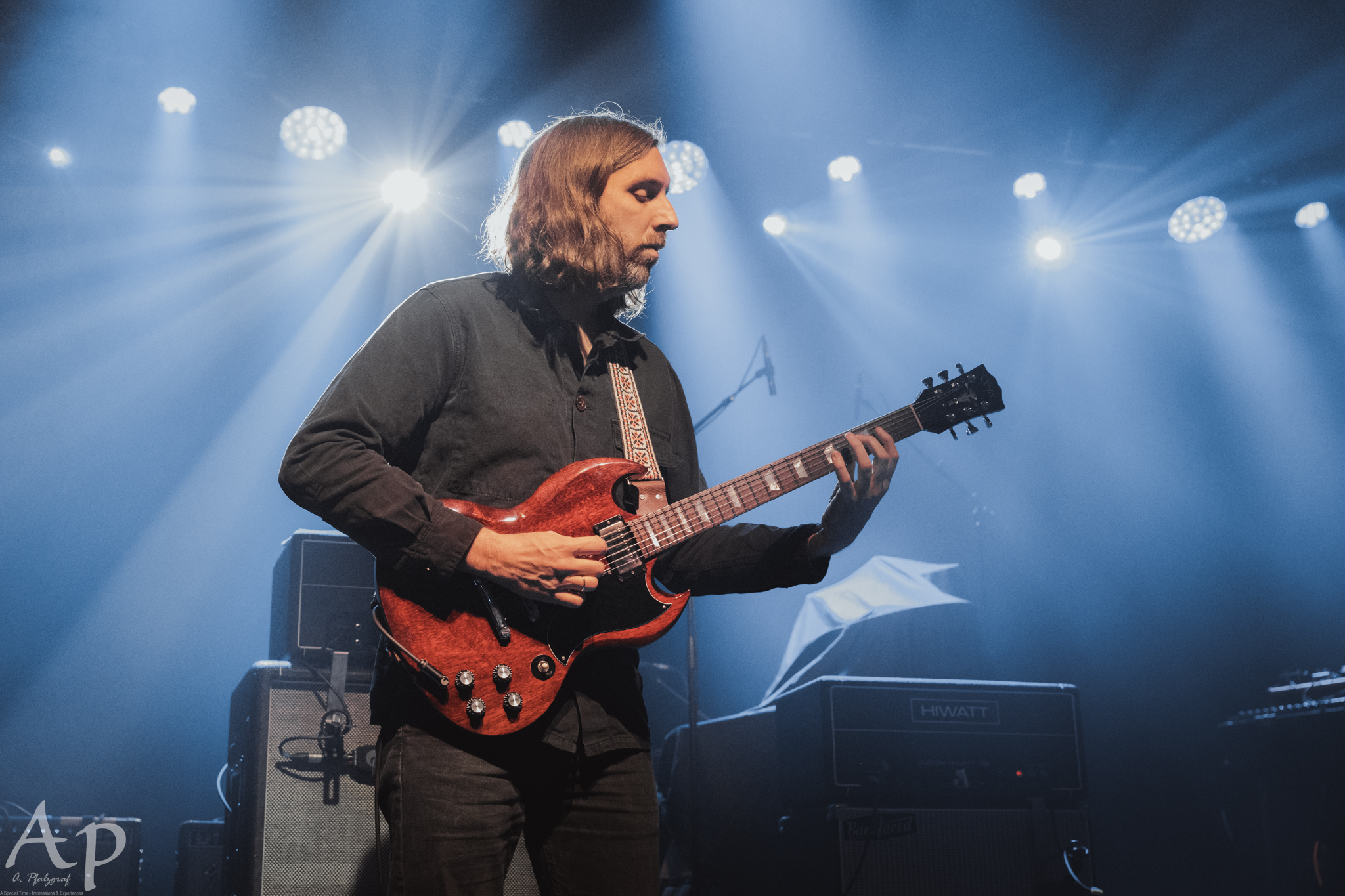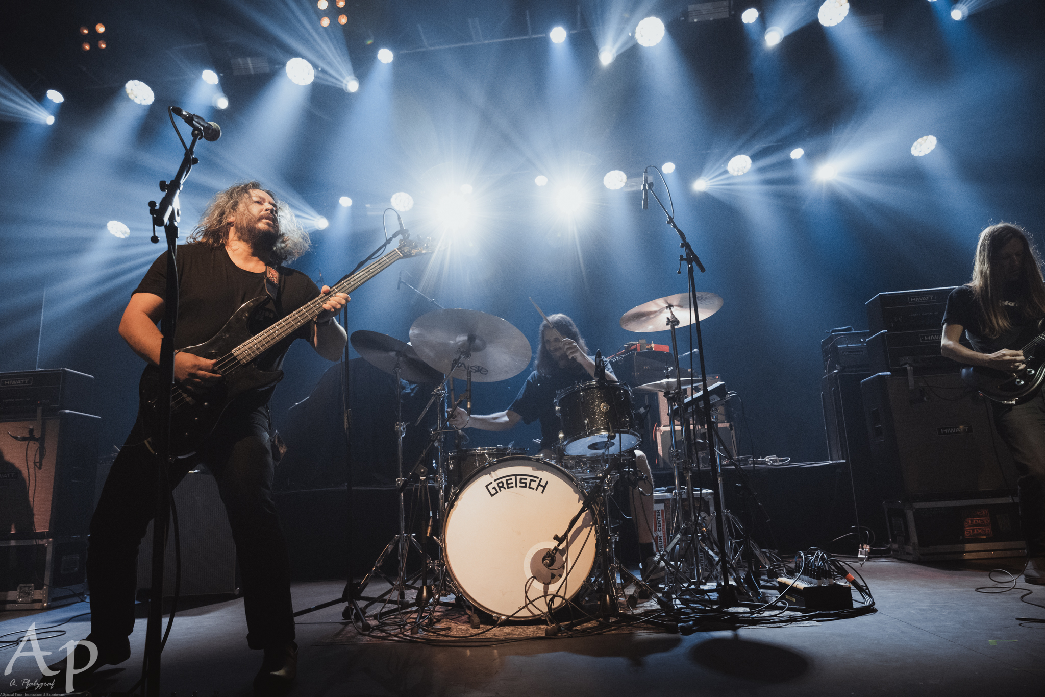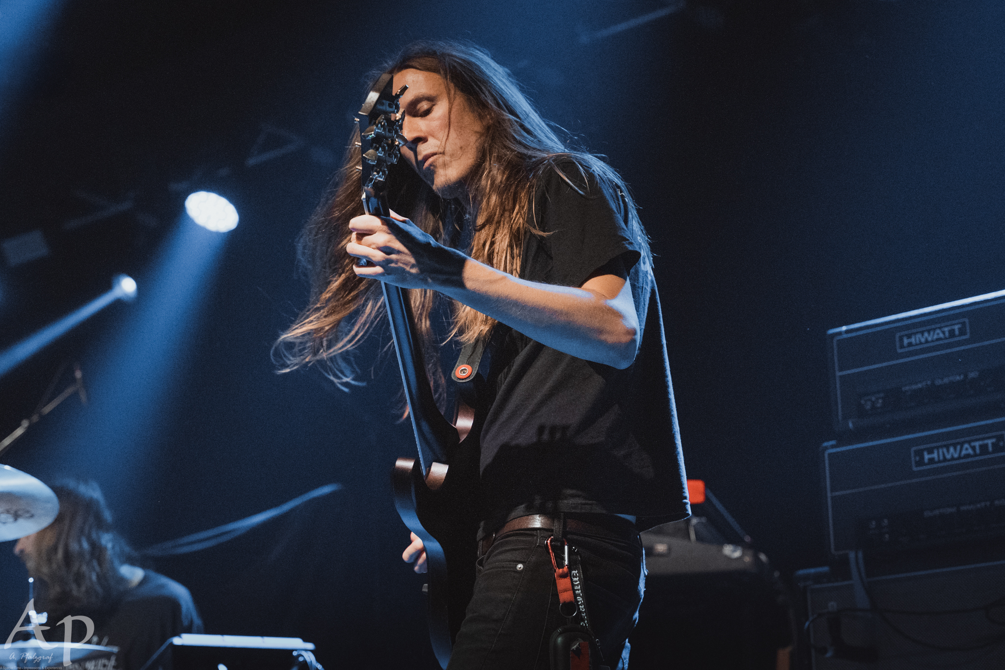 This blend of musical styles has clearly won them over plenty of fans. Whilst they are very well liked in the metal world, it is clear that’s not where their only fanbase comes from, and the venue is packed out with fans from diverse musical backgrounds. The band trust their supporters enough to include three as-yet-unreleased songs in the setlist, as well as an interpretation of traditional Appalachian song Red Rocking Chair. These diversions from the familiar catalogue and the band’s propensity for extended forays into the quieter dynamics allow for occasional dips of the energy in the room. However, the foursome always bring it back home, and round off an engaging main set with the desert mysticism of Alabaster.