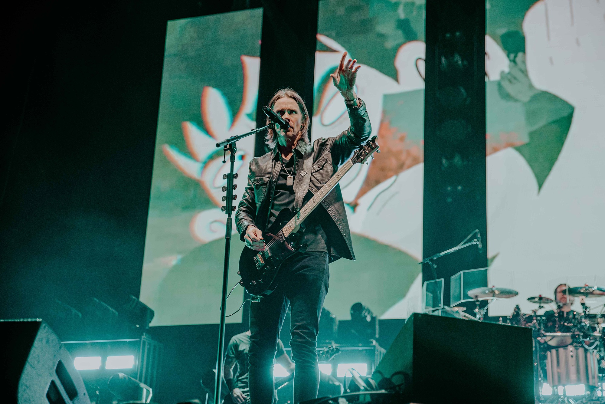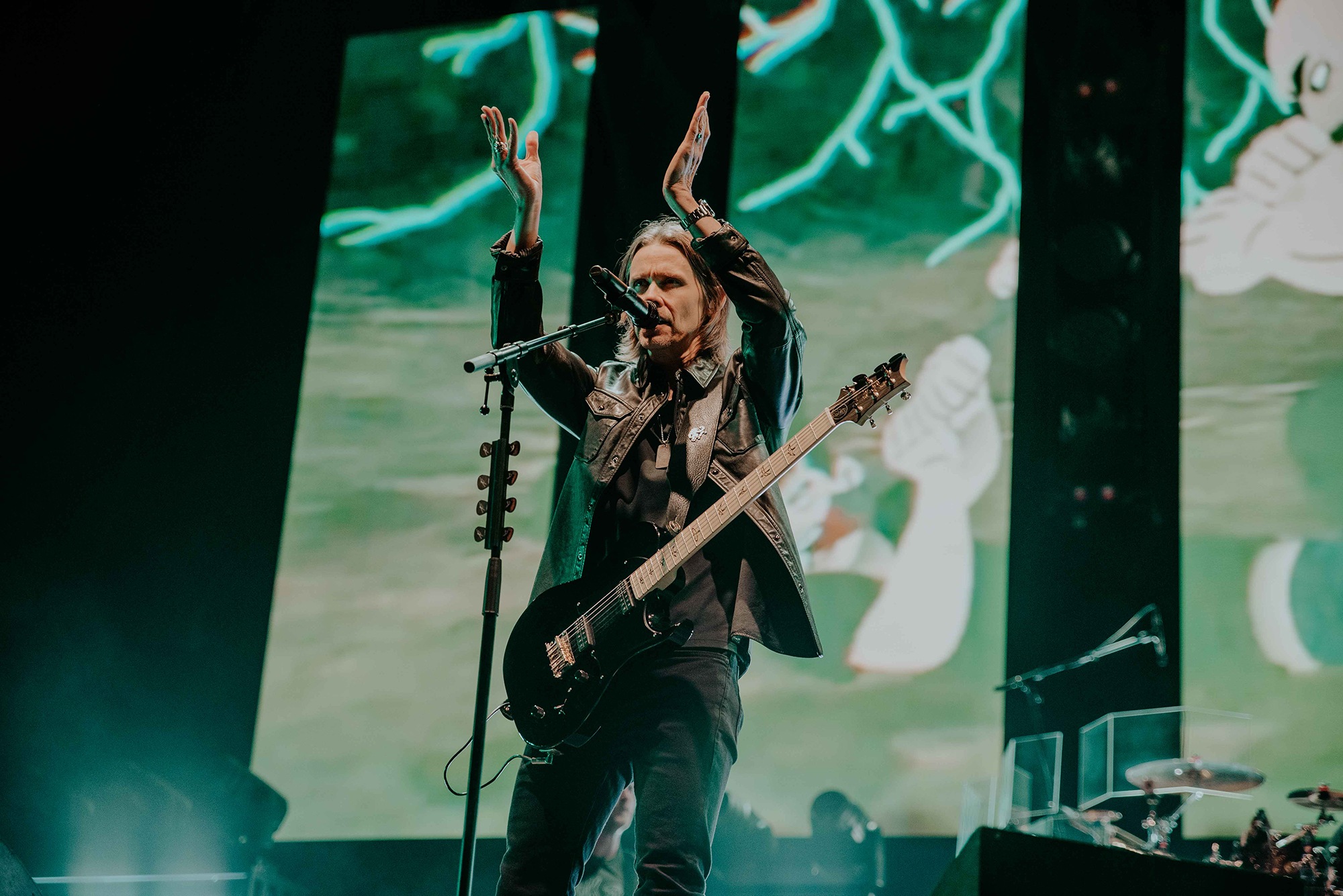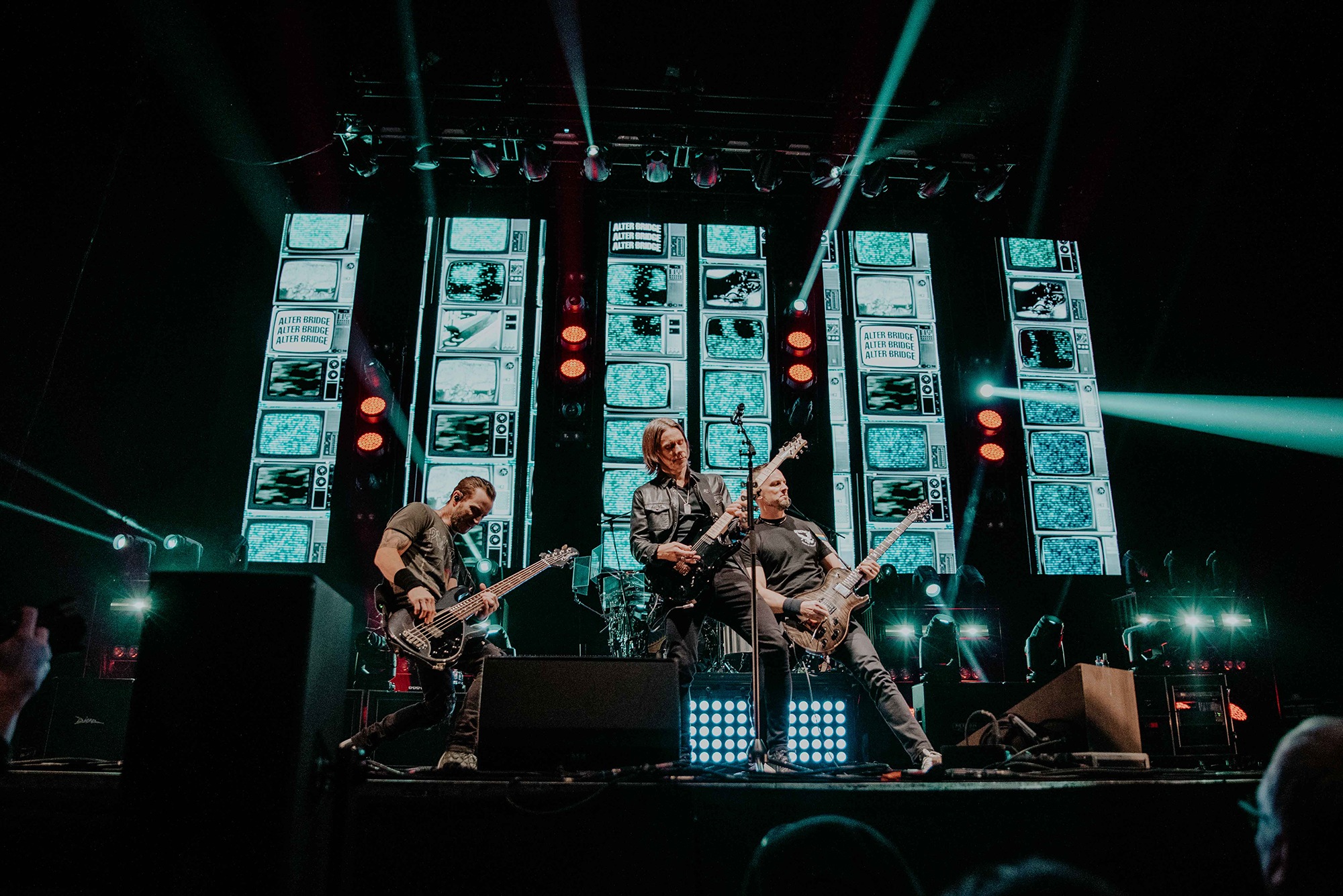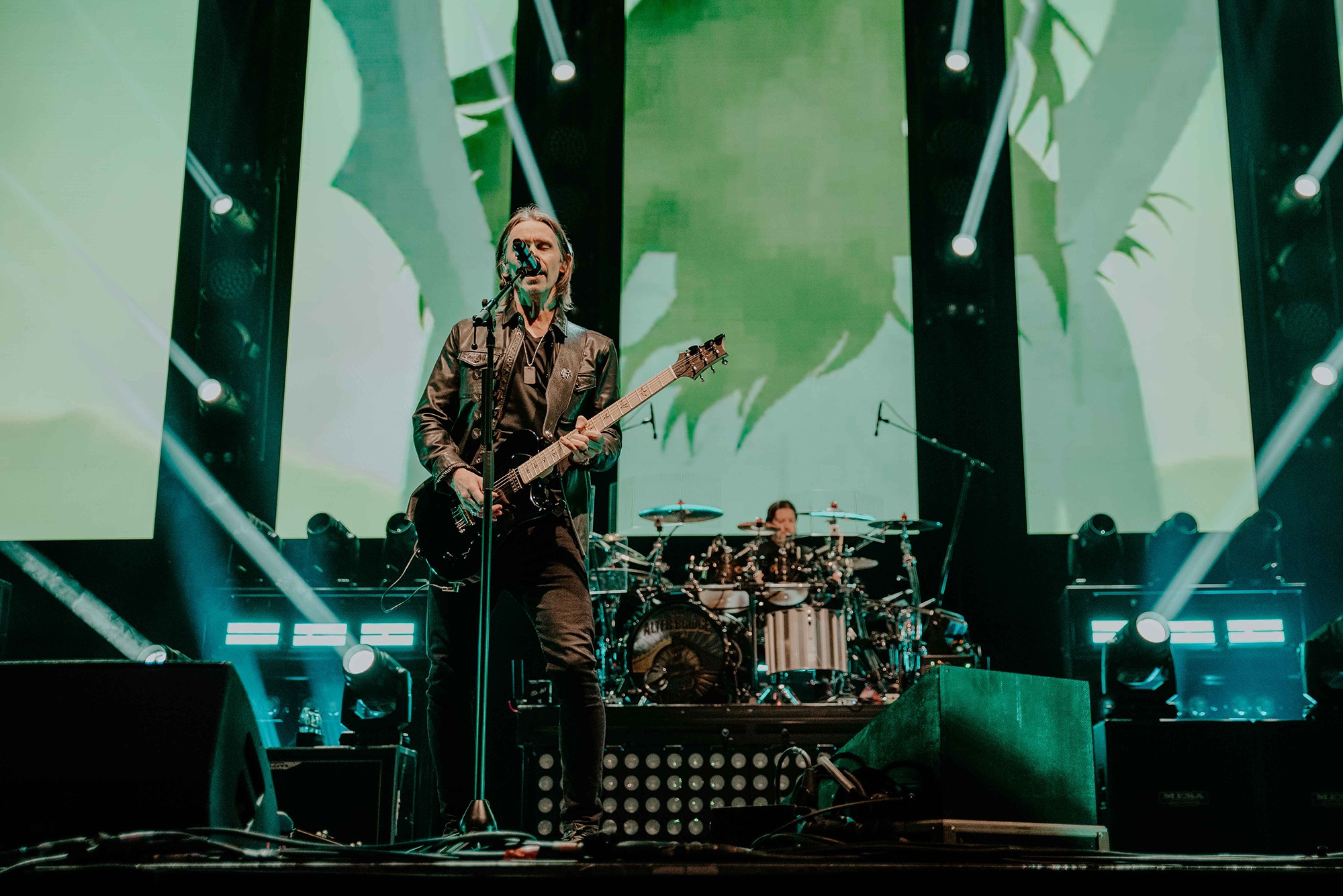 ALTER BRIDGE comes with the conundrum of how to fit a healthy mix of almost three decades of material into a conducive setlist. It wasn’t long until Ghost Of Days Gone By tugged at our heartstrings and nostalgia. Voices from the crowd soared into the ether, threatening to drown Kennedy out. Wheeling out Before Tomorrow Comes was an unexpected joy for many, the call of “We could be so much more than what we are” floating seamlessly into the sentiment of This Is War. Though not without Kennedy asking if anyone had actually heard Pawns & Kings yet. It was refreshing to be in the company of a band which was still unsure of their own popularity. Like critical acclaim and an arena at 75% capacity wouldn’t have given it away. By blending older cuts into newer, ALTER BRIDGE got to showcase how they have matured not only in their sound but in presentation also. The screens behind them lit up with slick animations peppered with imagery of themselves.