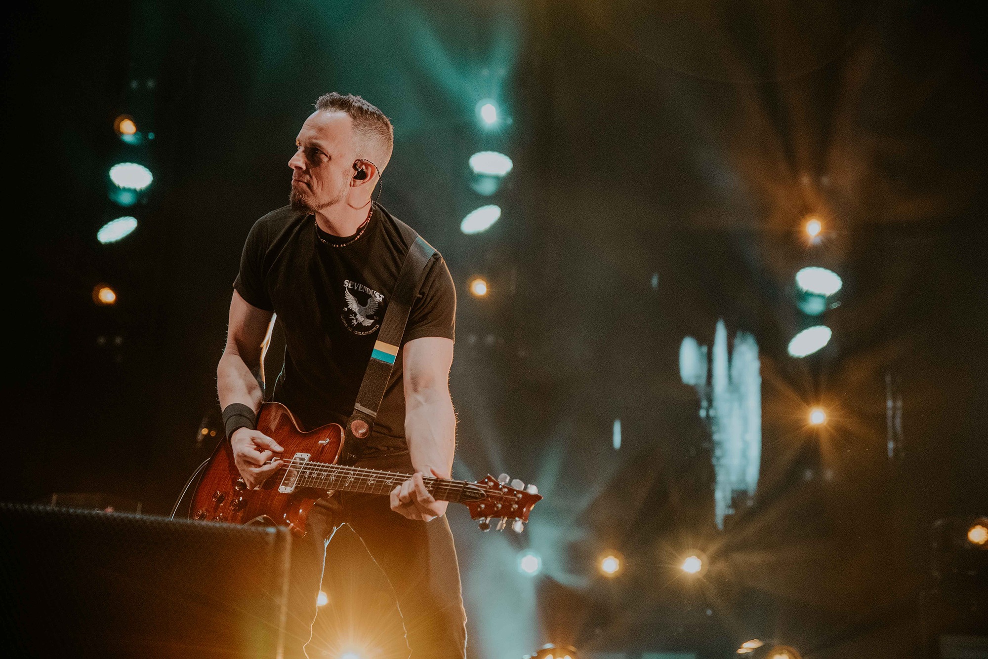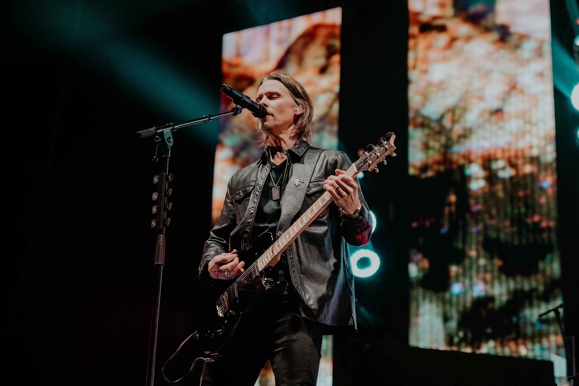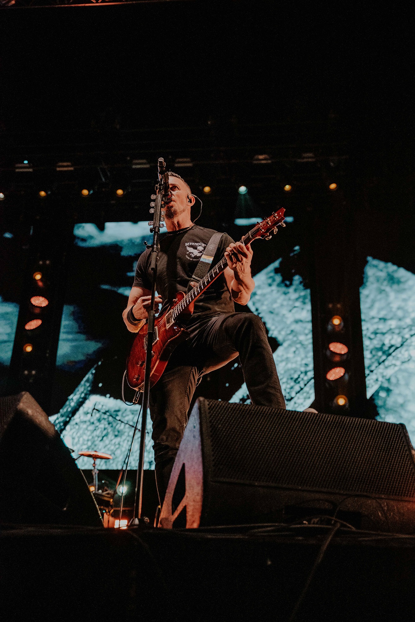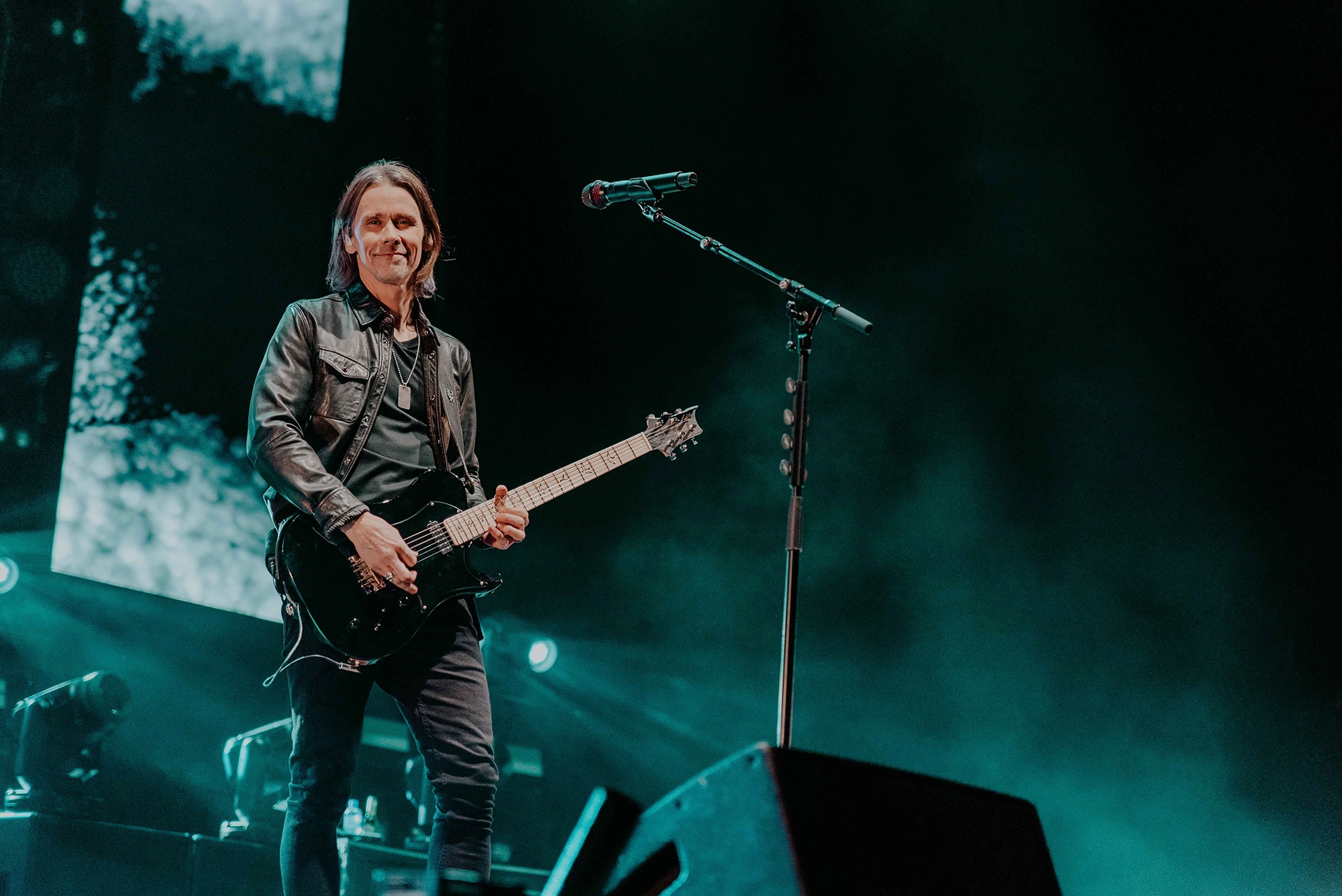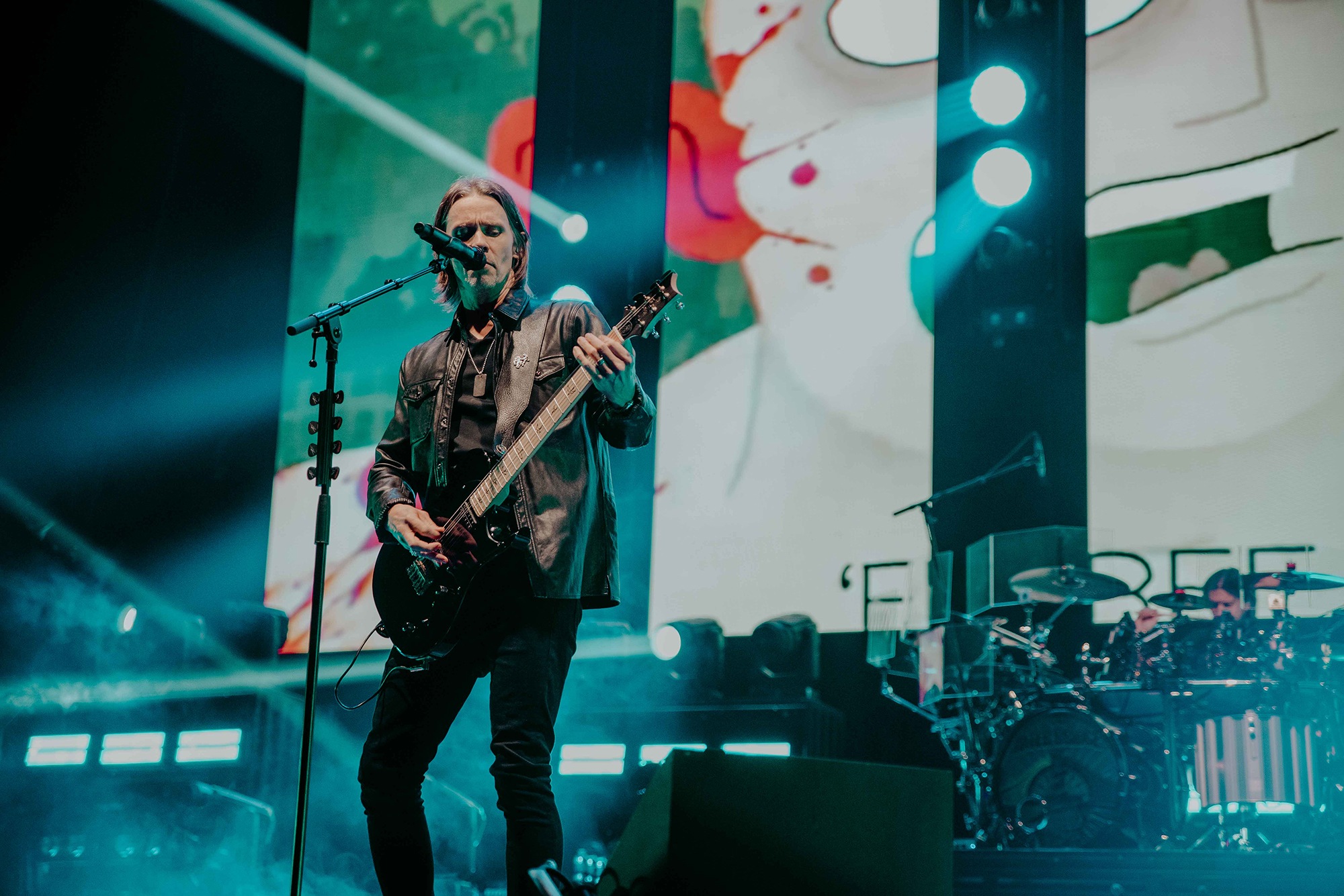 ALTER BRIDGE comes with the conundrum of how to fit a healthy mix of almost three decades of material into a conducive setlist. It wasn’t long until Ghost Of Days Gone By tugged at our heartstrings and nostalgia. Voices from the crowd soared into the ether, threatening to drown Kennedy out. Wheeling out Before Tomorrow Comes was an unexpected joy for many, the call of “We could be so much more than what we are” floating seamlessly into the sentiment of This Is War. Though not without Kennedy asking if anyone had actually heard Pawns & Kings yet. It was refreshing to be in the company of a band which was still unsure of their own popularity. Like critical acclaim and an arena at 75% capacity wouldn’t have given it away. By blending older cuts into newer, ALTER BRIDGE got to showcase how they have matured not only in their sound but in presentation also. The screens behind them lit up with slick animations peppered with imagery of themselves.