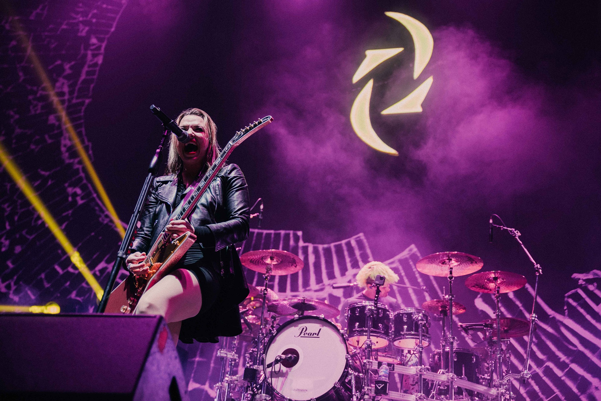 With Bombshell being an anthem for those identifying as female, Hale further cemented her status as a present day icon in the rock and metal world. Adoring fans embraced the moment to feel their femininity while Mine allowed them to do the same with their primal sexuality. Mine’s riffs simply sizzled over Arjay Hale’s pounding beats. The real jewel of the set came with the ballad Familiar Taste Of Poison. The complete opposite to the ferocious growling or screaming we had been getting all evening, Hale’s soul-filled vocals were a joy to take in which left us wondering why there wasn’t more of that on display. It can be argued that this was Hale’s, and indeed the band’s, performance of the evening. Everything from this older cut had been mixed well and created an atmospheric number which became a talking point for many after the show’s end.