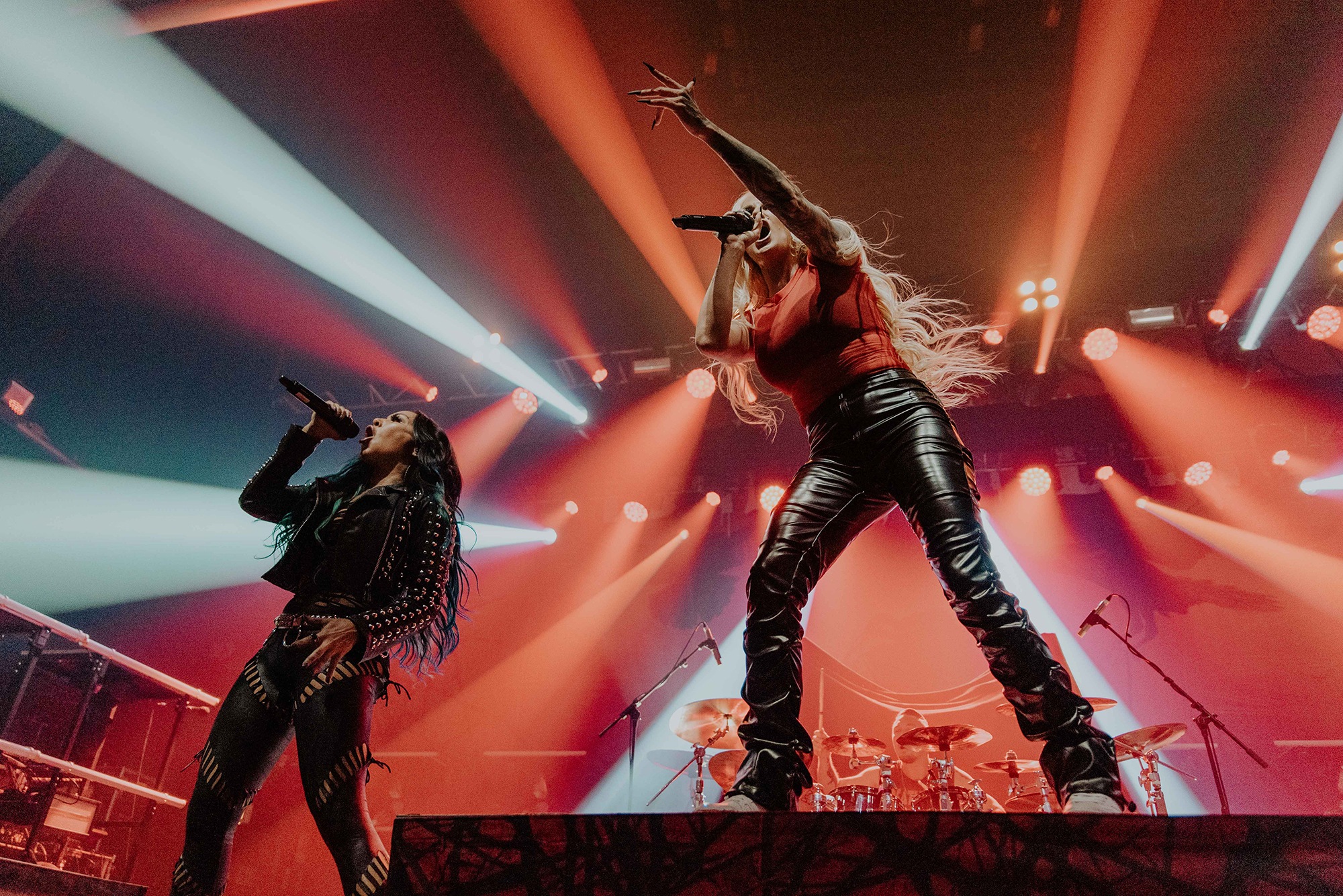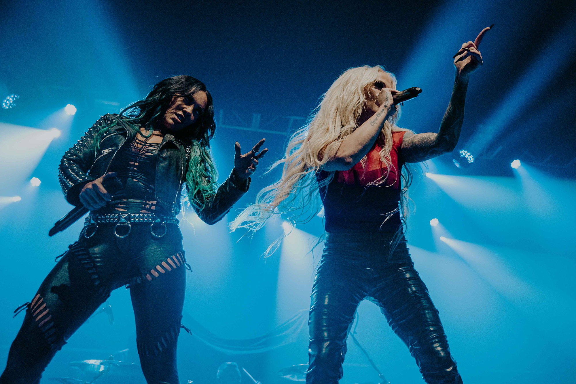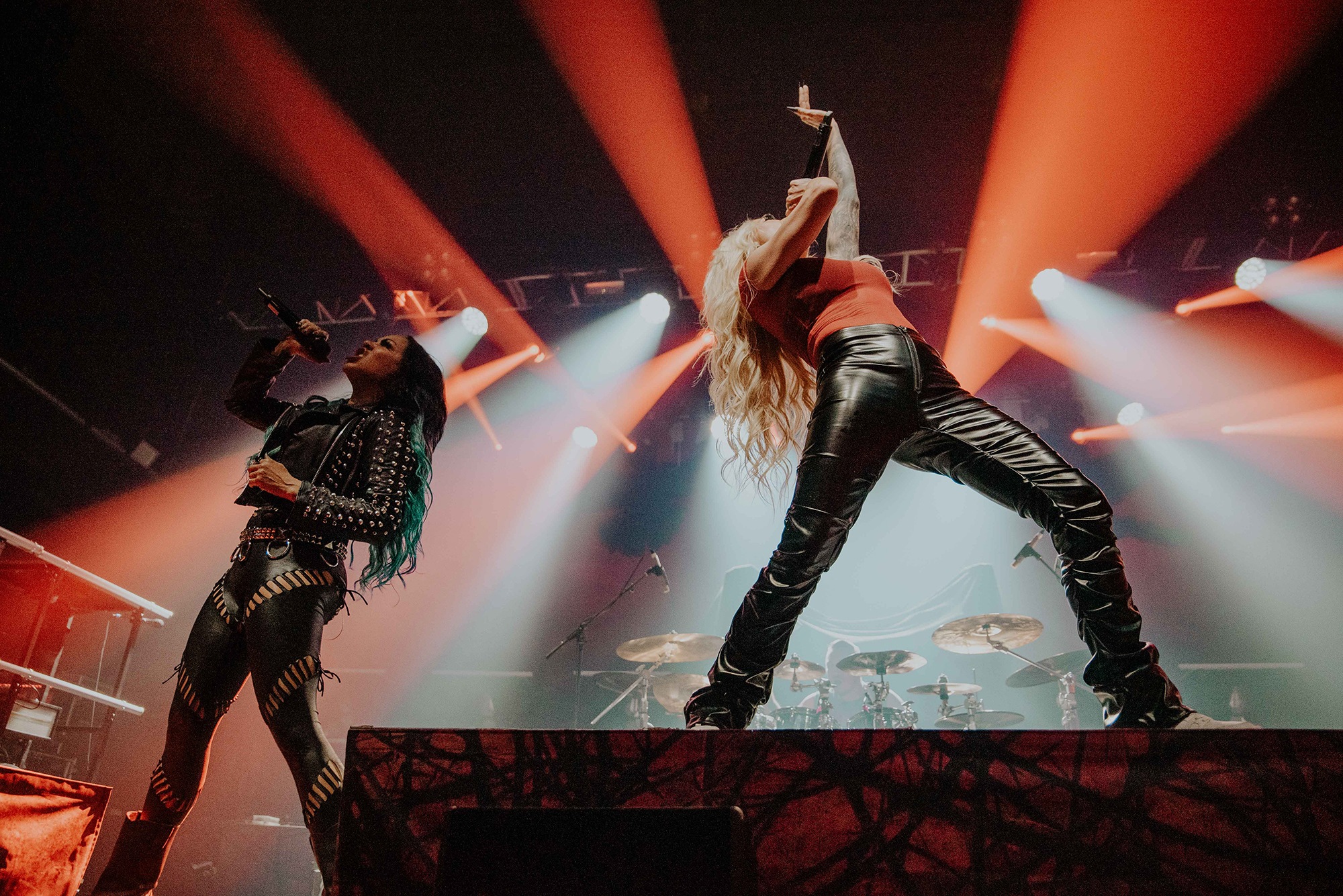 Say what you will about openers BUTCHER BABIES‘ music (and indeed, their edgelord, “that’s bait” name) but the simple fact is the front rows love them. In spite of their twin vocal spectacle from Heidi Shepherd and Carla Harvey, they’re mixed bafflingly low and often get buried under the drumming, though that does disguise the often thin melodic singing that veers close to off key at times. The nu-metal tinged groove is derivative and uninspired and they certainly lean hard into the two vocalist approach and the spectacle that entails. But even when your riffs are utterly forgettable, the crowd reaction speaks for itself – though the less said about the ill-advised, cringeworthy cover of rapper SAWEETIE‘s Best Friend, the better.Â
