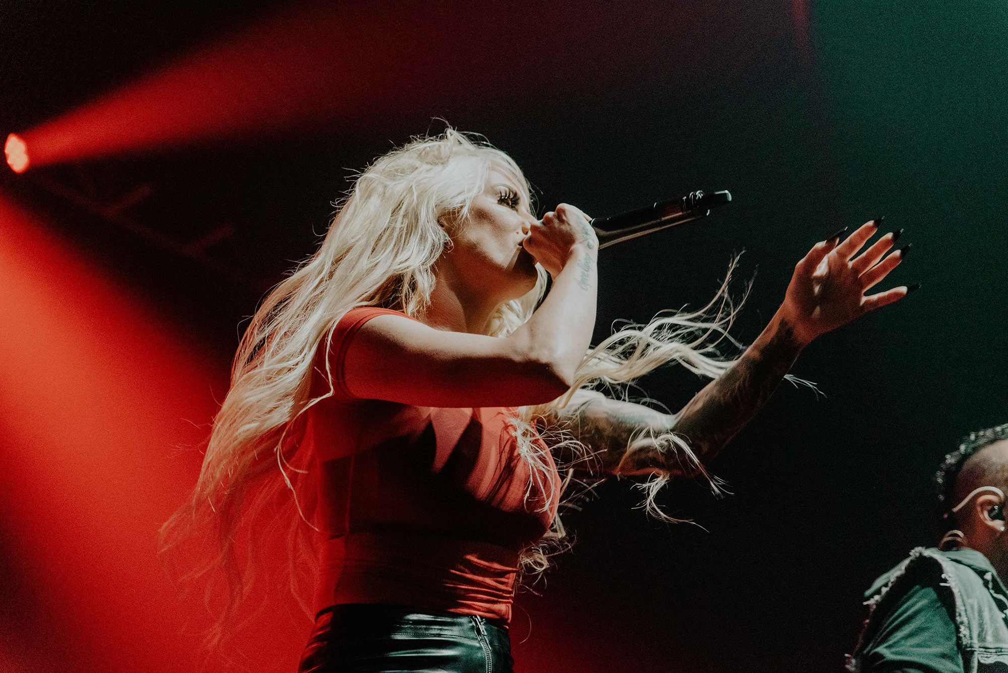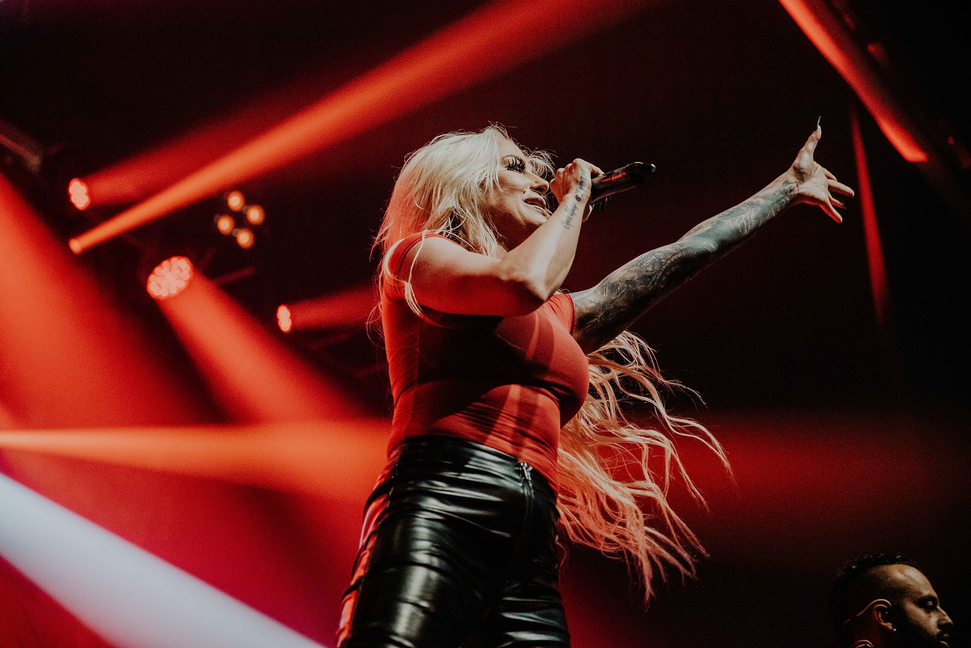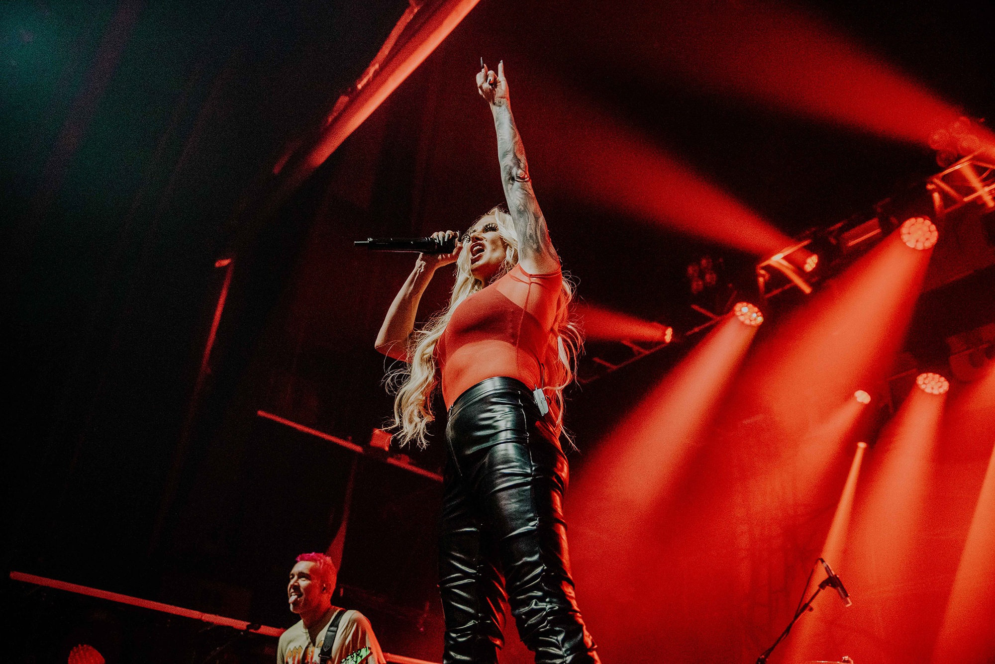 Say what you will about openers BUTCHER BABIES‘ music (and indeed, their edgelord, “that’s bait” name) but the simple fact is the front rows love them. In spite of their twin vocal spectacle from Heidi Shepherd and Carla Harvey, they’re mixed bafflingly low and often get buried under the drumming, though that does disguise the often thin melodic singing that veers close to off key at times. The nu-metal tinged groove is derivative and uninspired and they certainly lean hard into the two vocalist approach and the spectacle that entails. But even when your riffs are utterly forgettable, the crowd reaction speaks for itself – though the less said about the ill-advised, cringeworthy cover of rapper SAWEETIE‘s Best Friend, the better.Â