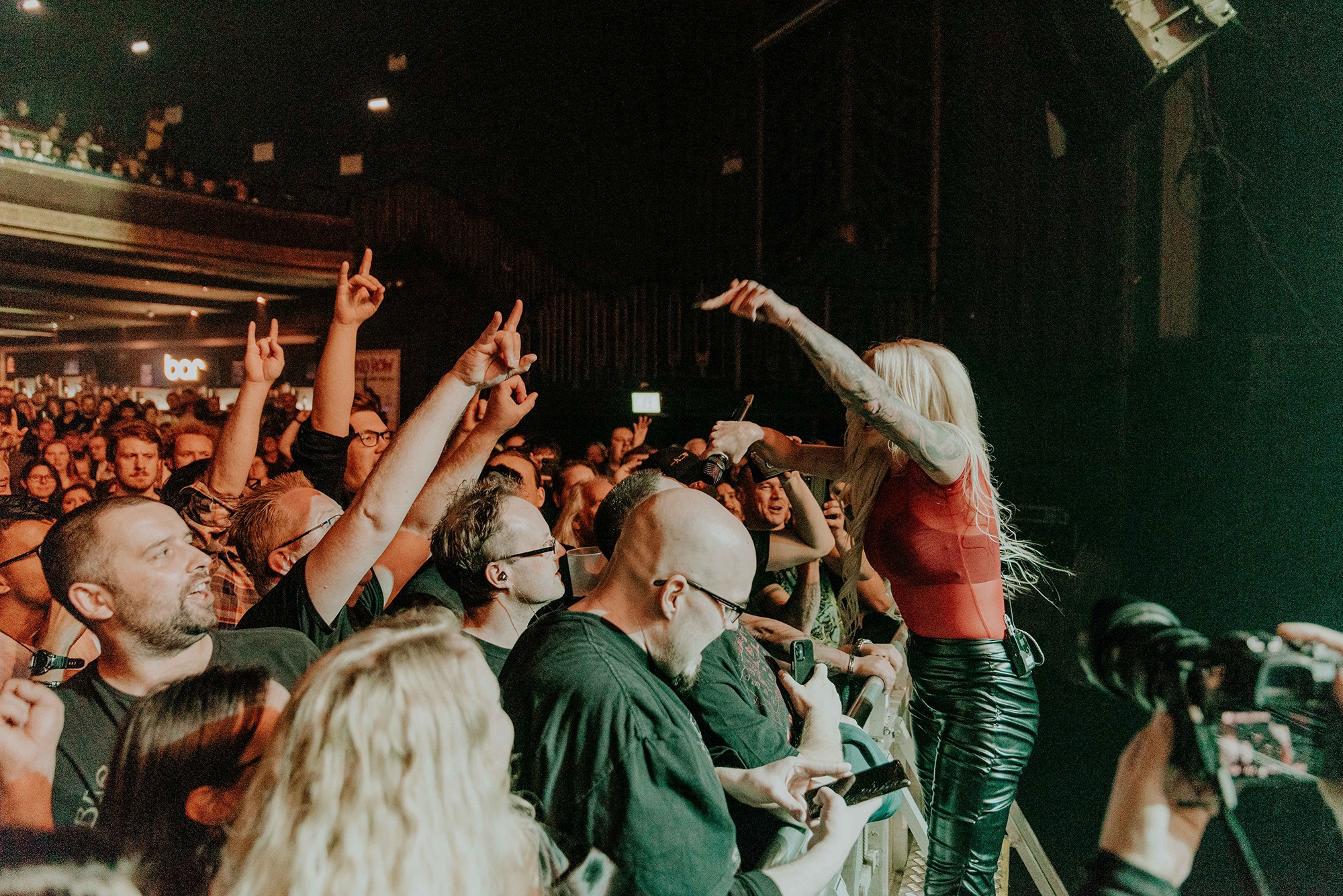 Make It Better also feels off-kilter in its verses but they recover it for choruses – again falling victim to the unfortunate burying of bass in the mix. That’s a constant undercurrent to the set, that moments don’t feel as impactful as they should, like the rousing call to arms that is Strong simply doesn’t feel as empowering as it should. Ultimately though this is a minor niggle when the atmosphere is so electric. AMARANTHE conjure a near rave with Maximize, the crowd jumping and waving arms with wild abandon, and fan favourite The Nexus detonates spectacularly. Despite recovering from a bout of stomach issues that forced the cancellation of last night’s Manchester show, they’re a band still intent on giving their all and are firing on all cylinders, guaranteed to leave the O2 Forum Kentish Town with fond(ue) memories.Â