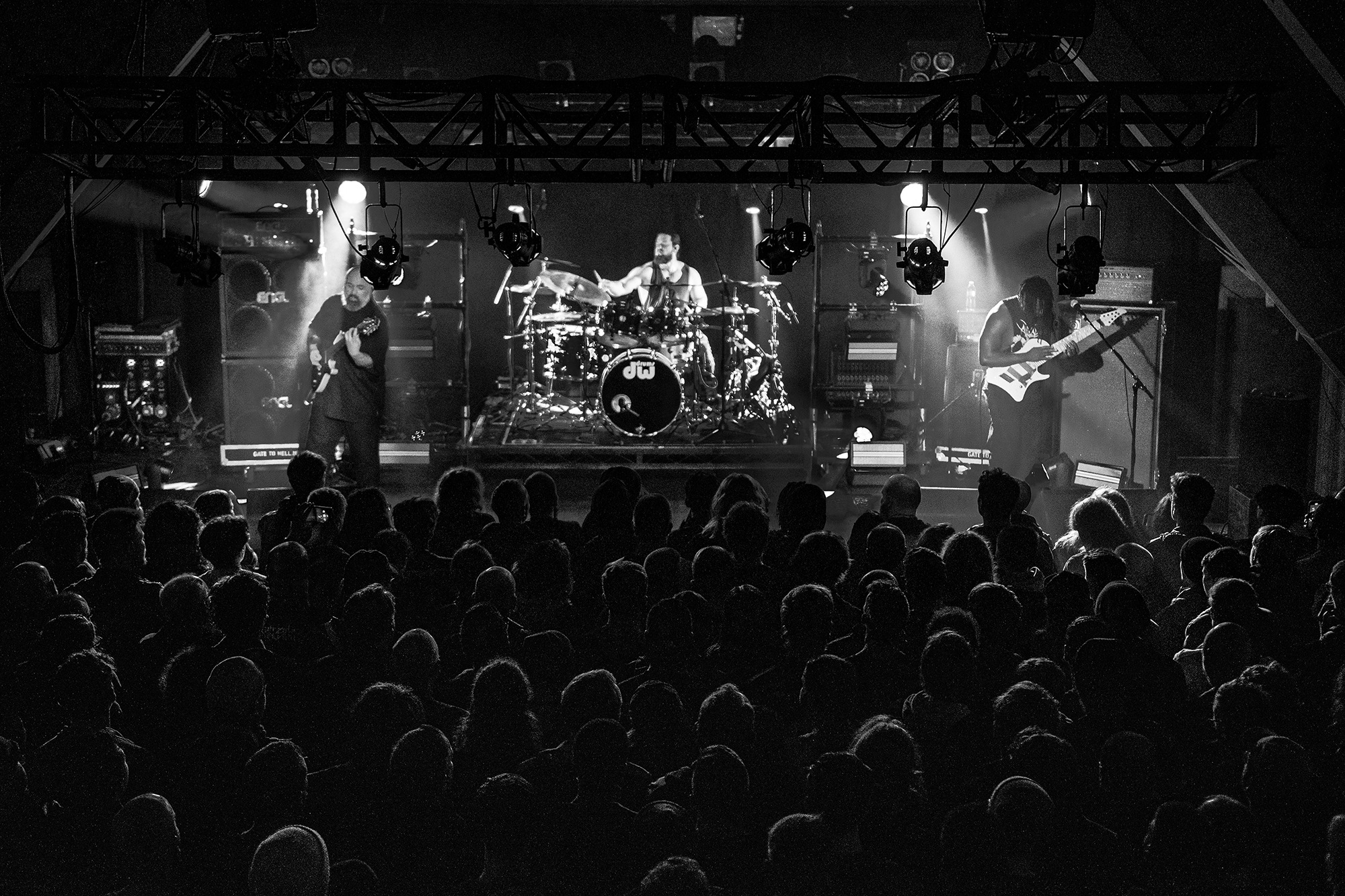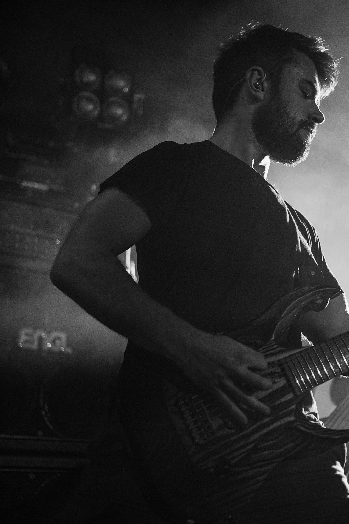 Originally planned for January, fans of technical metallers ANIMALS AS LEADERS have had to wait the better part of a year for the postponed headline tour, and the anticipation can be felt in the O2 Institute’s basement room for this Saturday night show. The trio don’t keep the crowd waiting long, taking to the stage early in the evening and kicking straight into the dizzying riffery of Tooth And Claw, from their breakout 2014 album The Joy Of Motion.